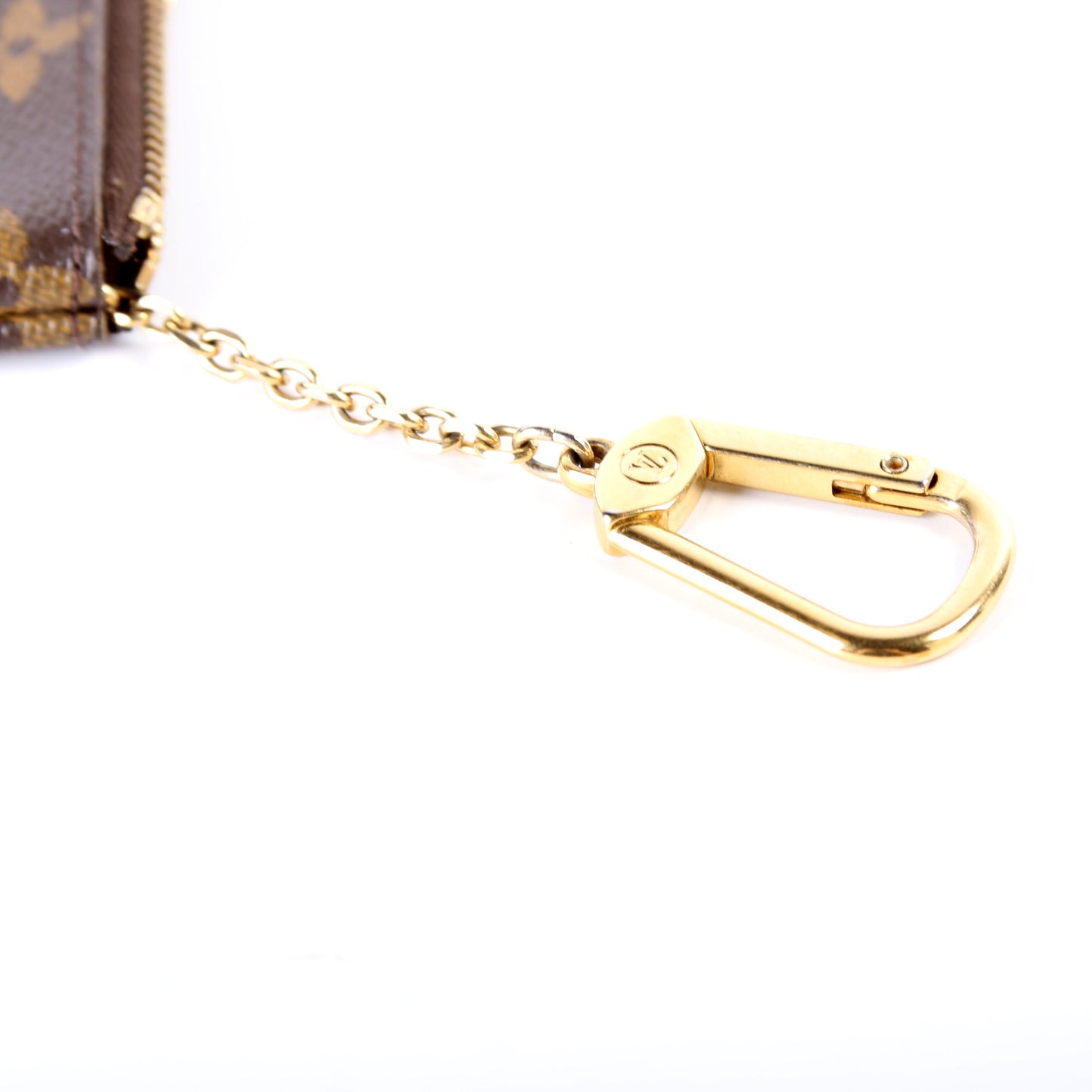 This pre-owned Louis Vuitton Pochette Cles is guaranteed 100% authentic. The exterior is in the classic Louis Vuitton Monogram coated canvas.