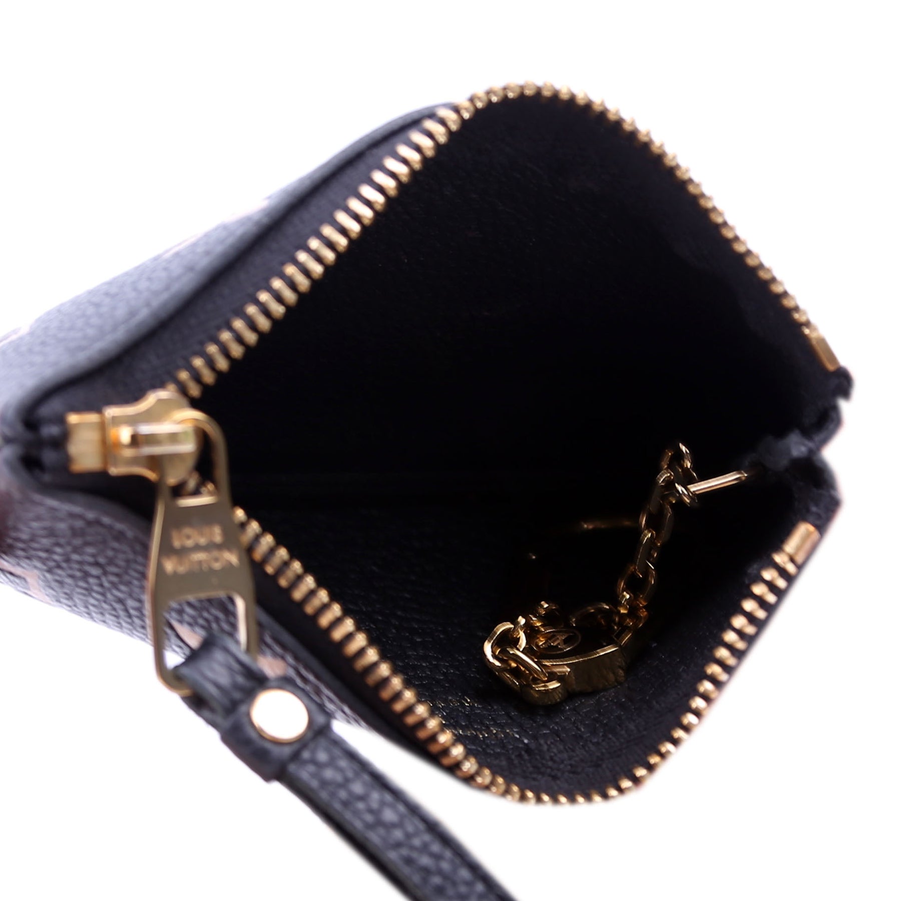 This pre-owned Louis Vuitton Pochette Cles is guaranteed 100% authentic. The exterior is in the classic Louis Vuitton Empreinte leather.