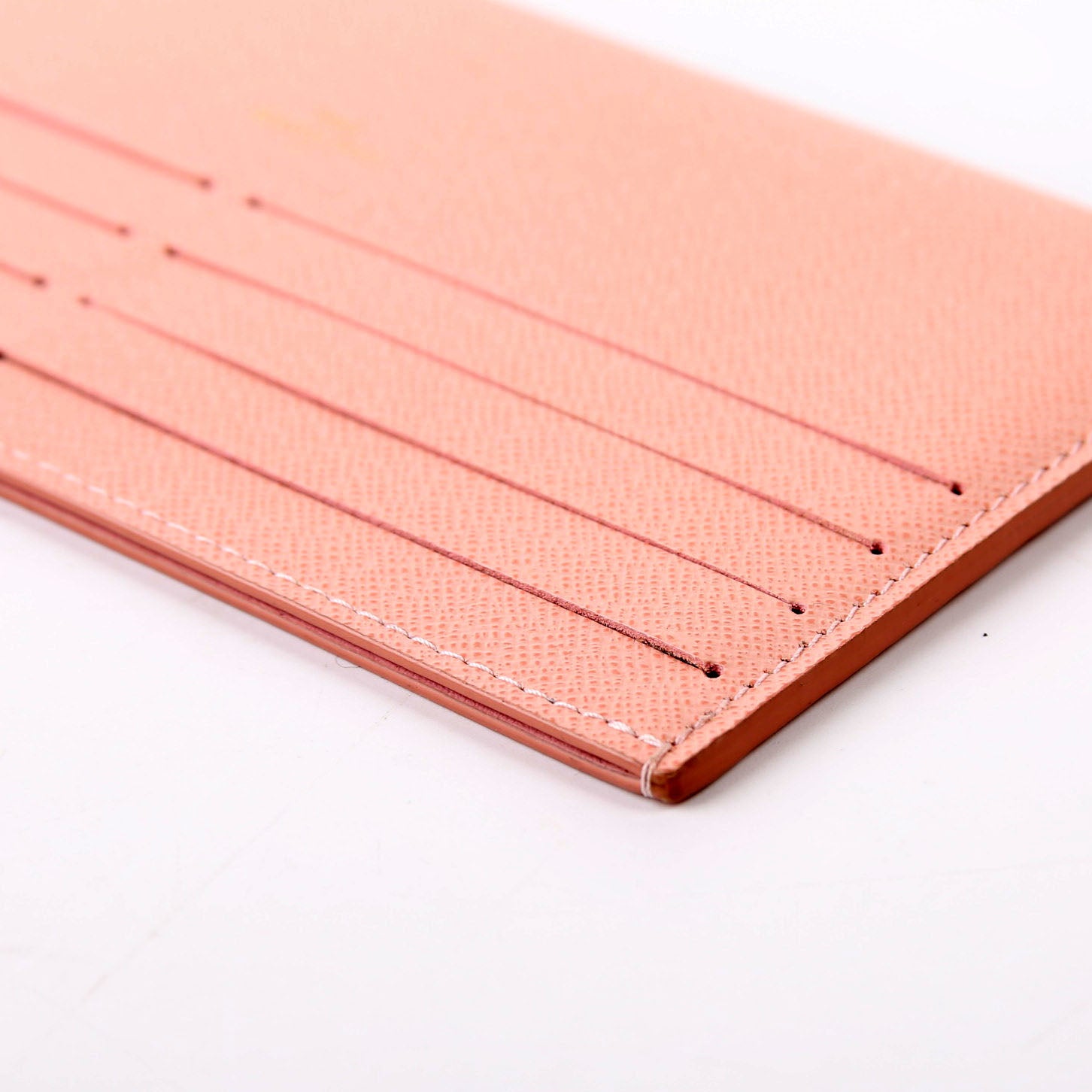 Exterior: The exterior leather has minor pen marks to one corner. It features 8 card slots and one bill slot.