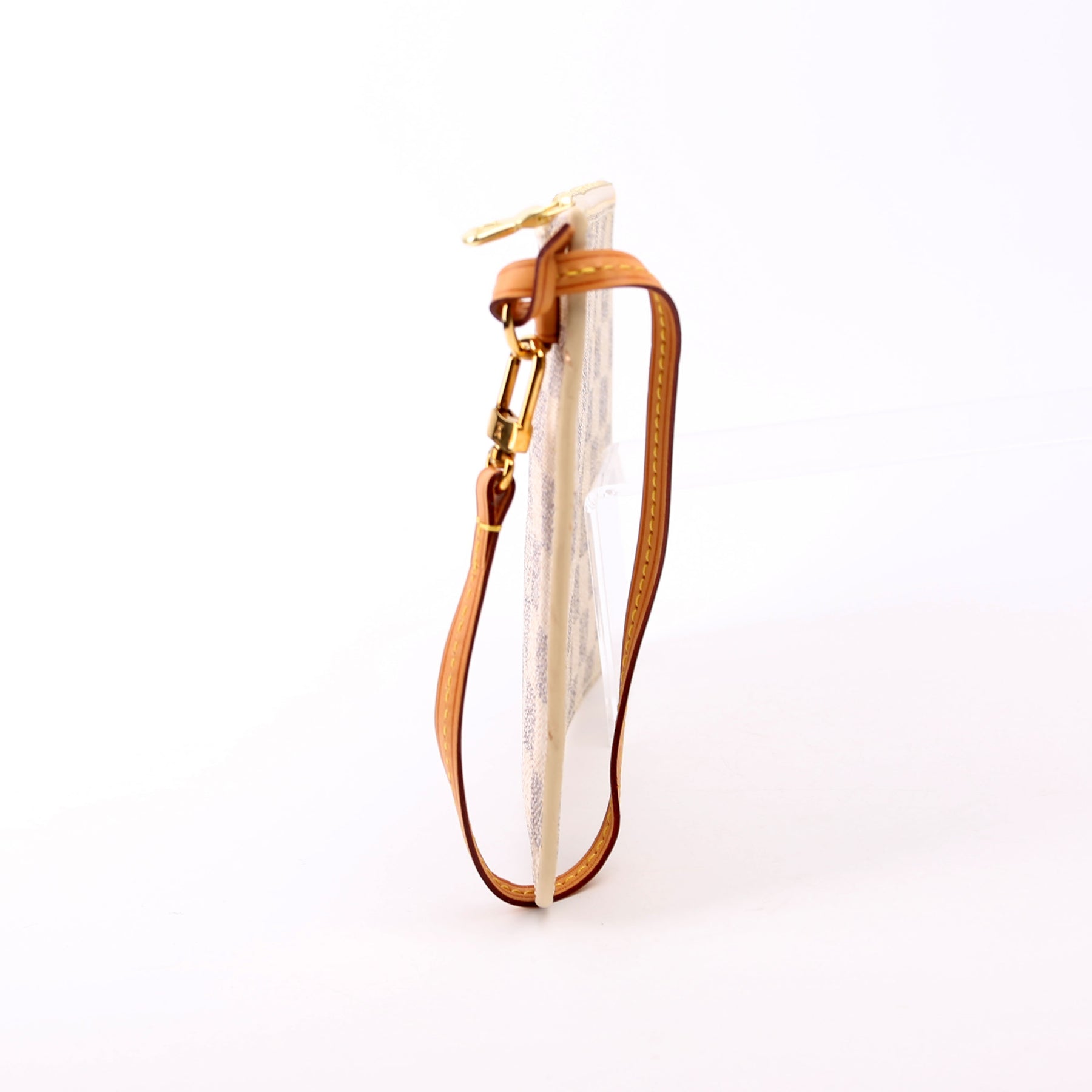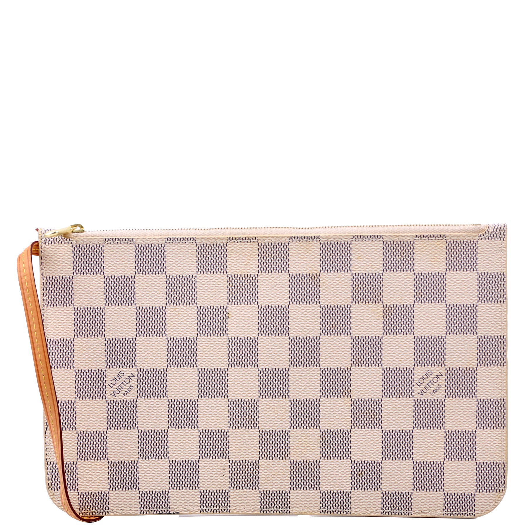 This pre-owned Louis Vuitton Pochette Only Neverfull is guaranteed 100% authentic. The exterior is in the classic Damier Azur coated canvas.
