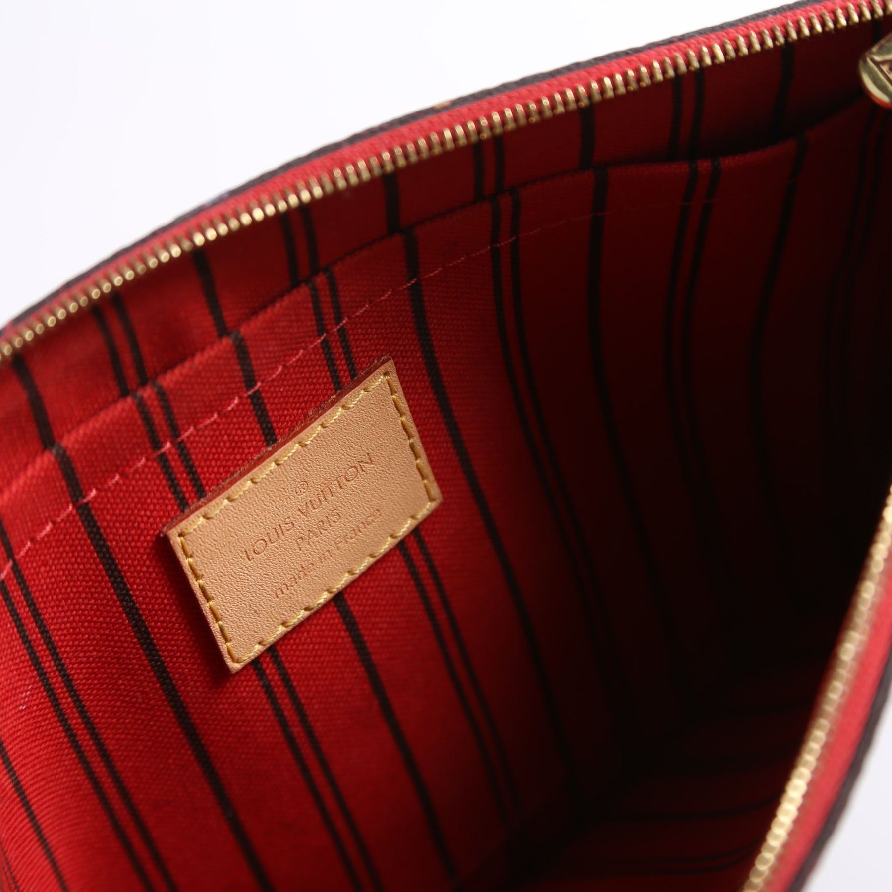 This pre-owned Louis Vuitton Pochette Only Monogram World Tour is guaranteed 100% authentic. The exterior is in the classic Louis Vuitton Monogram coated canvas.