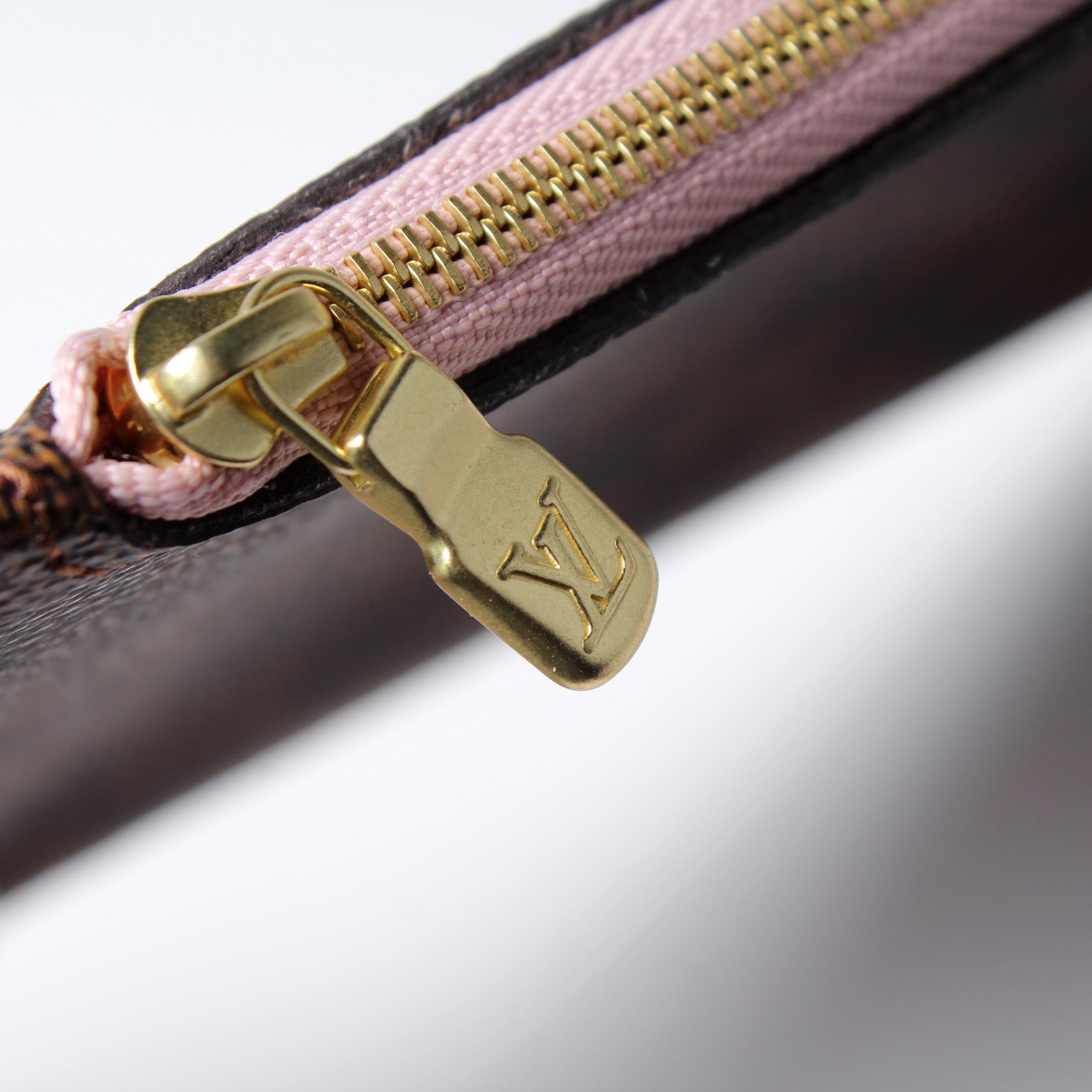 This pre-owned Louis Vuitton Pochette Only Neverfull is guaranteed 100% authentic. The exterior is in the classic Louis Vuitton Damier Ebene coated canvas.