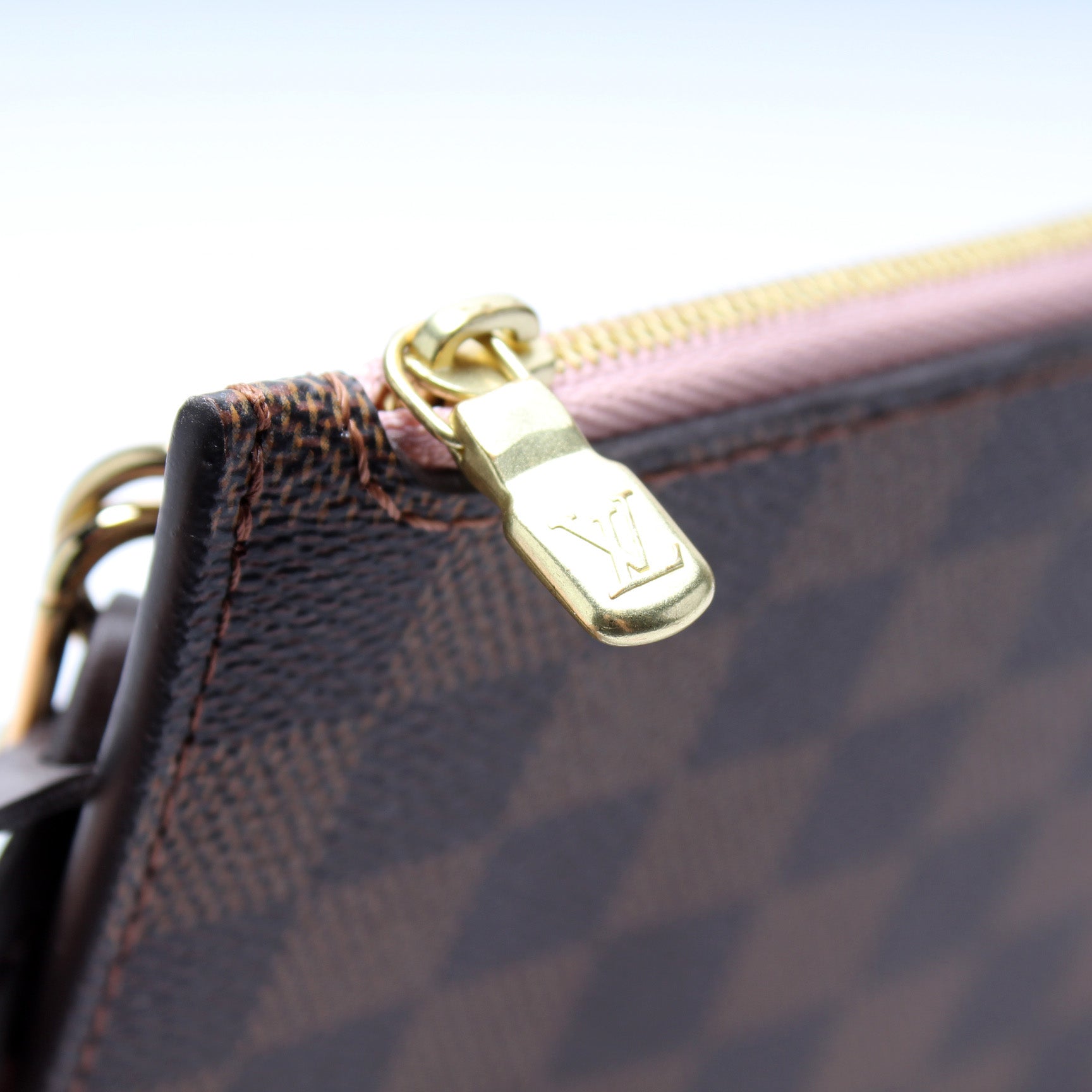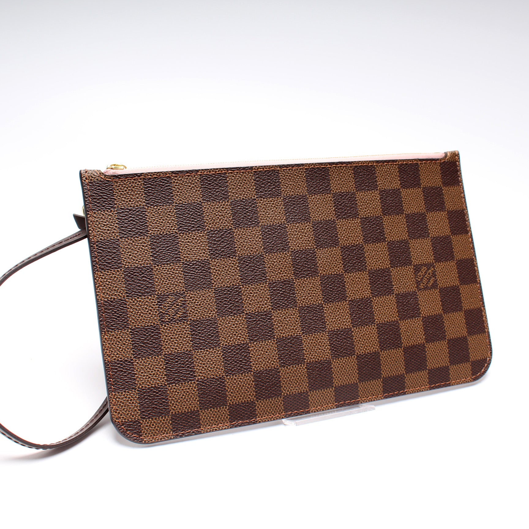 This pre-owned Louis Vuitton Pochette Only Neverfull is guaranteed 100% authentic. The exterior is in the classic Louis Vuitton Damier Ebene coated canvas.