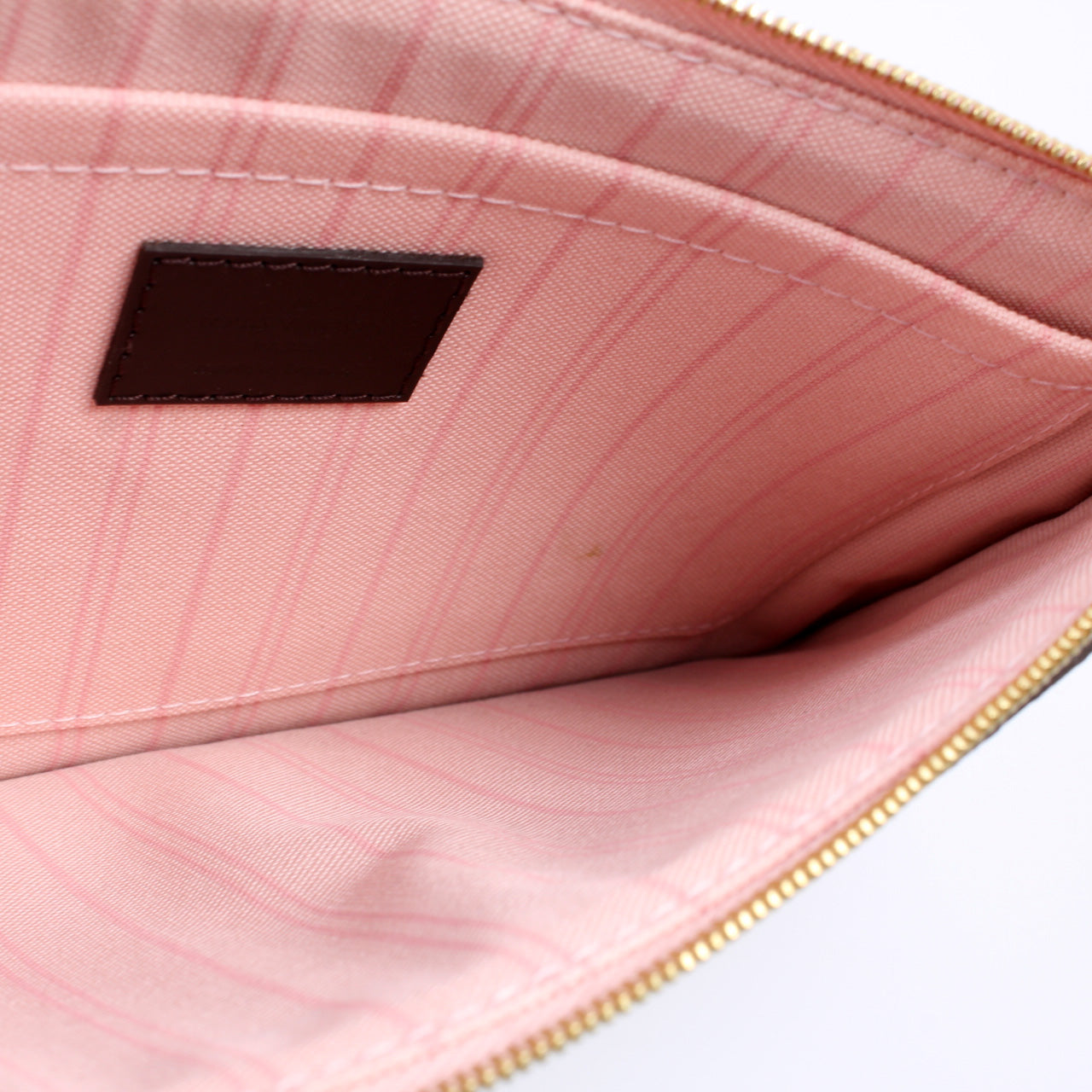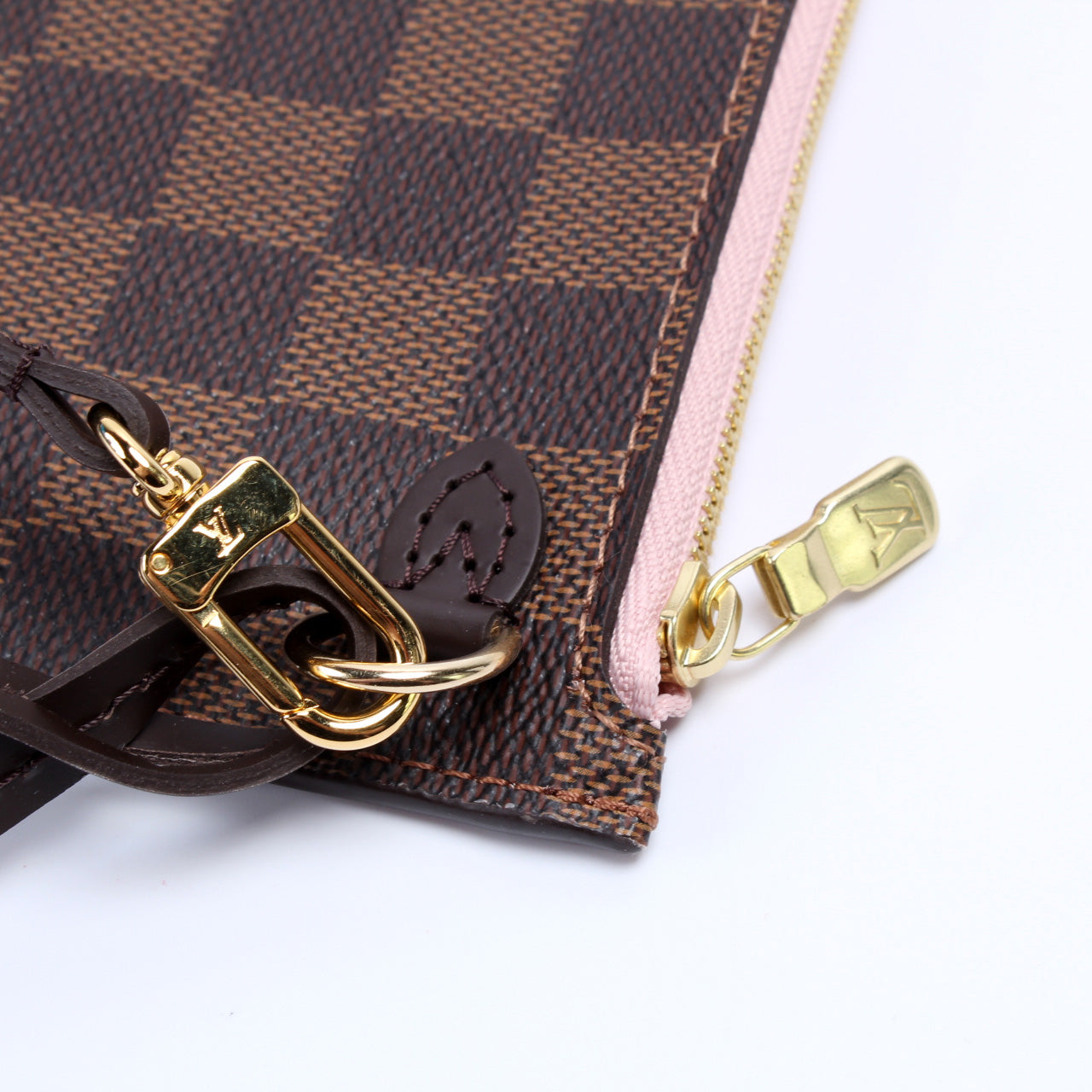 This pre-owned Louis Vuitton Pochette Only Neverfull is guaranteed 100% authentic. The exterior is in the classic Louis Vuitton Damier Ebene coated canvas.