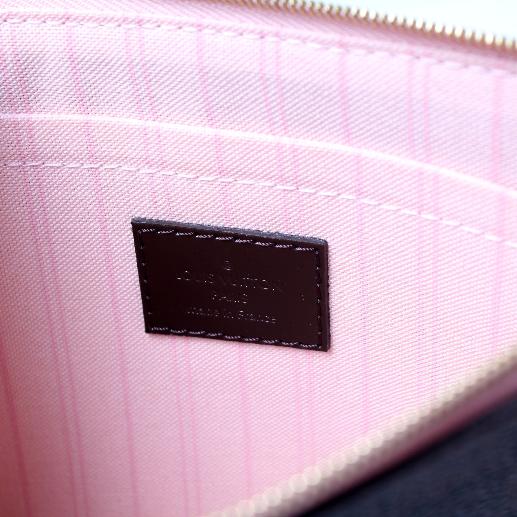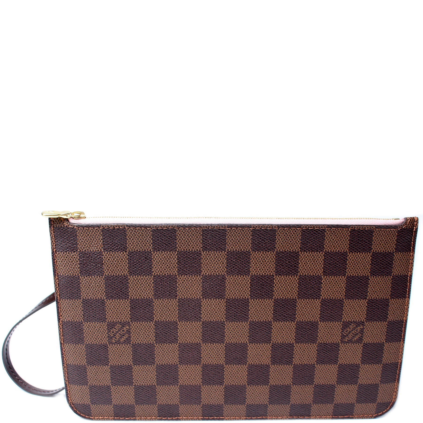 This pre-owned Louis Vuitton Pochette Only Neverfull is guaranteed 100% authentic. The exterior is in the classic Louis Vuitton Damier Ebene coated canvas.