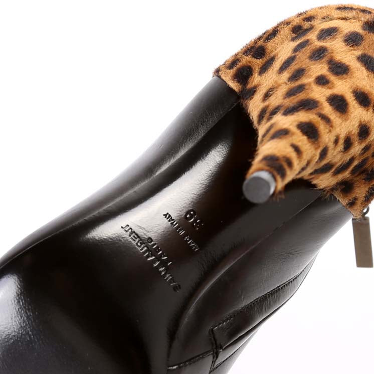 These pre-owned Saint Laurent Pointed Toe Leather/Pony Hair Booties are guaranteed 100% authentic.