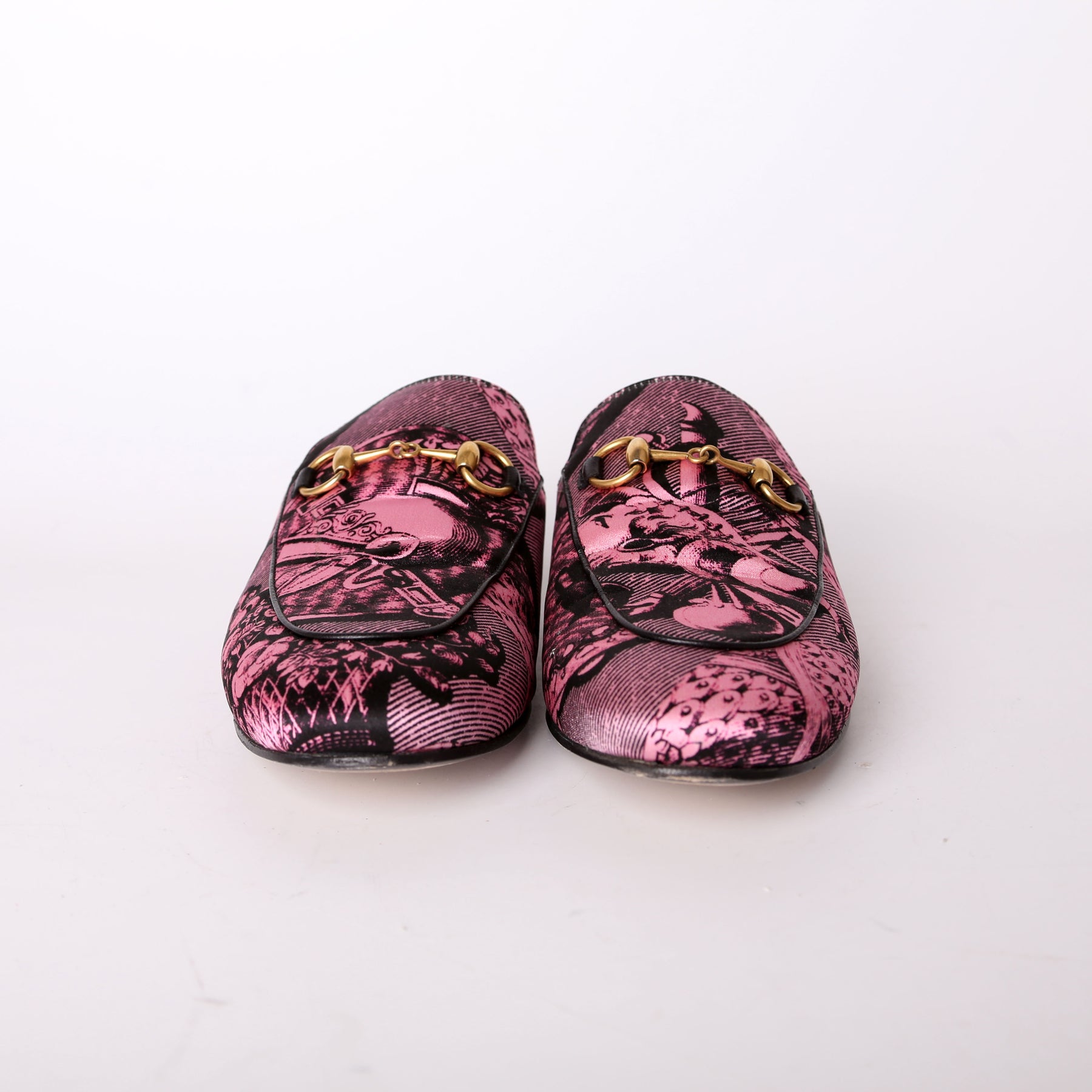 These pre-owned Gucci Princetown Printed Silk Mules are guaranteed 100% authentic.