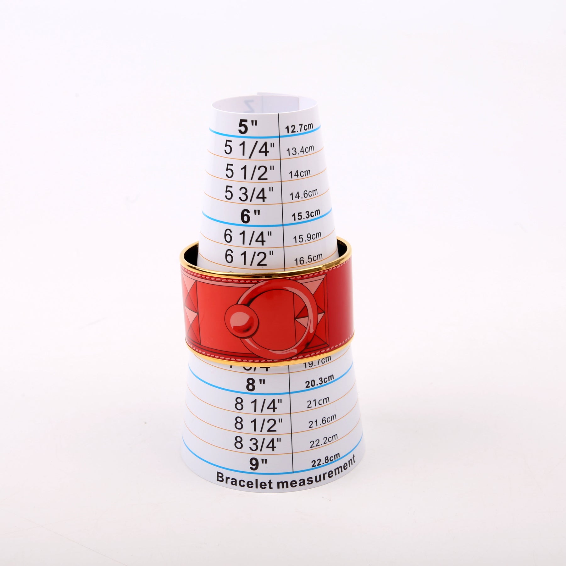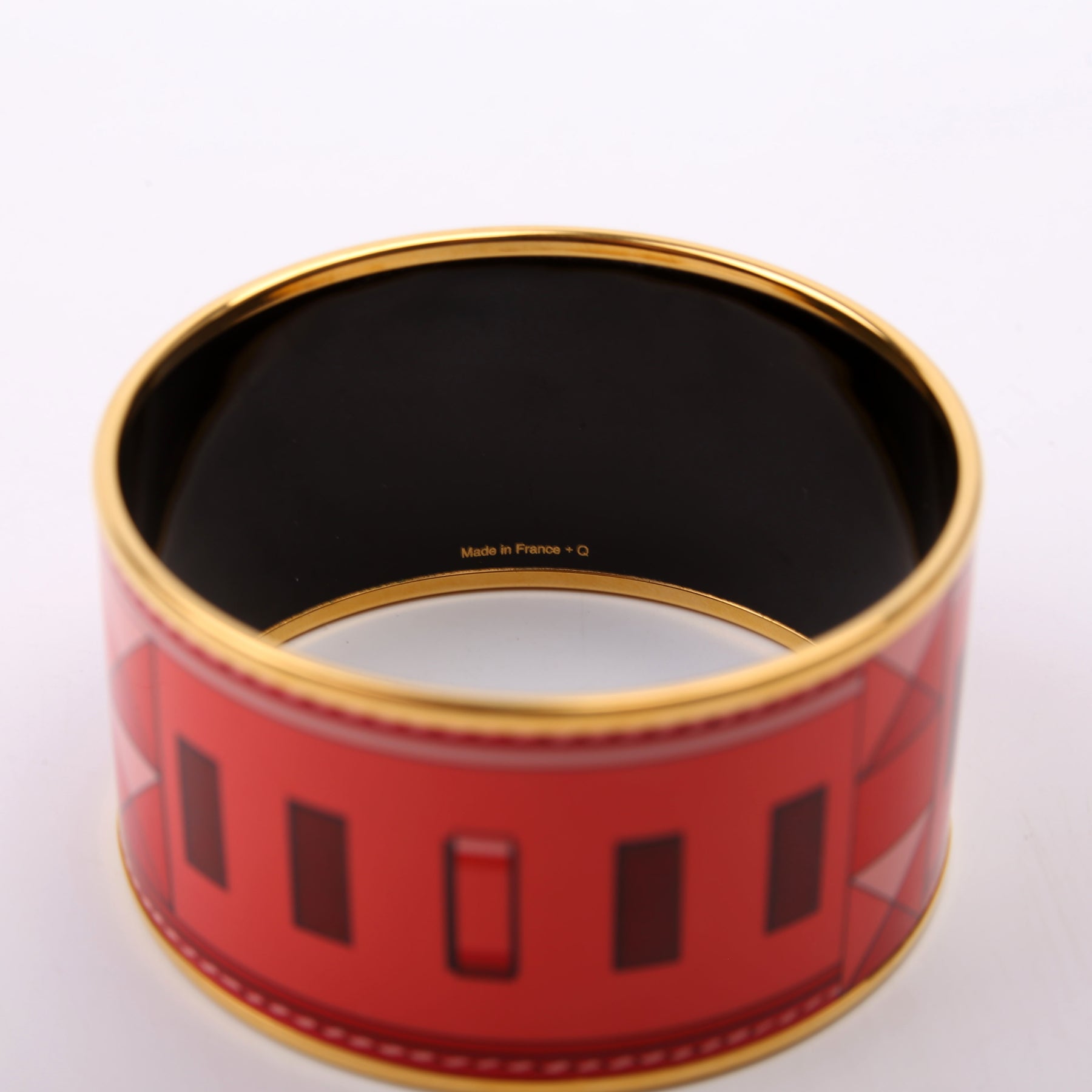 Printed Enamel Extra Wide Bangle Bracelet Gold/Red
