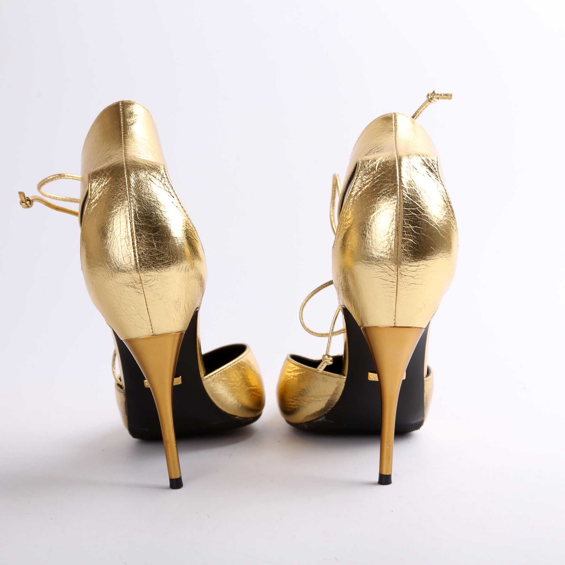 These pre-owned Gucci Priscilla 105MM Metallic Pumps are guaranteed 100% authentic.