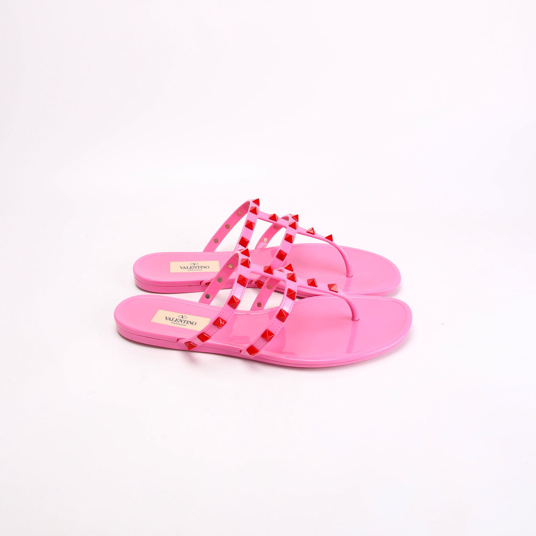 Rockstud T-Strap Rubber Sandals Size 38 Pink