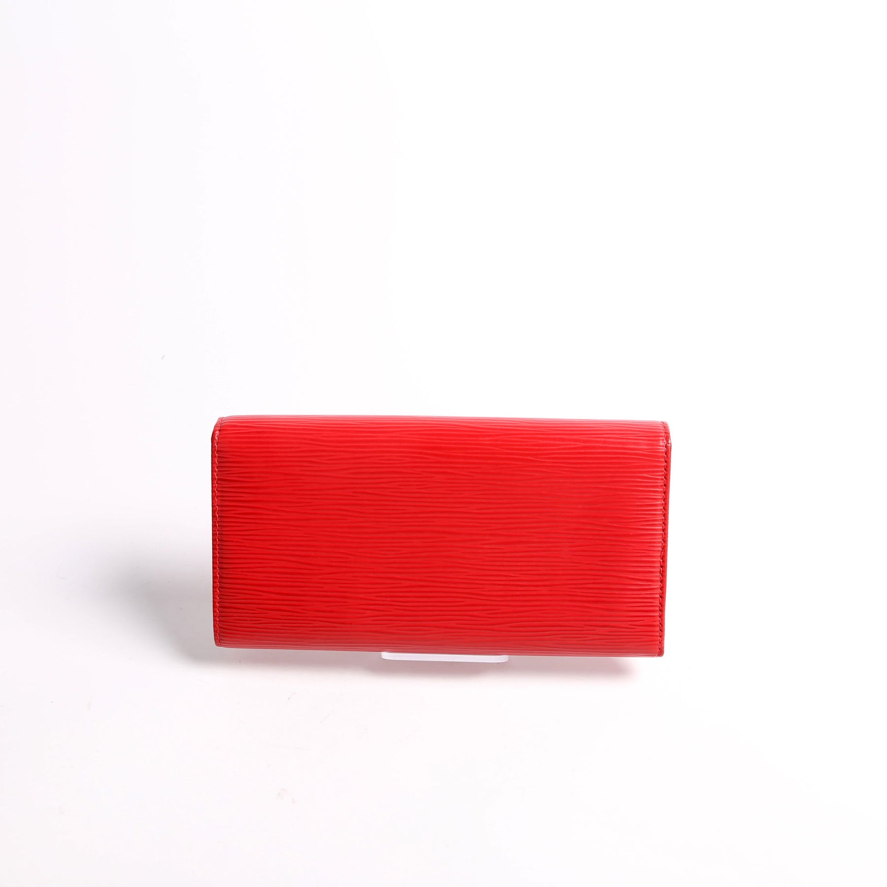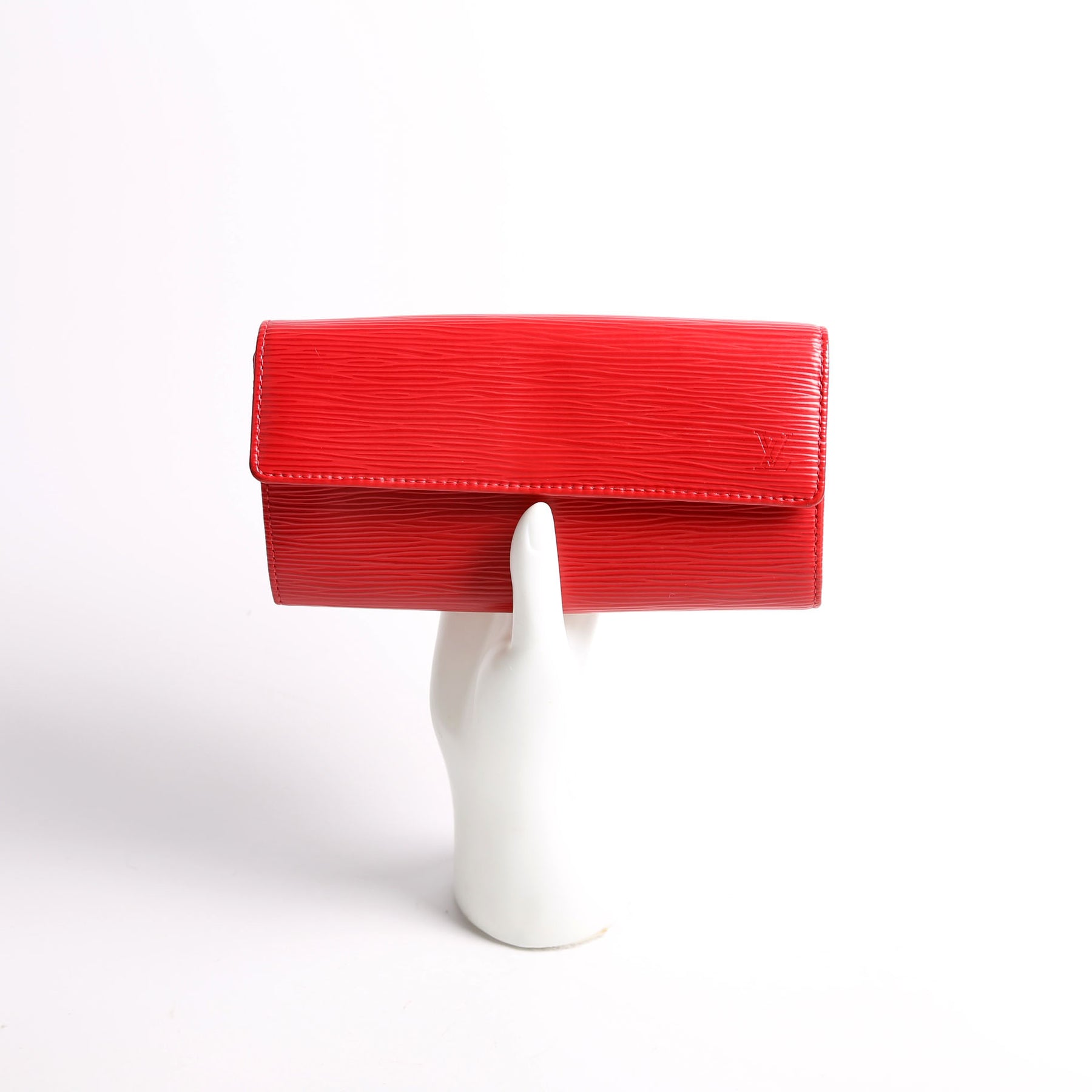 This pre-owned Louis Vuitton Sarah Wallet is guaranteed 100% authentic. The exterior is in the classic Louis Vuitton Epi leather.