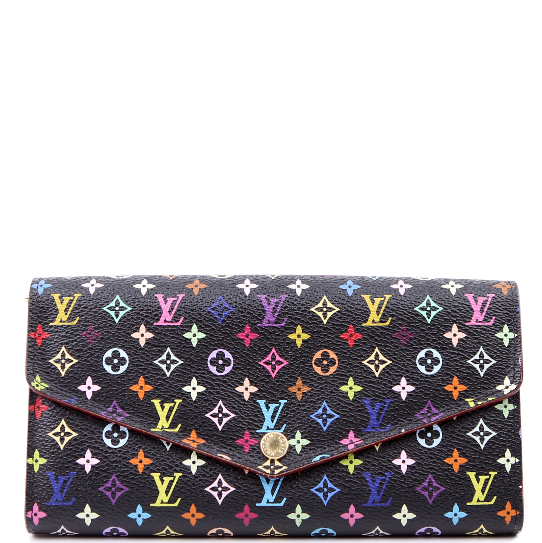 This pre-owned Louis Vuitton Sarah Wallet NM is guaranteed 100% authentic. The exterior is in the classic Louis Vuitton Multicolor Monogram coated canvas.