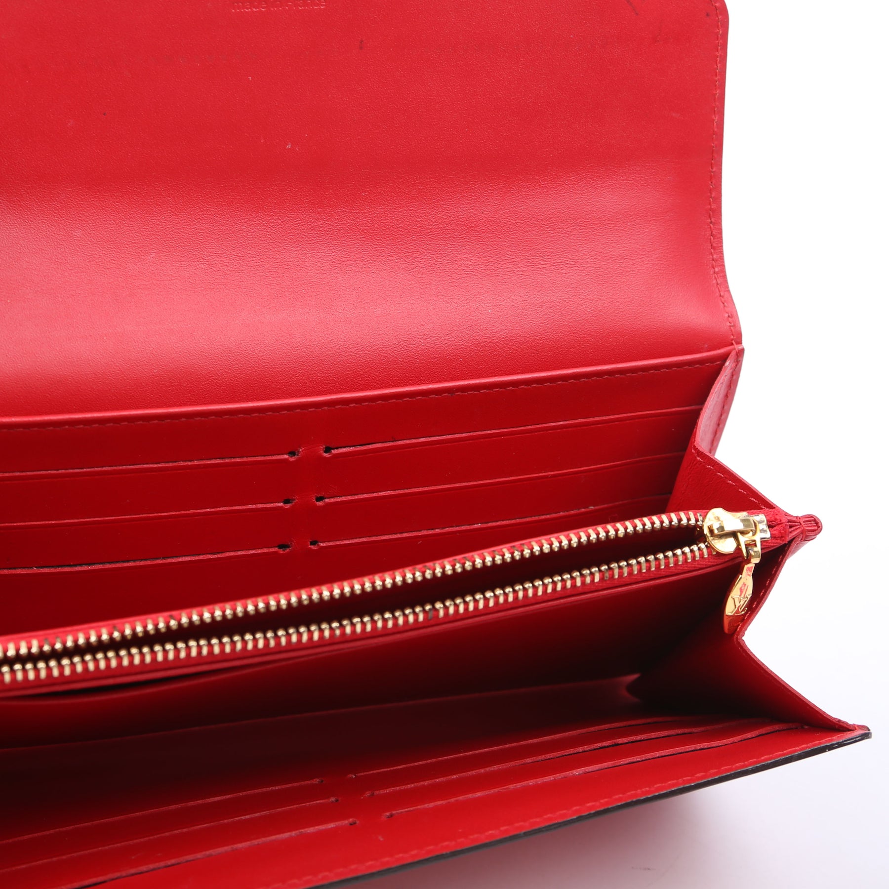 This pre-owned Louis Vuitton Sarah Wallet is guaranteed 100% authentic. The exterior is in the classic Louis Vuitton Sweet Monogram Vernis leather.