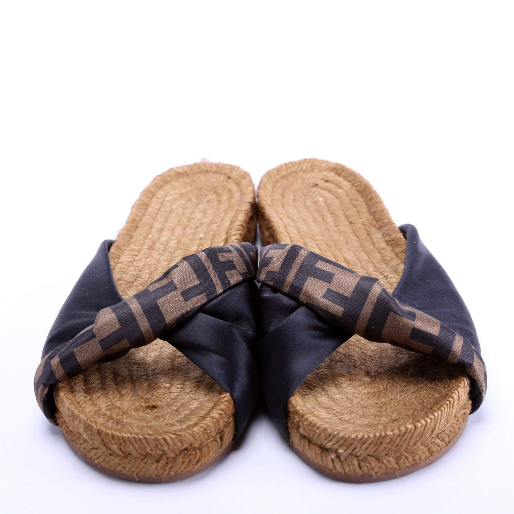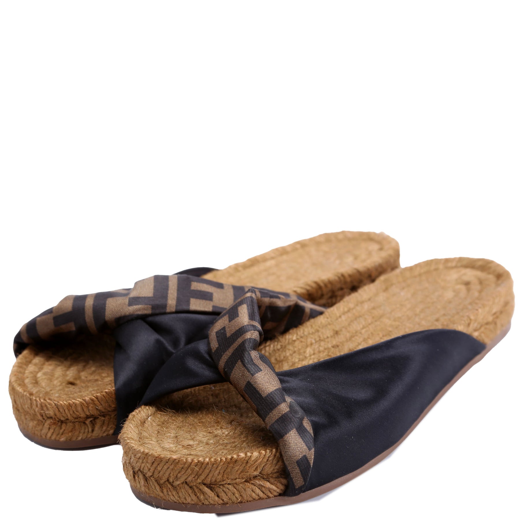 Satin FF Twist Espadrille Slide Size 37 Brown/Black