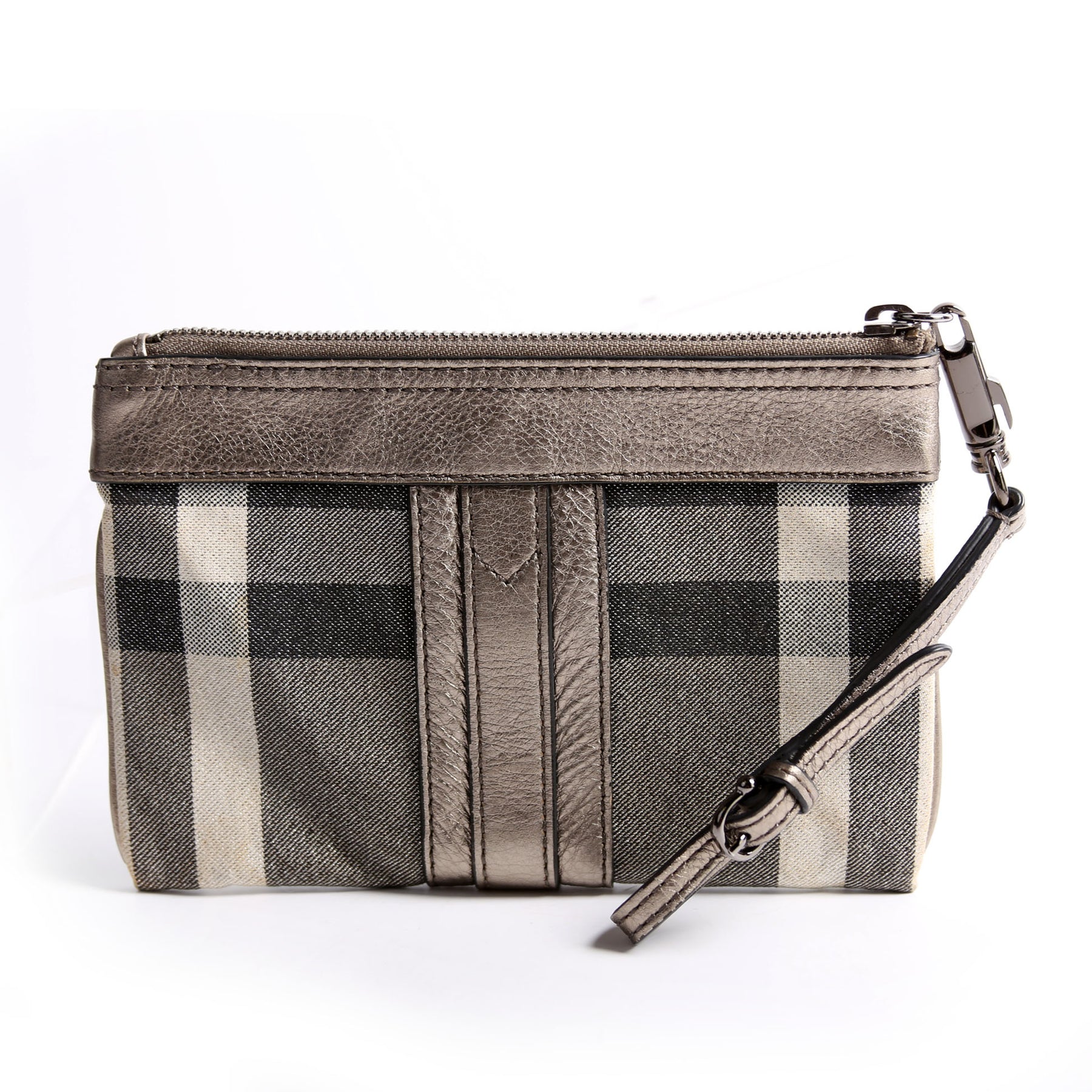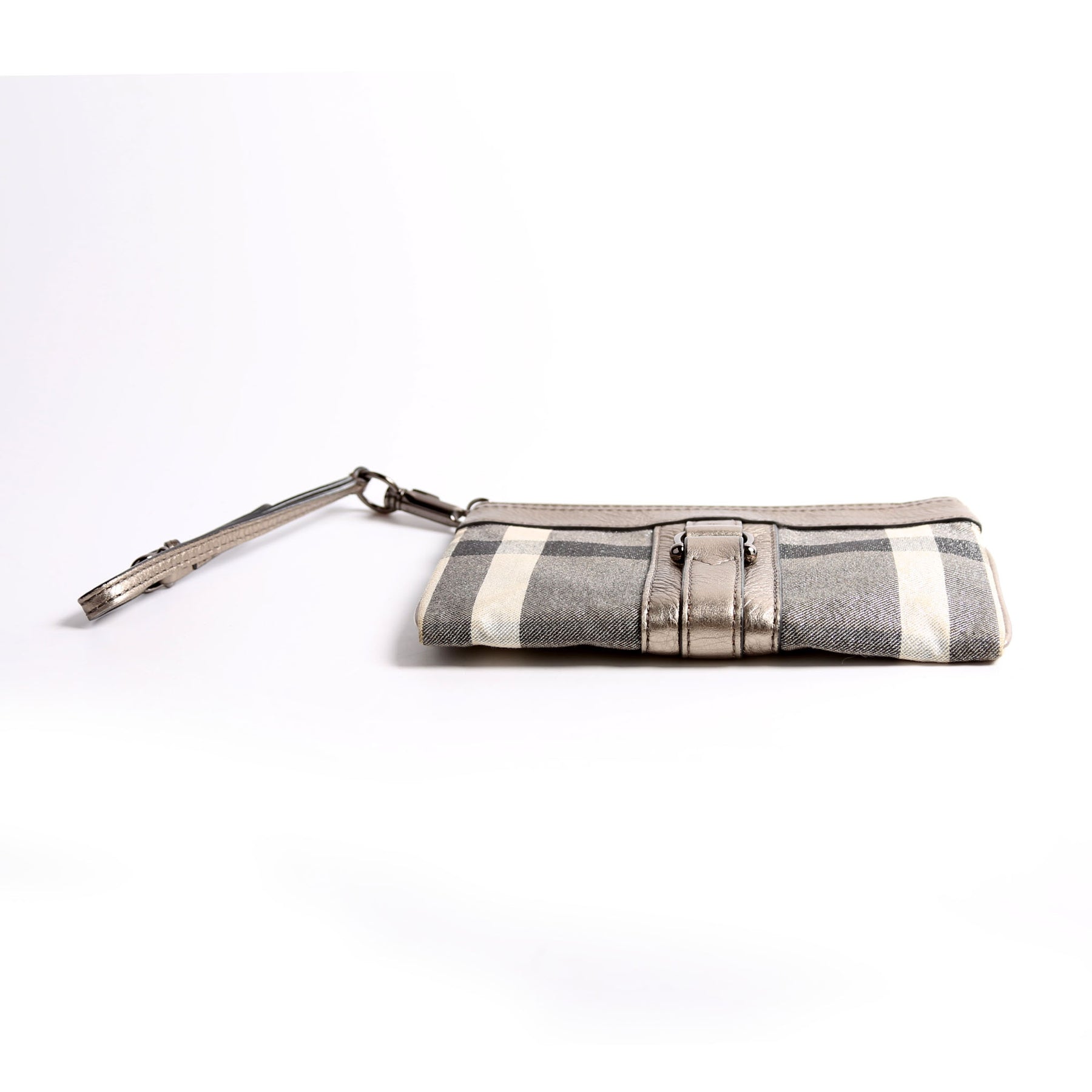 This pre-owned Burberry Check Wristlet Pouch is guaranteed 100% authentic. The exterior is in the classic Burberry Check Pattern.