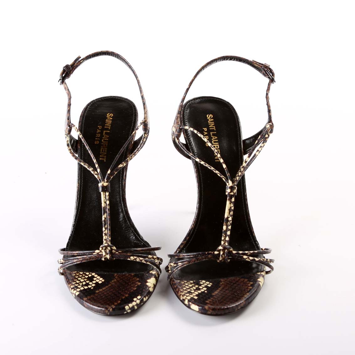 These pre-owned Saint Laurent Snake Sandal Heels are guaranteed 100% authentic.