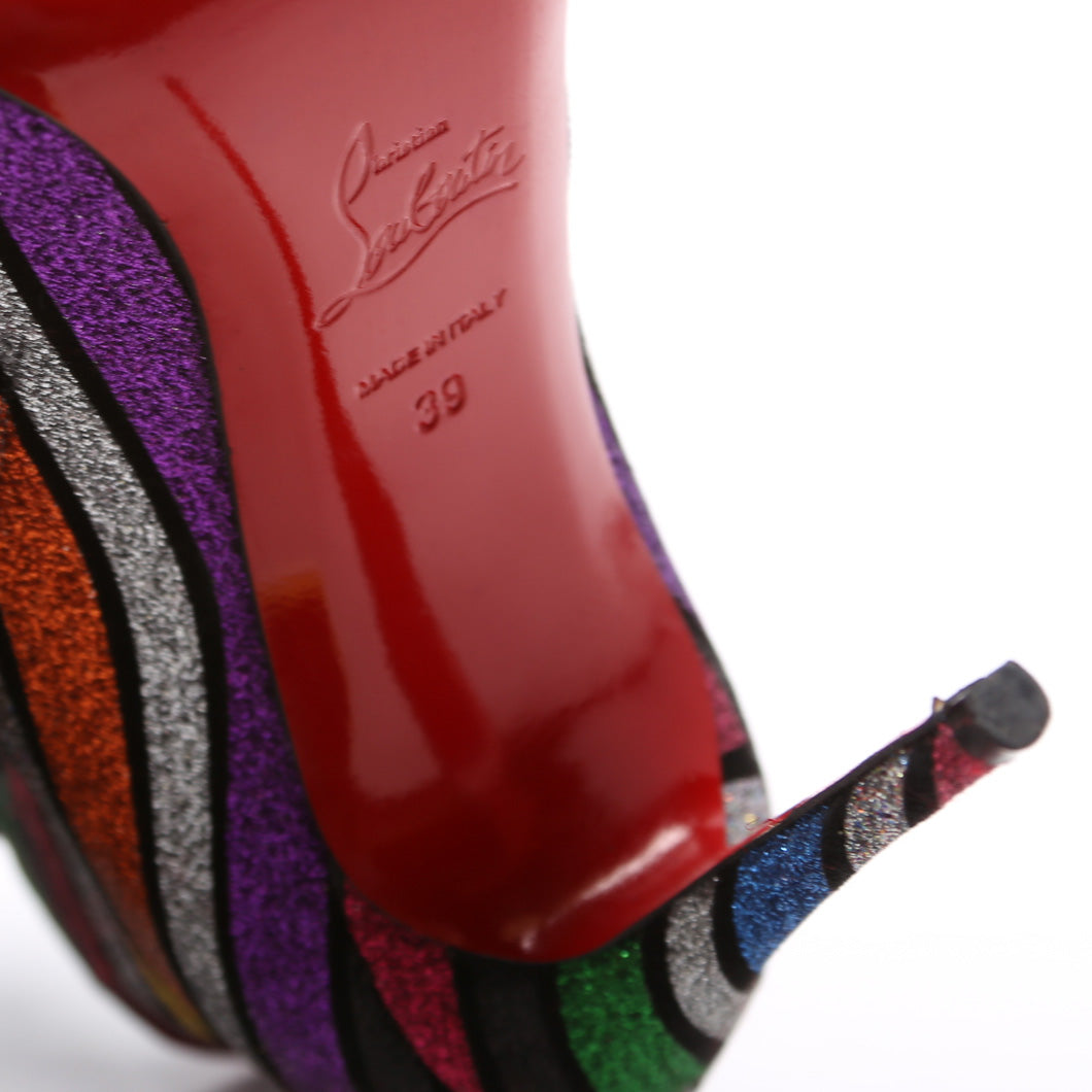 These pre-owned Christian Louboutin So Kate Glitter Booties are guaranteed 100% authentic.