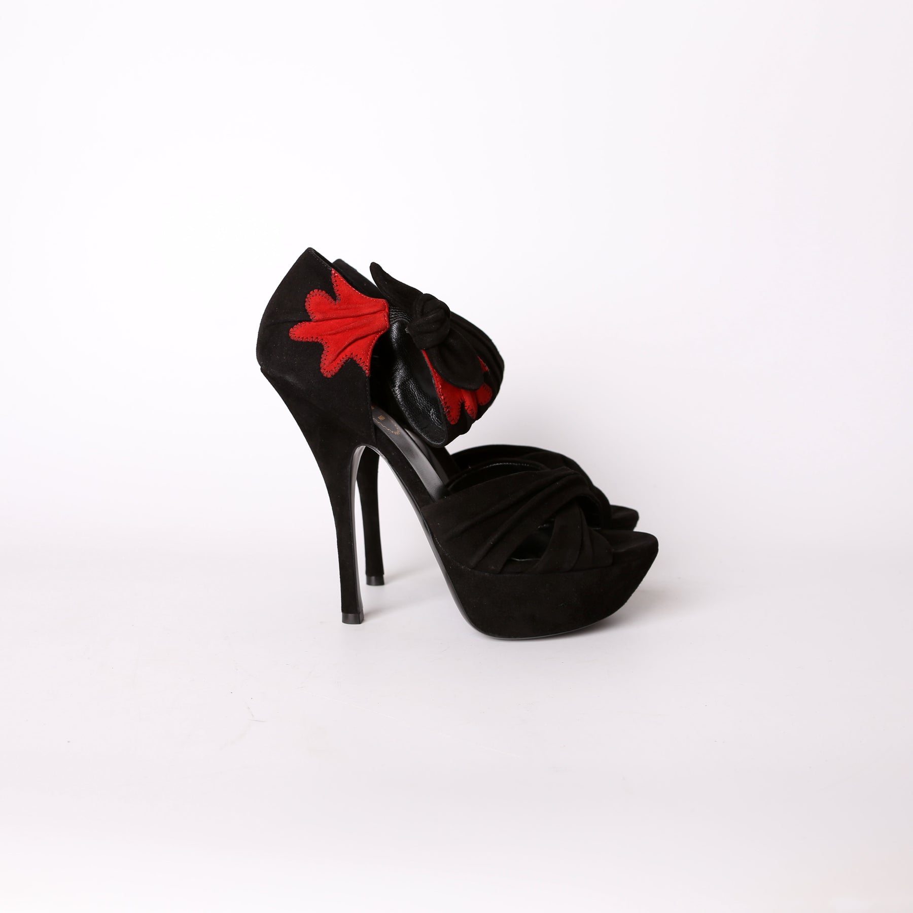 These pre-owned Saint Laurent Suede Platform Pumps are guaranteed 100% authentic.