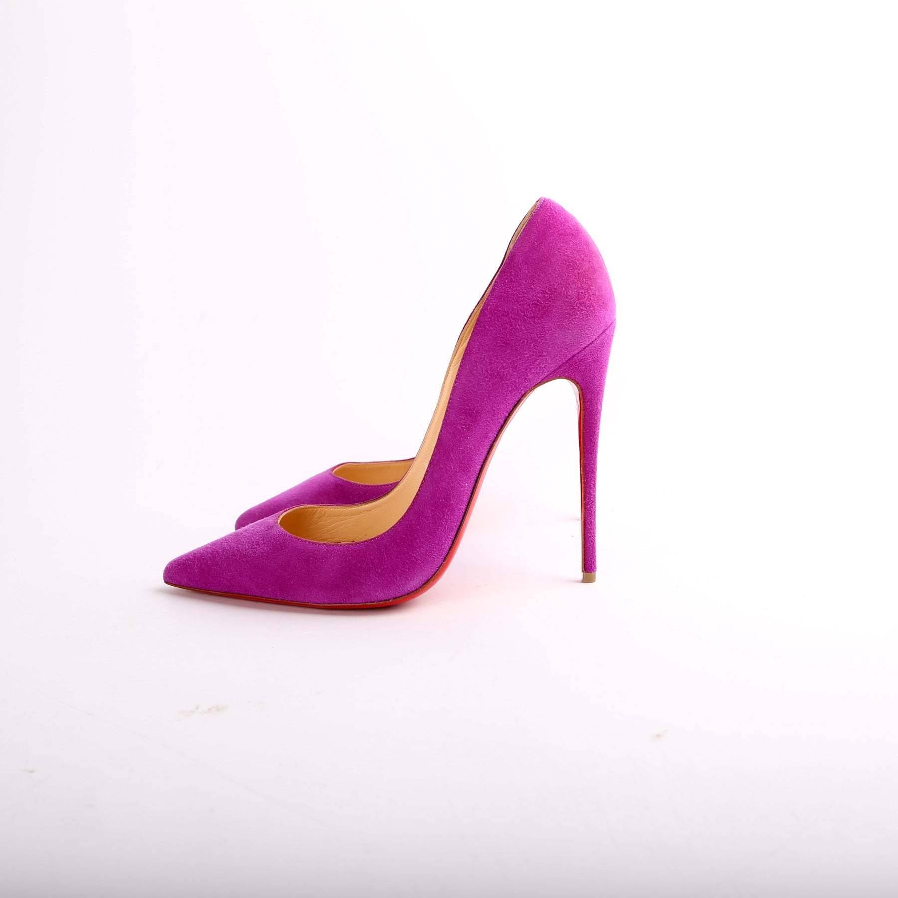 These pre-owned Christian Louboutin Suede So Kate 120MM Pumps are guaranteed 100% authentic.