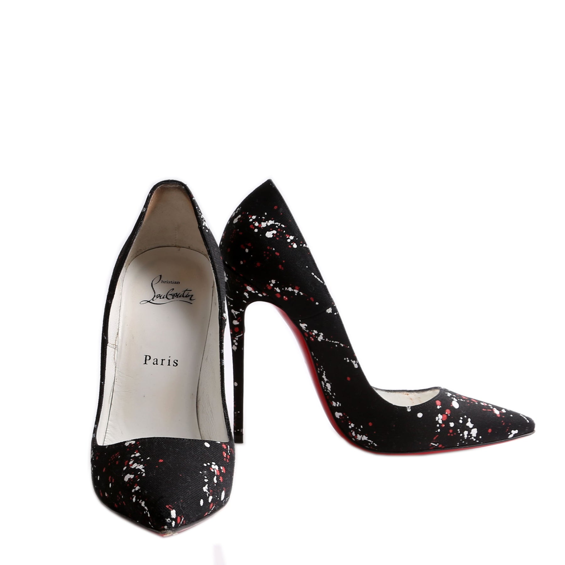 These pre-owned Christian Louboutin Toile Splash So Kate 120 Pumps are guaranteed 100% authentic.