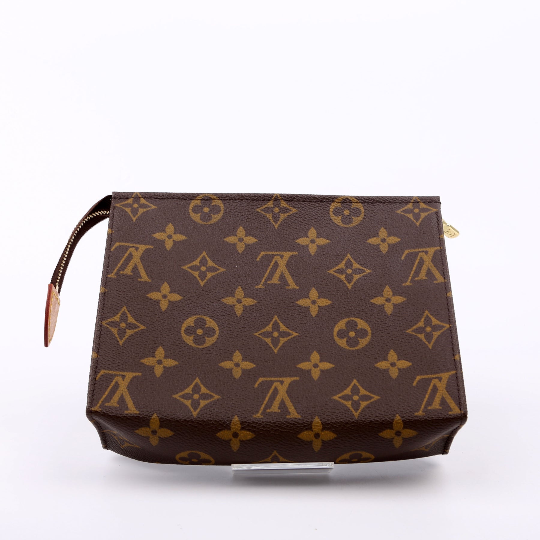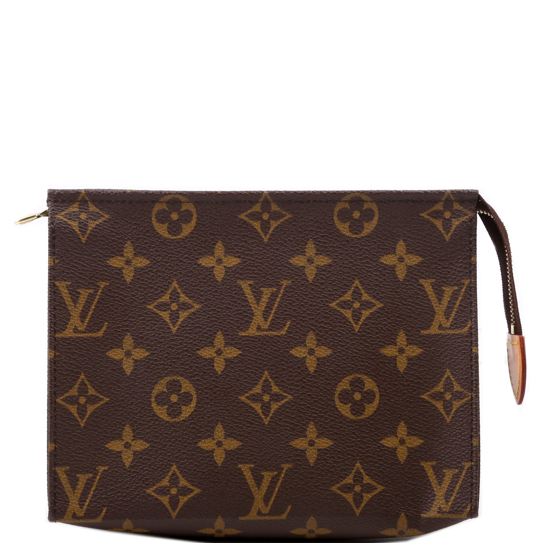 This pre-owned Louis Vuitton Toiletry Pouch 19 Newer is guaranteed 100% authentic. The exterior is in the classic Louis Vuitton Monogram coated canvas.