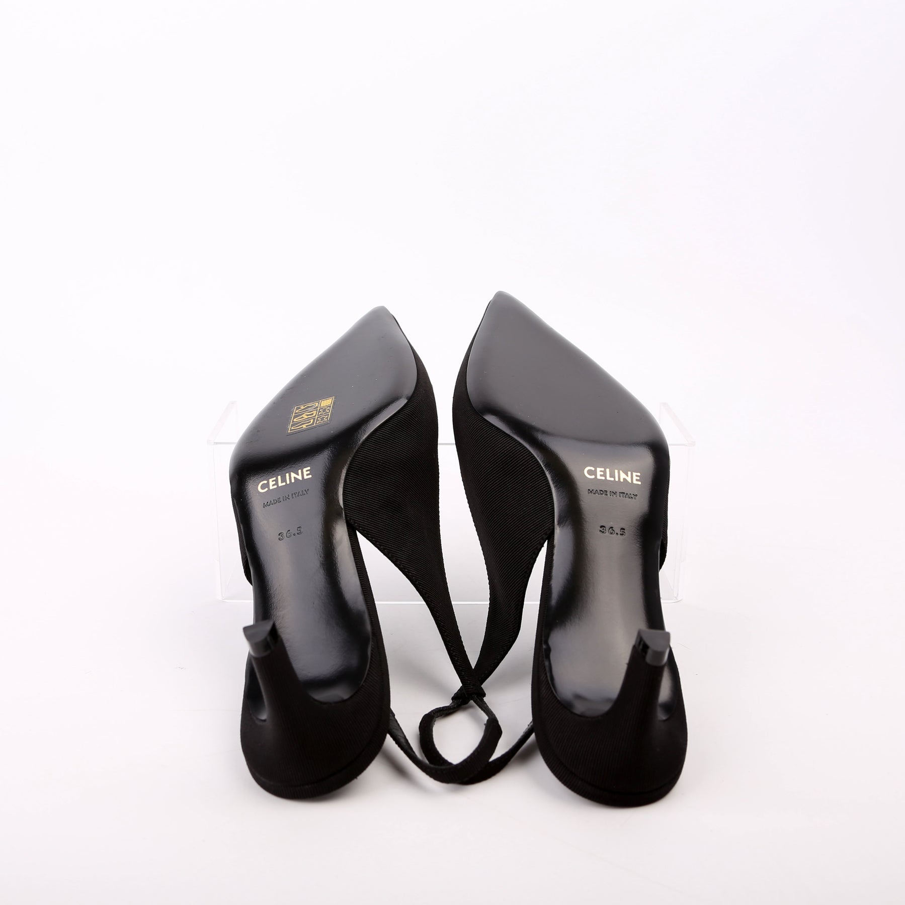 These pre-owned Celine Triomphe Slingback Kitten Heels are guaranteed 100% authentic.