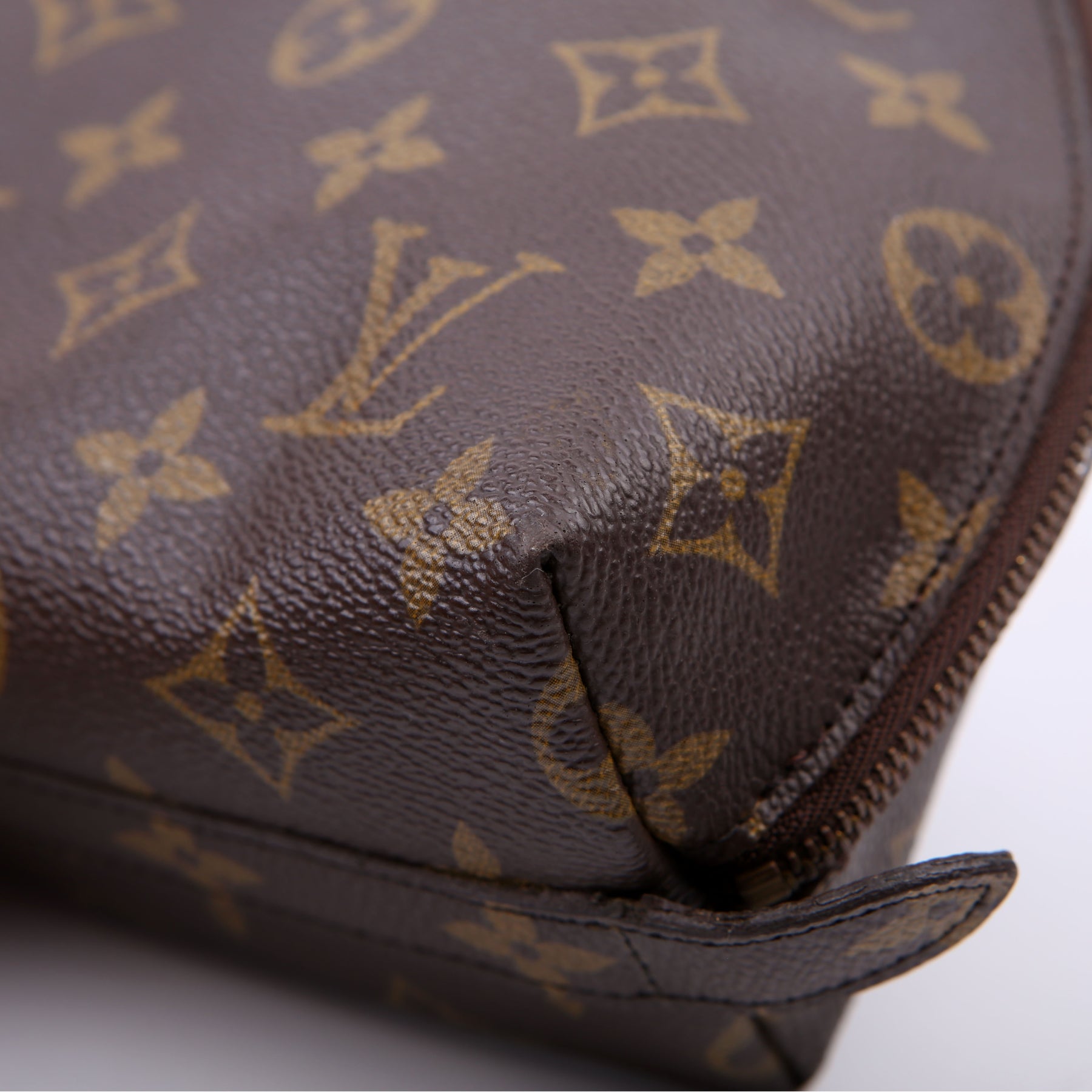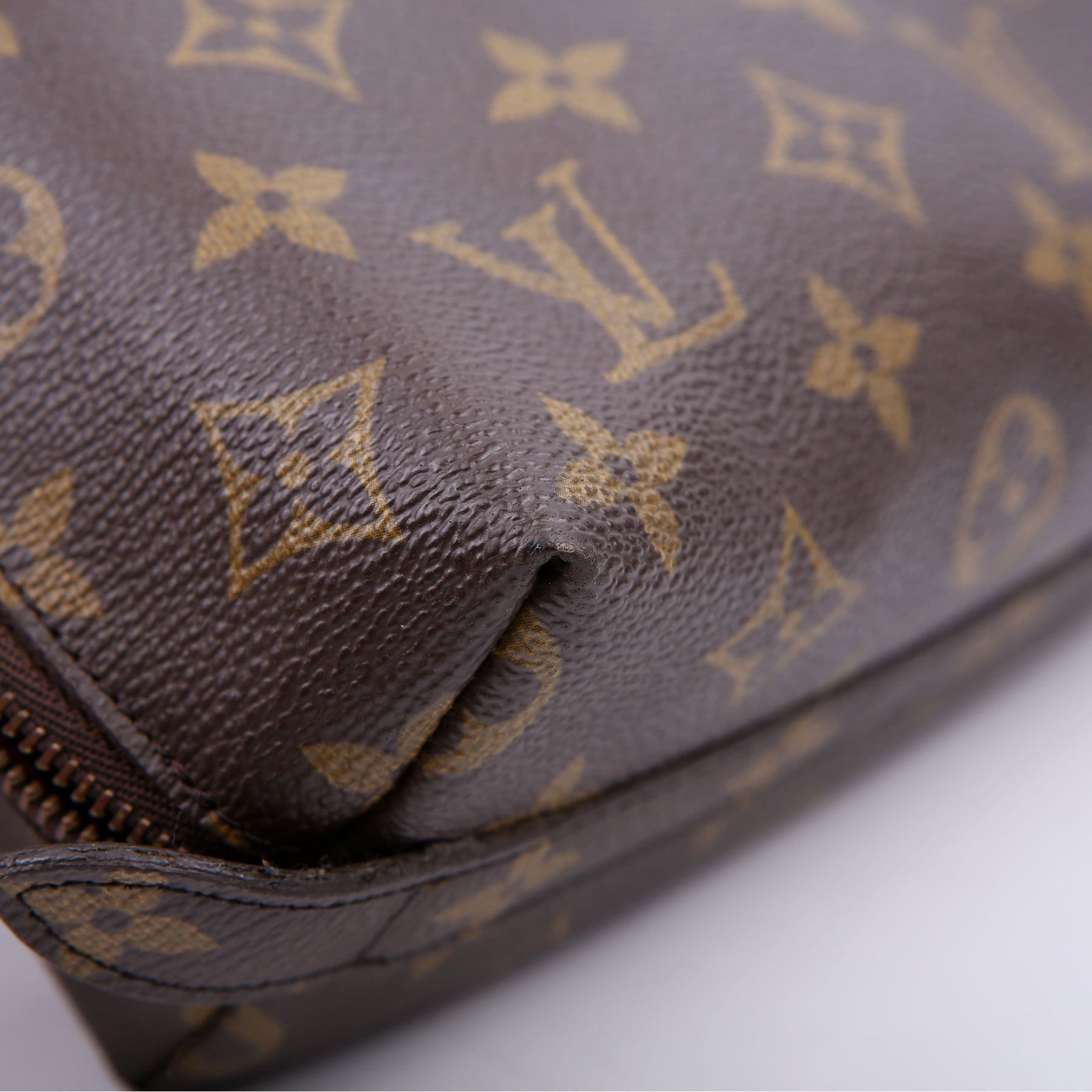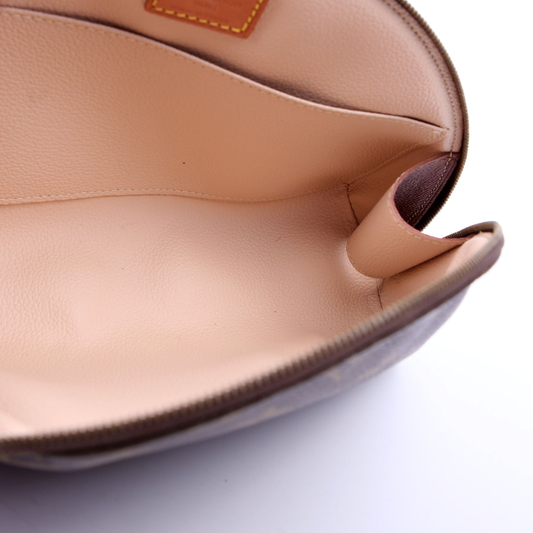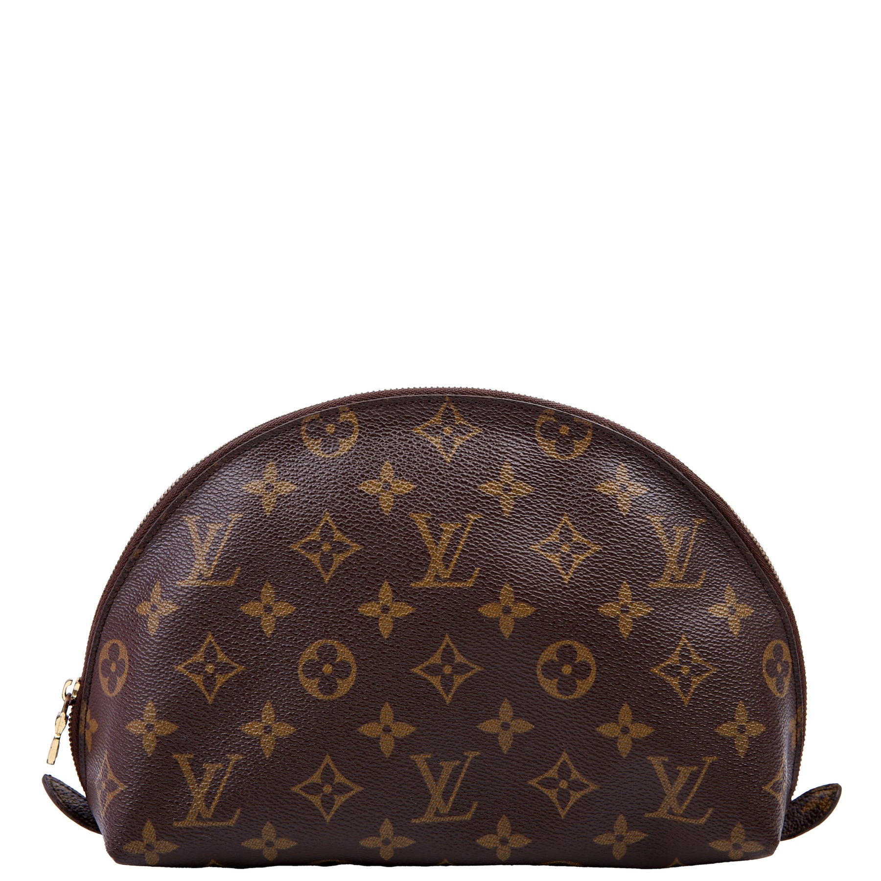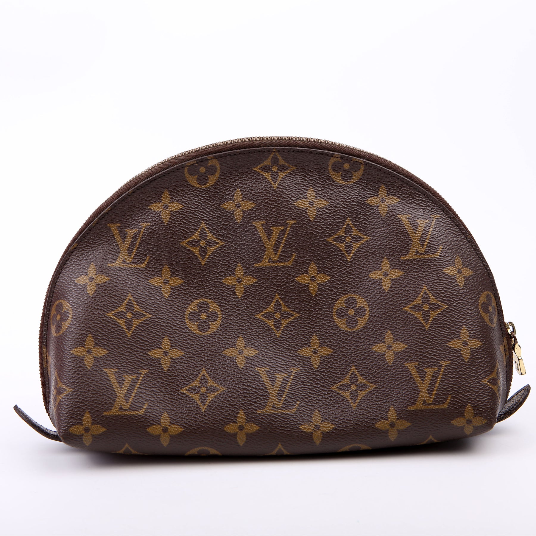 This pre-owned Louis Vuitton Trousse Demi Ronde 23 is guaranteed 100% authentic. The exterior is in the classic Louis Vuitton Monogram coated canvas.