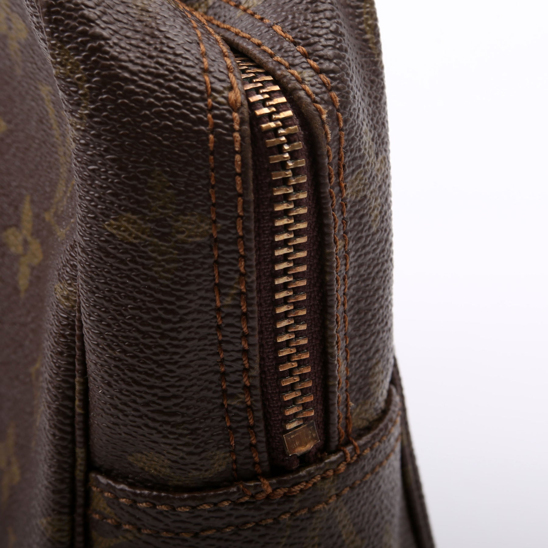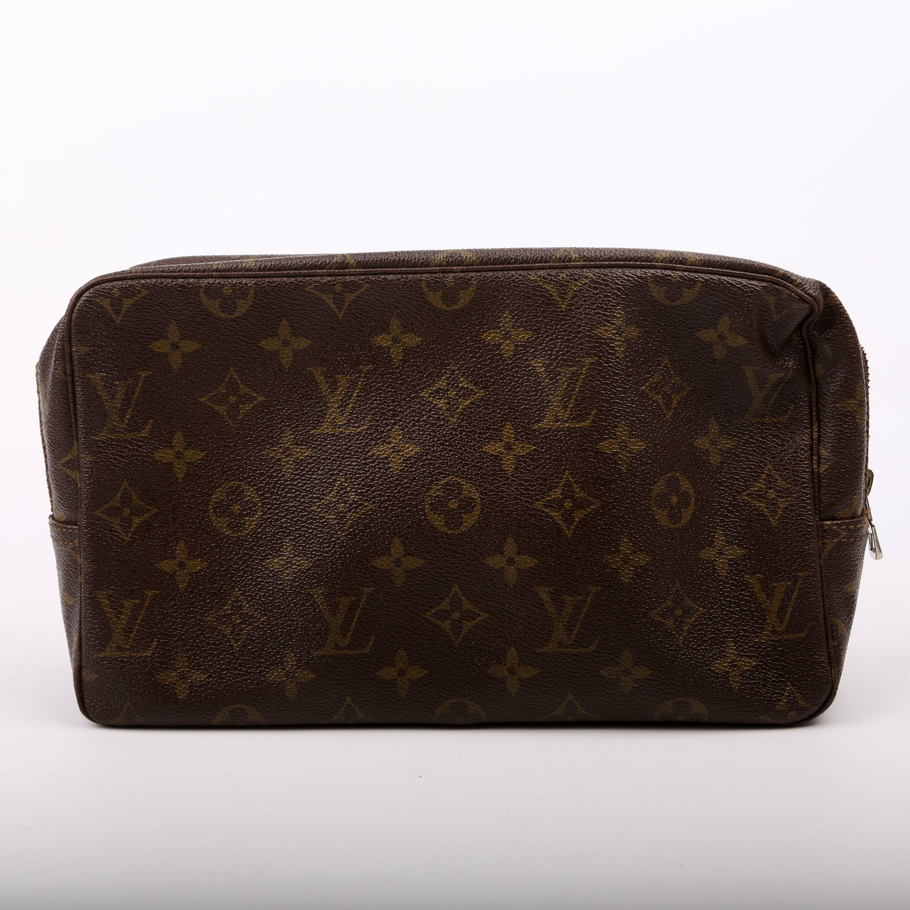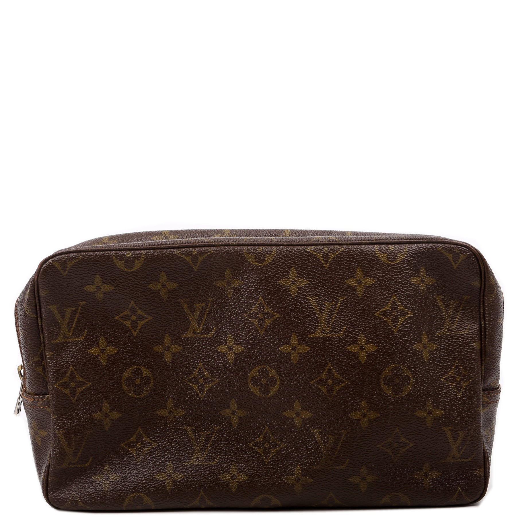 This pre-owned Louis Vuitton Trousse Toilette 28 is guaranteed 100% authentic. The exterior is in the classic Louis Vuitton Monogram coated canvas.