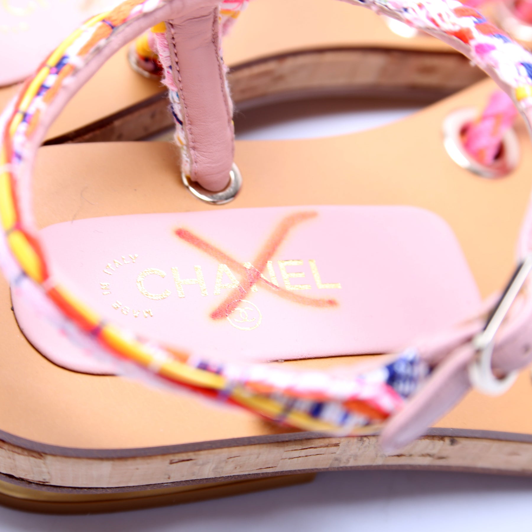 These pre-owned Chanel Tweed/Cord Flat Sandals are guaranteed 100% authentic.