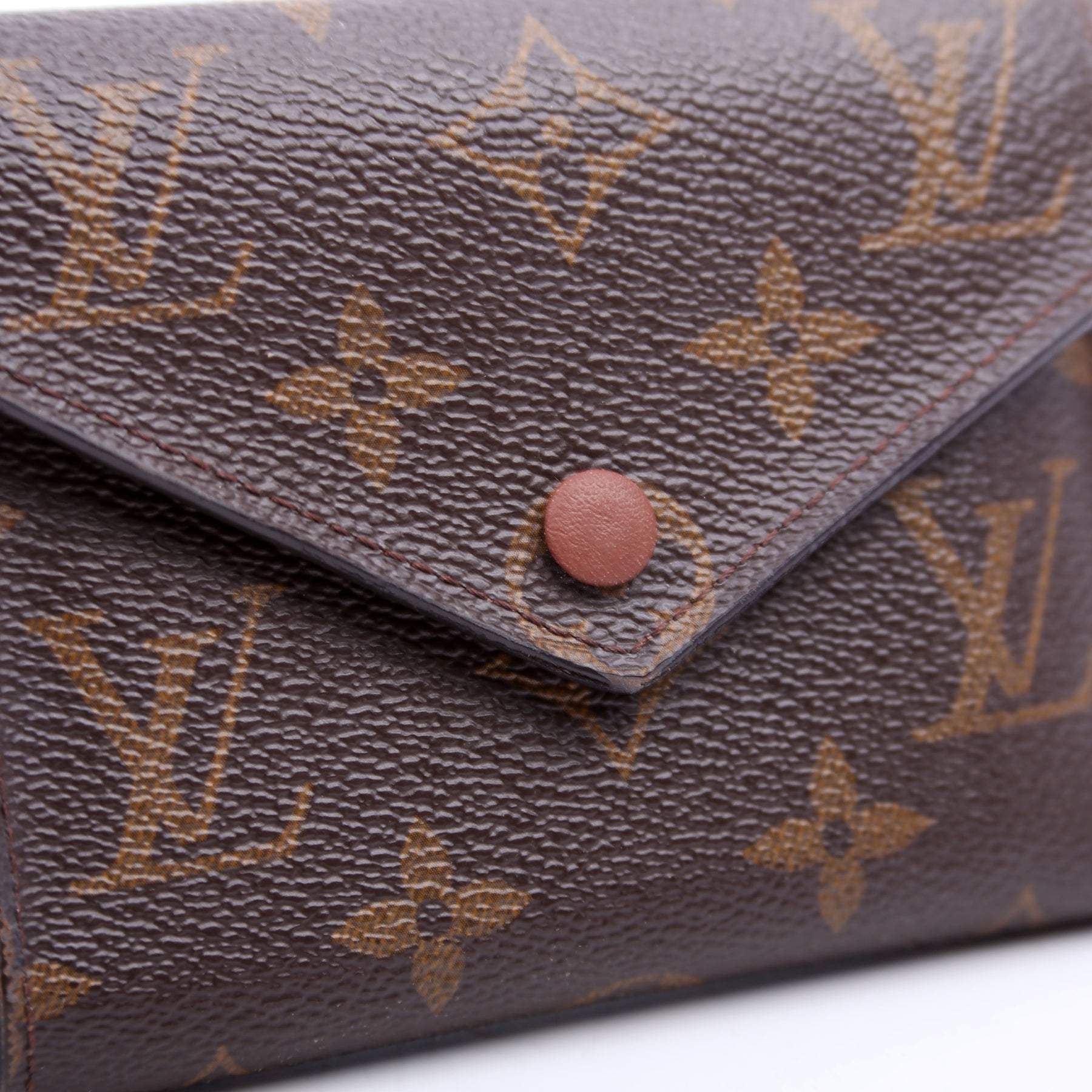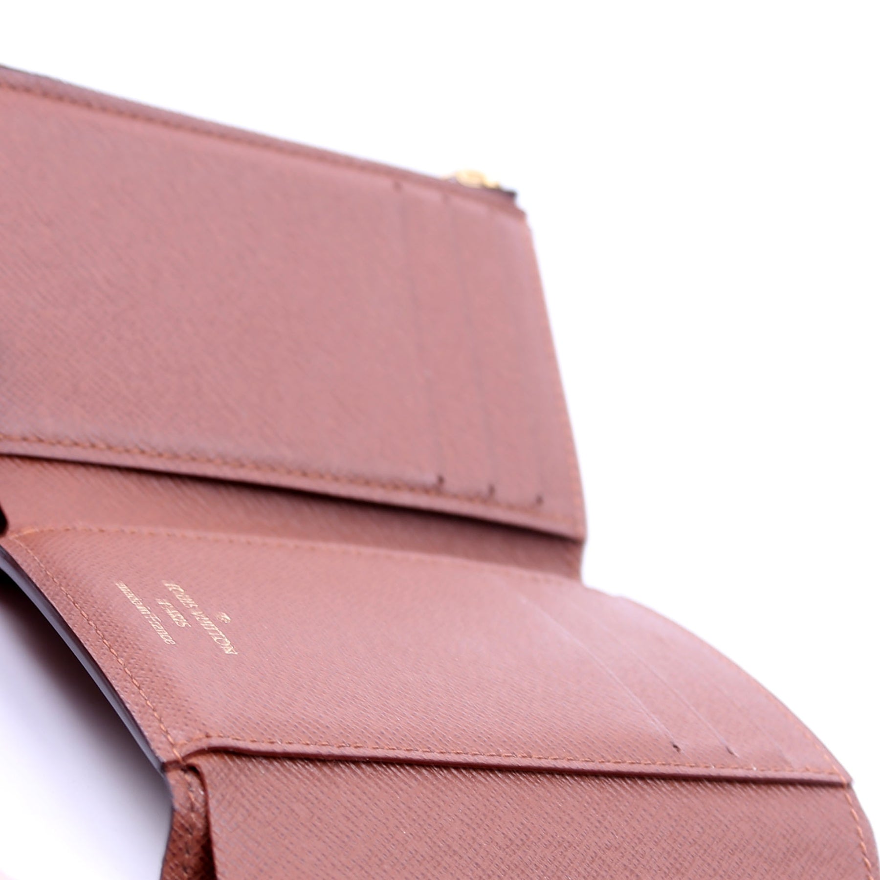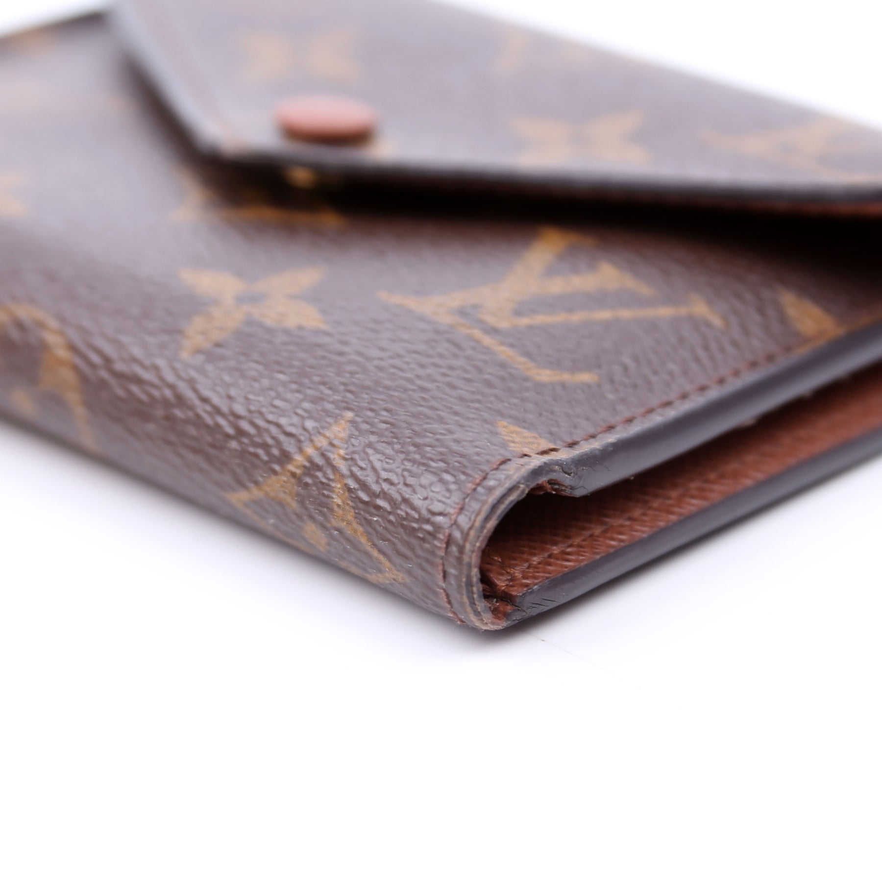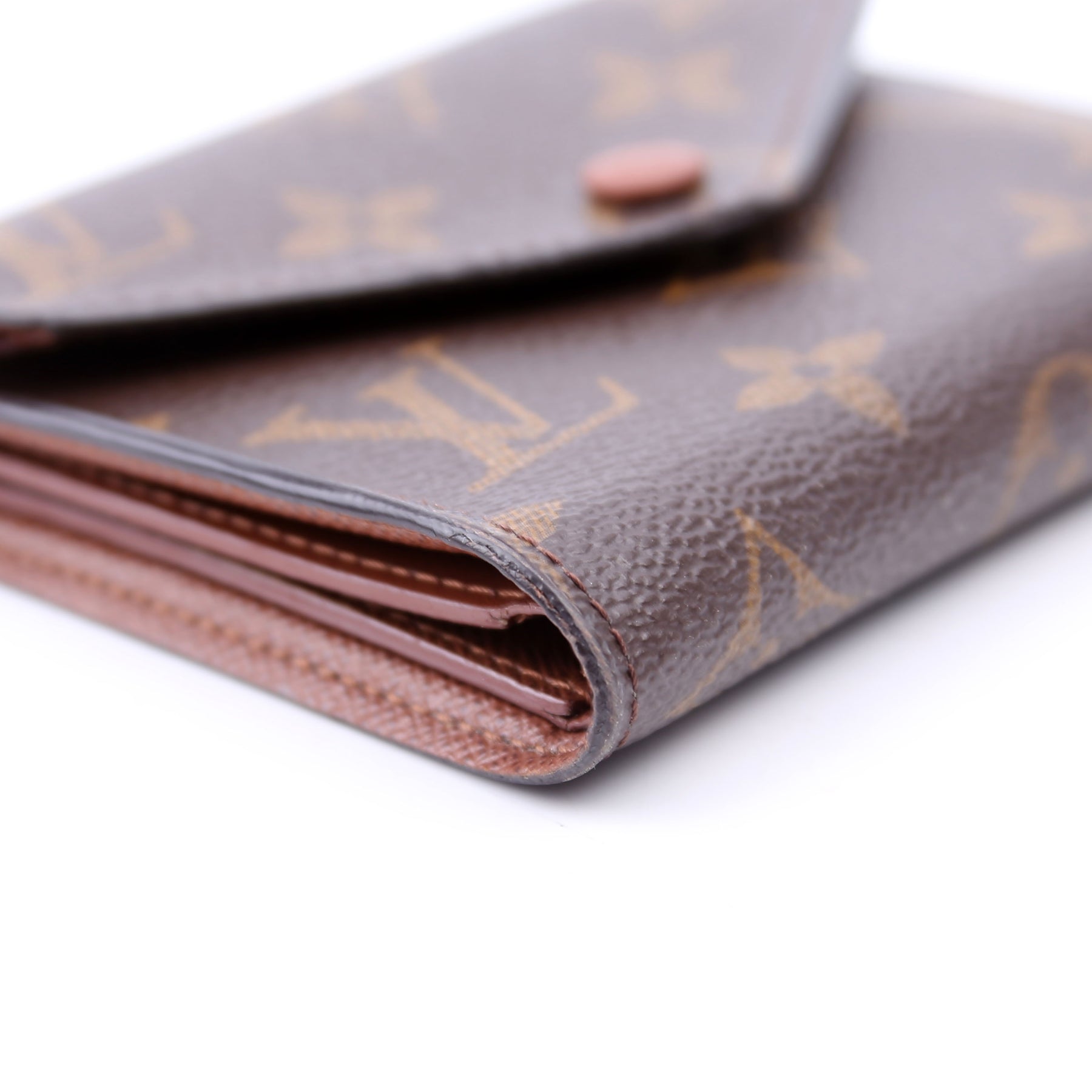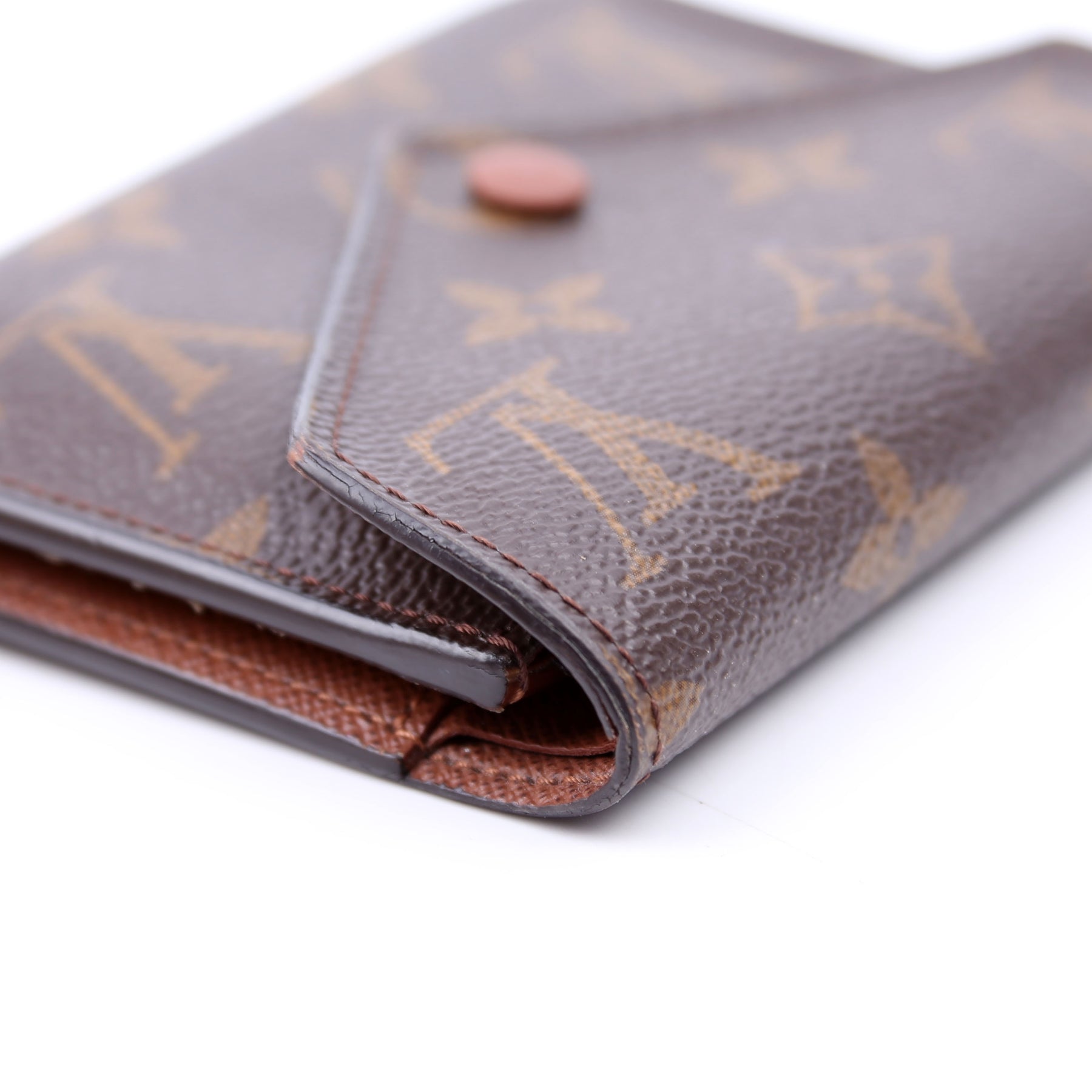 This pre-owned Louis Vuitton Victorine Wallet is guaranteed 100% authentic. The exterior is in the classic Louis Vuitton Monogram coated canvas.
