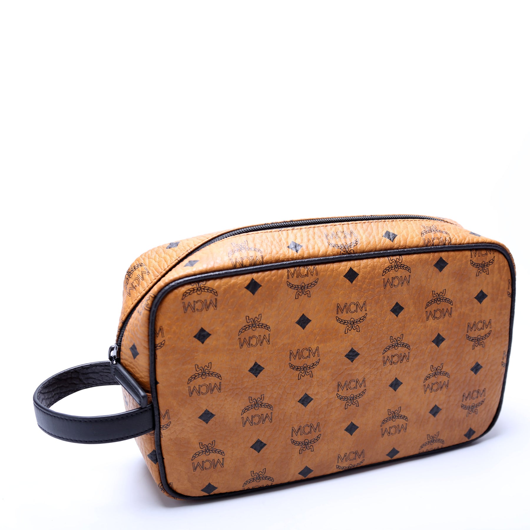This pre-owned MCM Visetos Toiletry Pouch is guaranteed 100% authentic.