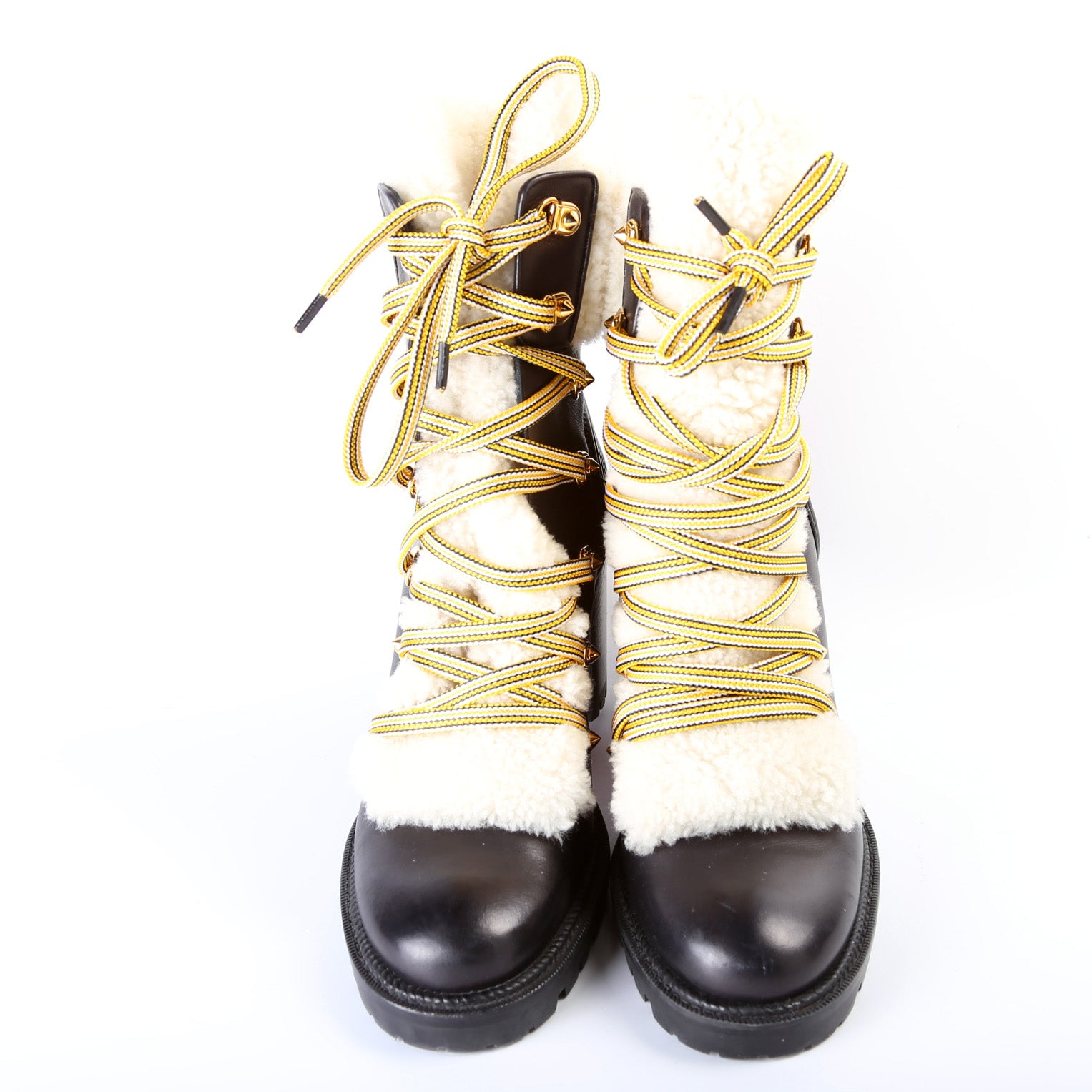 These pre-owned Christian Louboutin Yetita Shearling Hiker Boots 70MM are guaranteed 100% authentic.