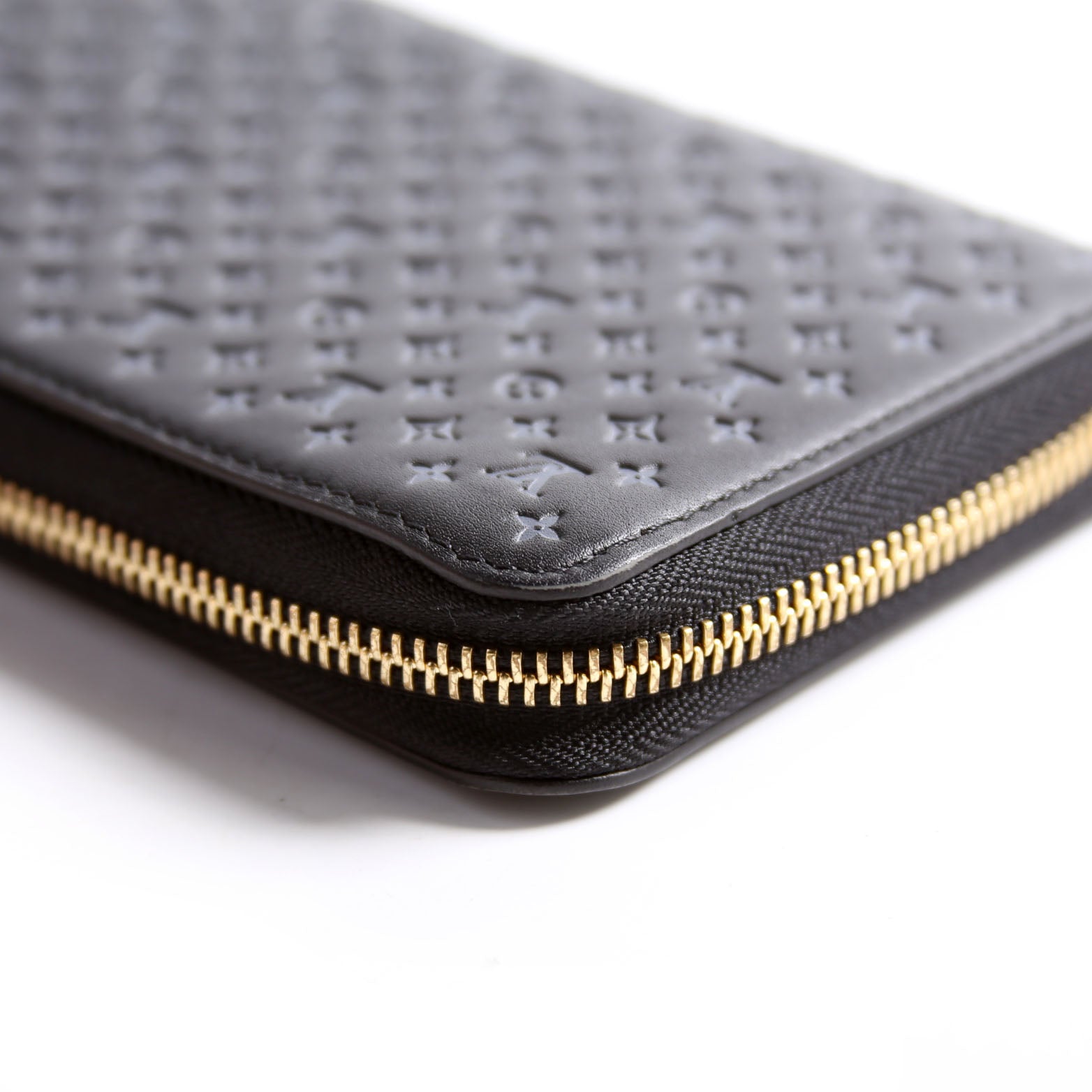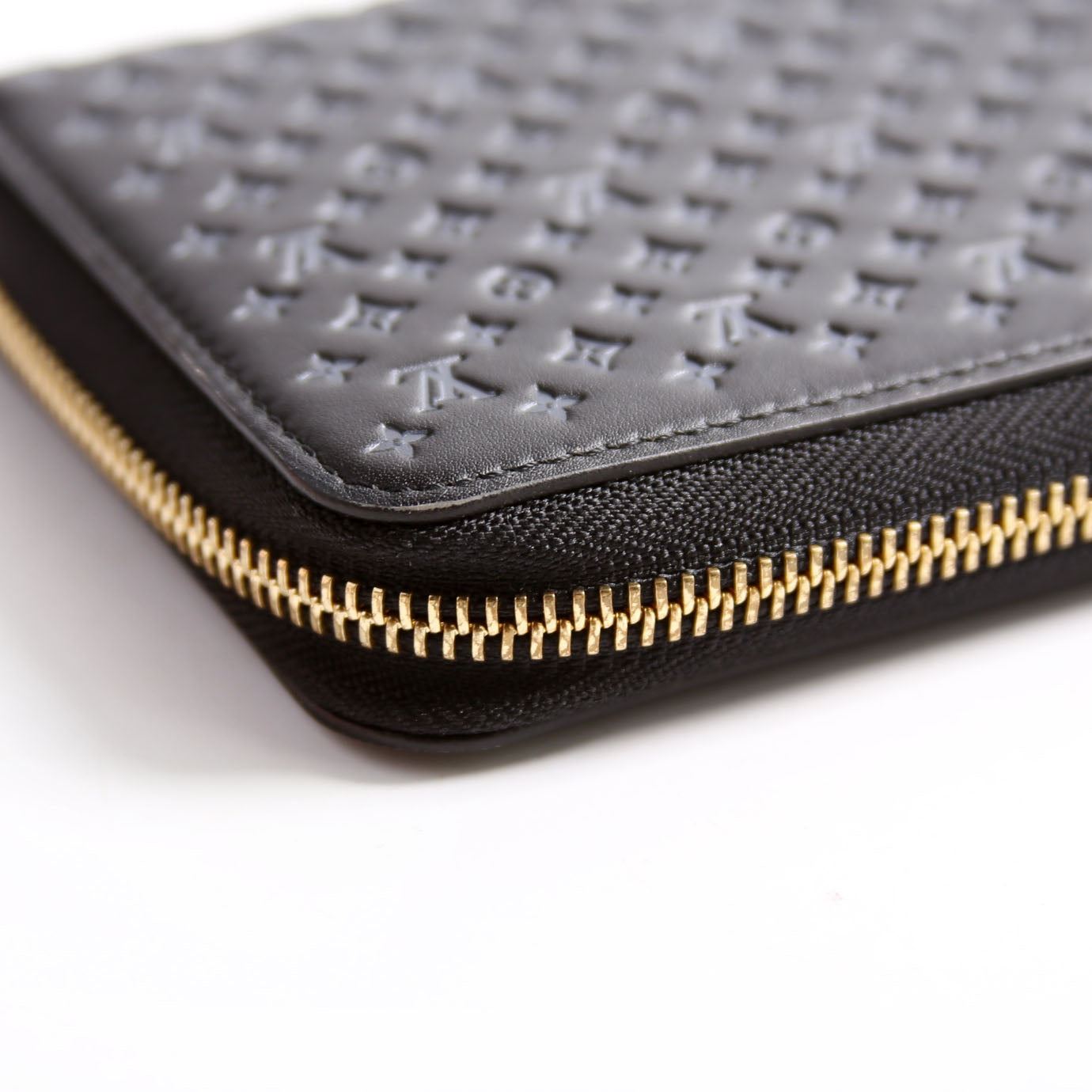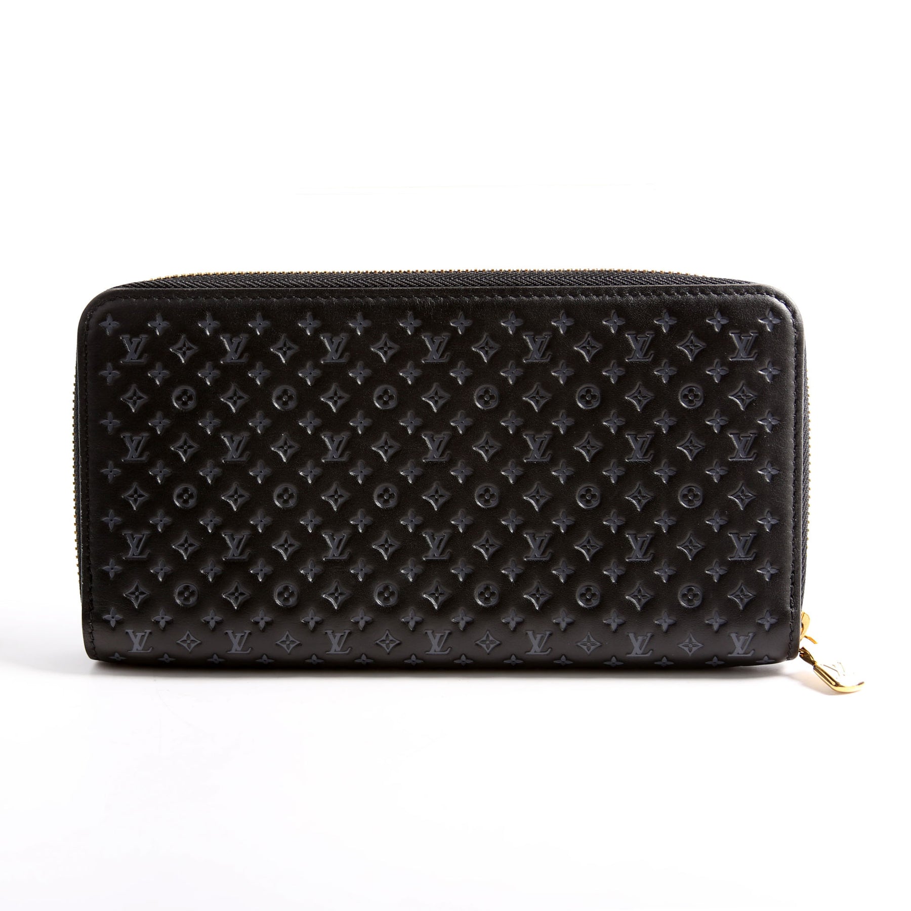 Zippy Wallet Nanogram Embossed Calfskin Black