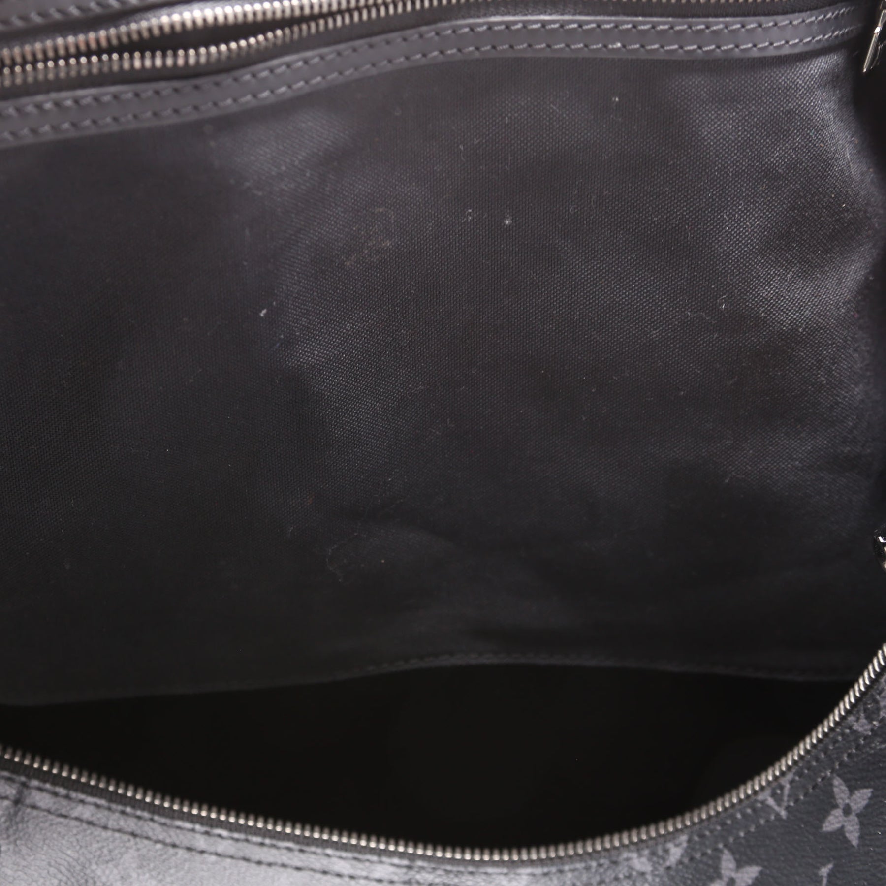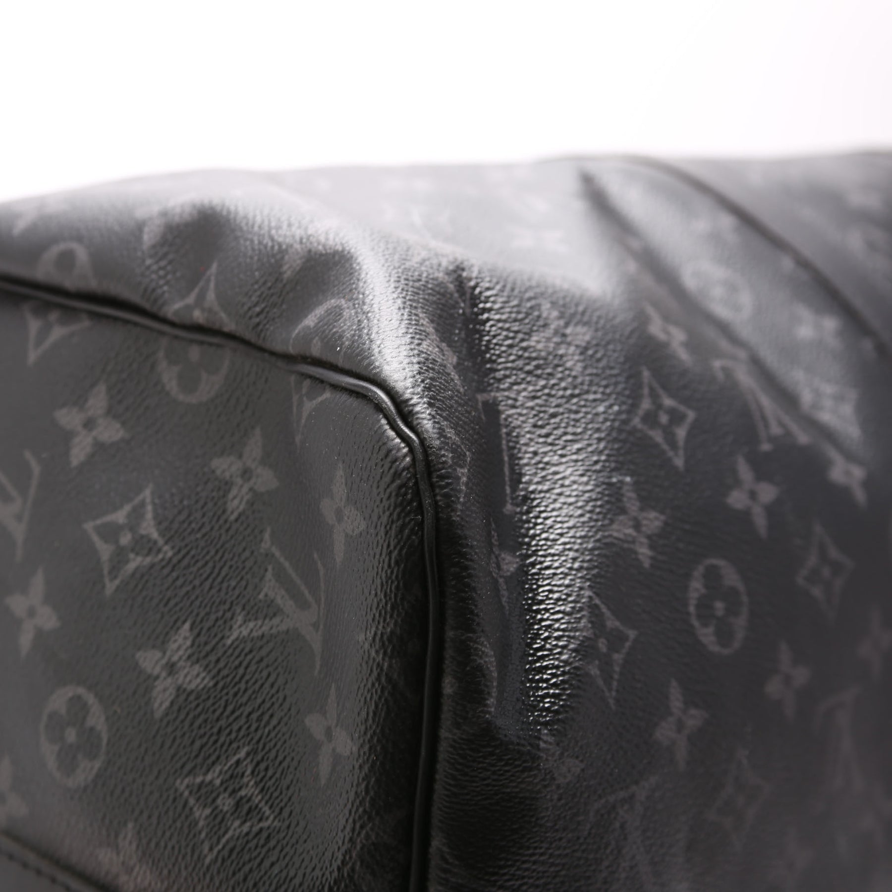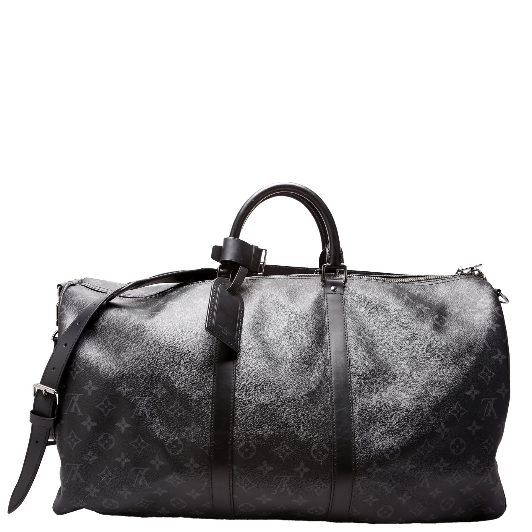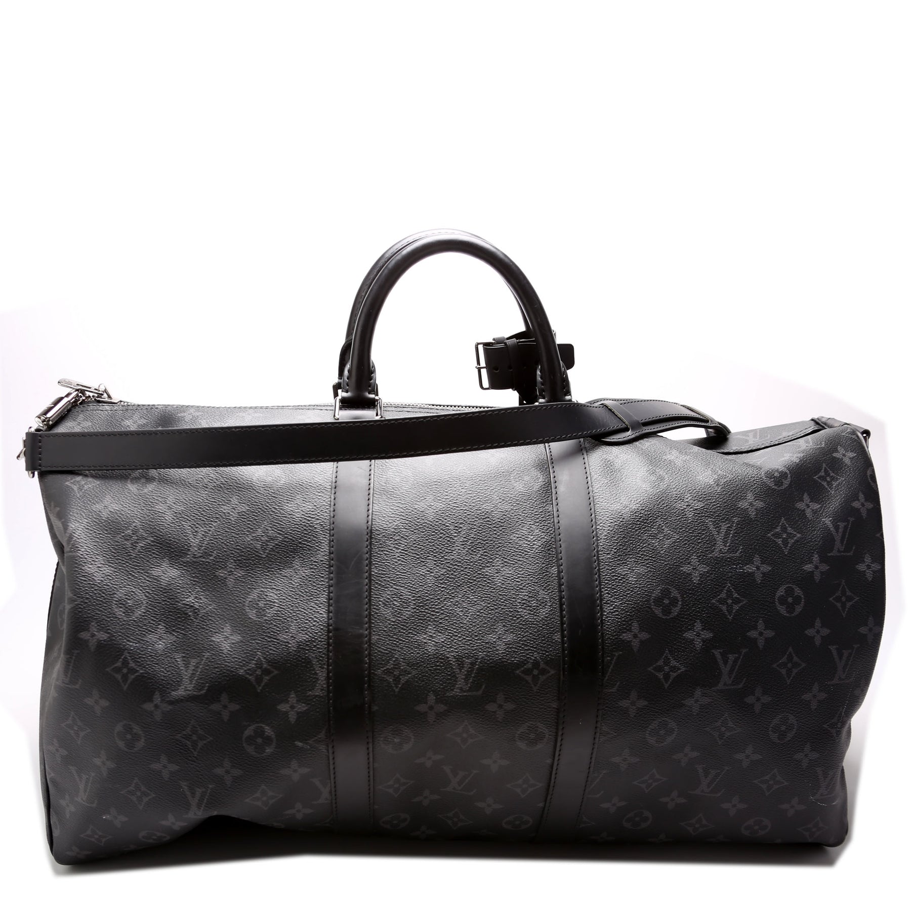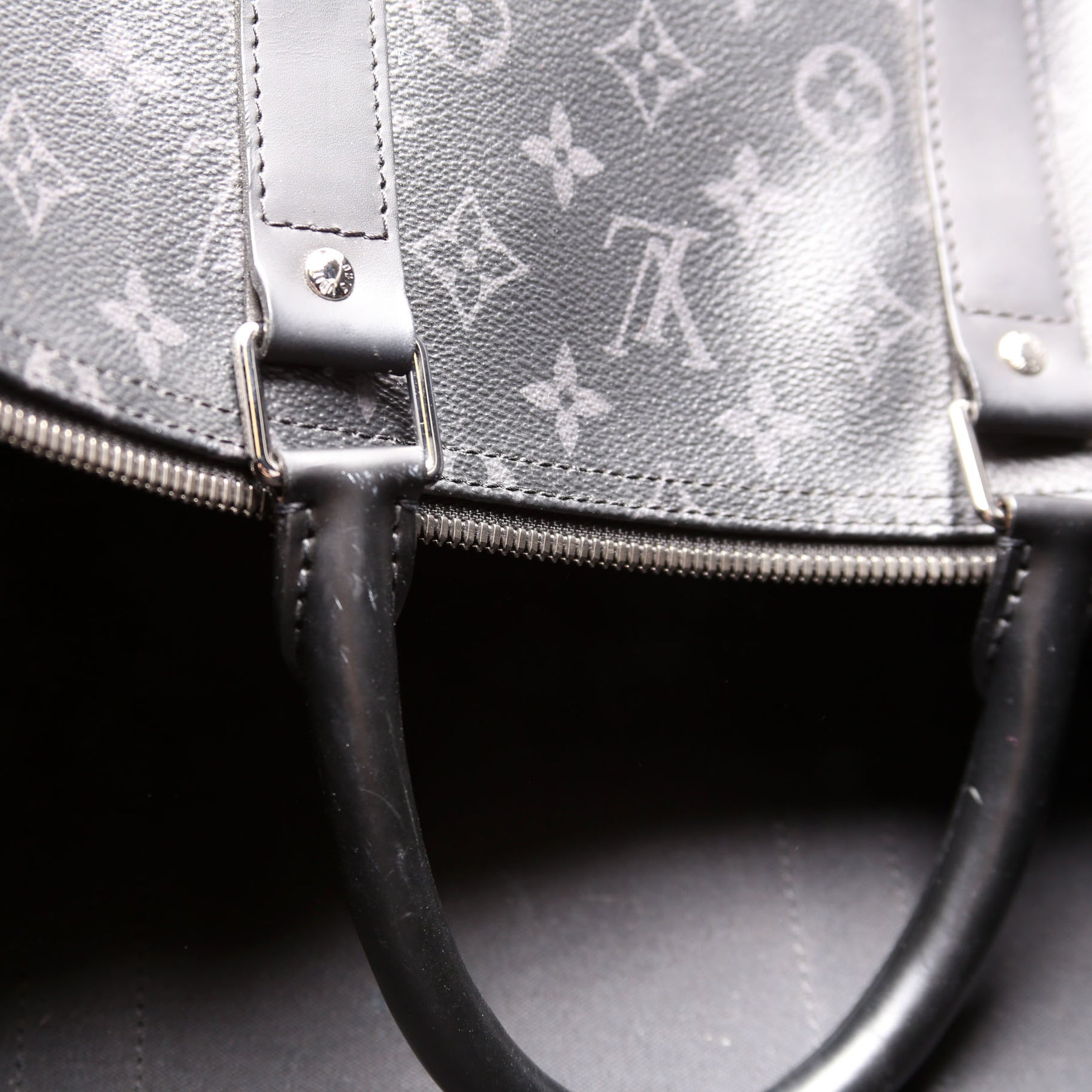 This pre-owned Louis Vuitton Keepall 55 Bandouliere without Strap is guaranteed 100% authentic. The exterior is in the classic Louis Vuitton Eclipse coated canvas.