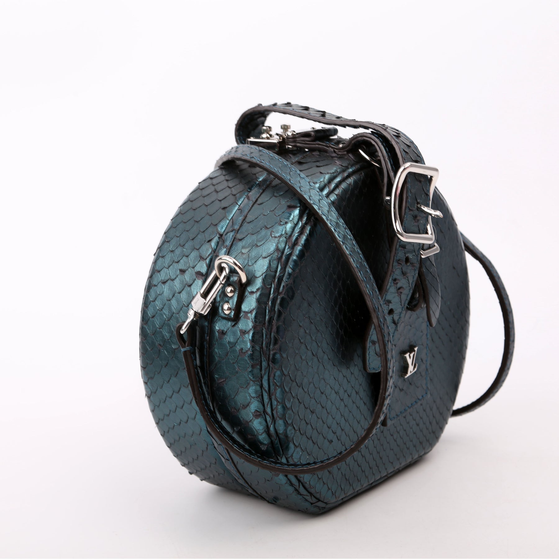 This pre-owned Louis Vuitton Petite Boite Chapeau Snakeskin is guaranteed 100% authentic.