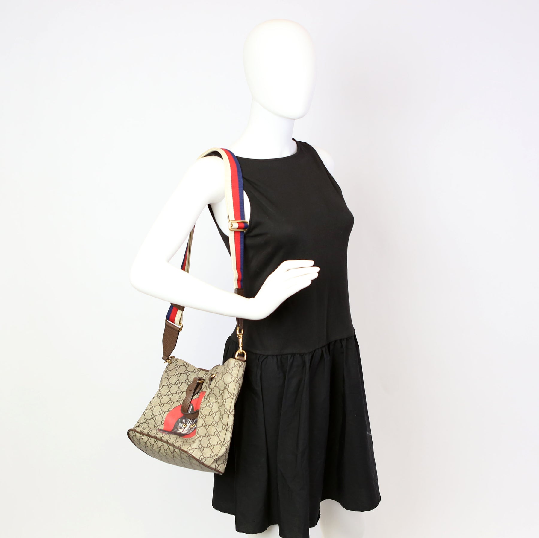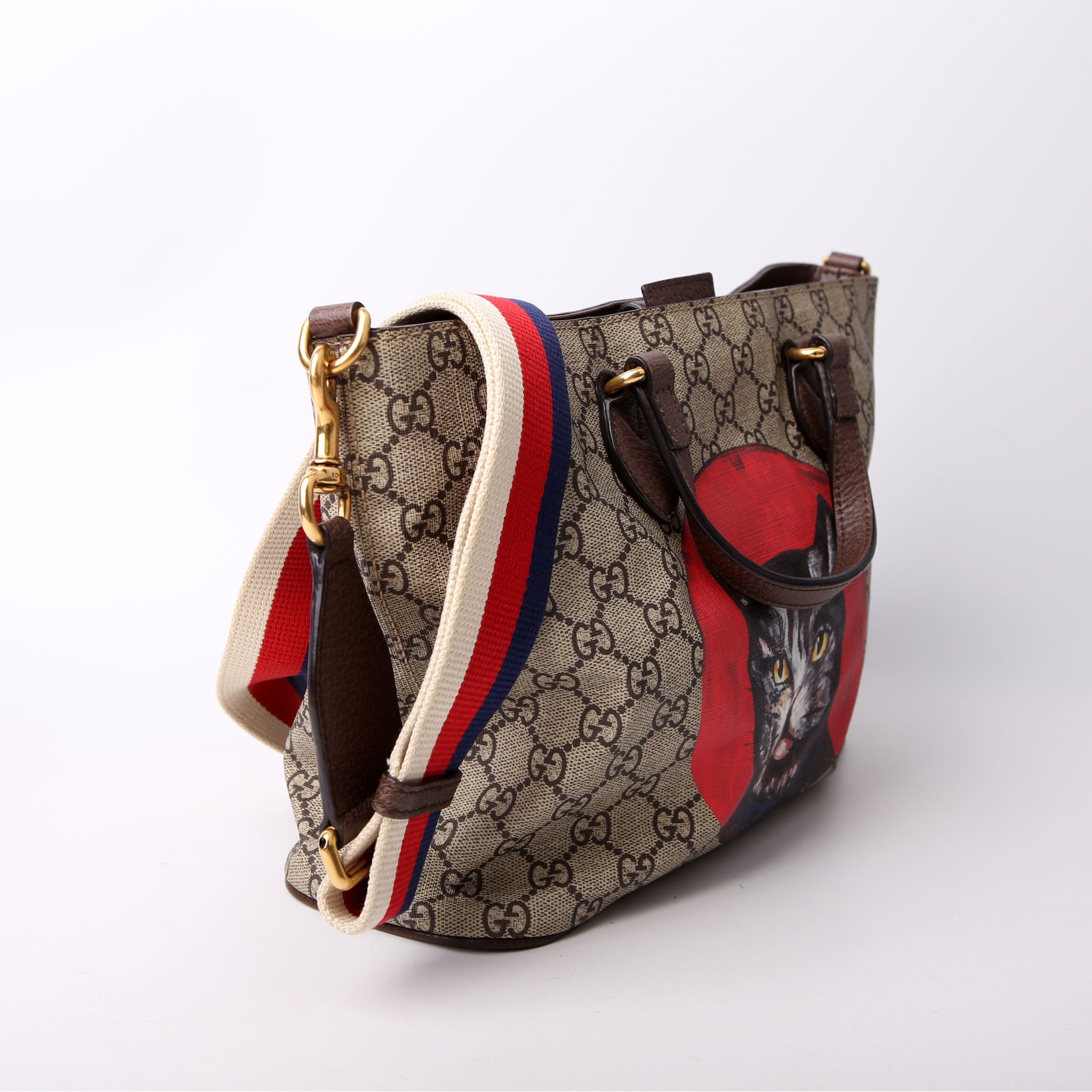 This pre-owned Gucci GG Supreme Small Tote Mystic Cat is guaranteed 100% authentic. The exterior is in the classic Gucci GG Supreme coated canvas.