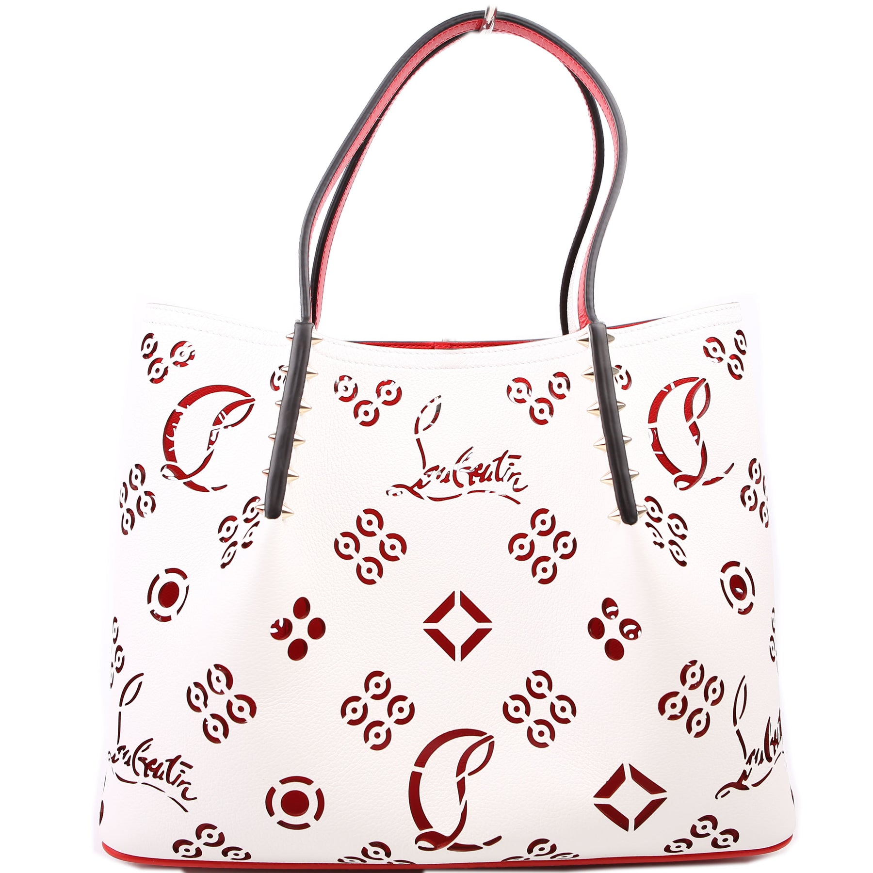 This pre-owned Christian Louboutin Cabarock Loubinthesky Perforated Leather Large Tote is guaranteed 100% authentic.