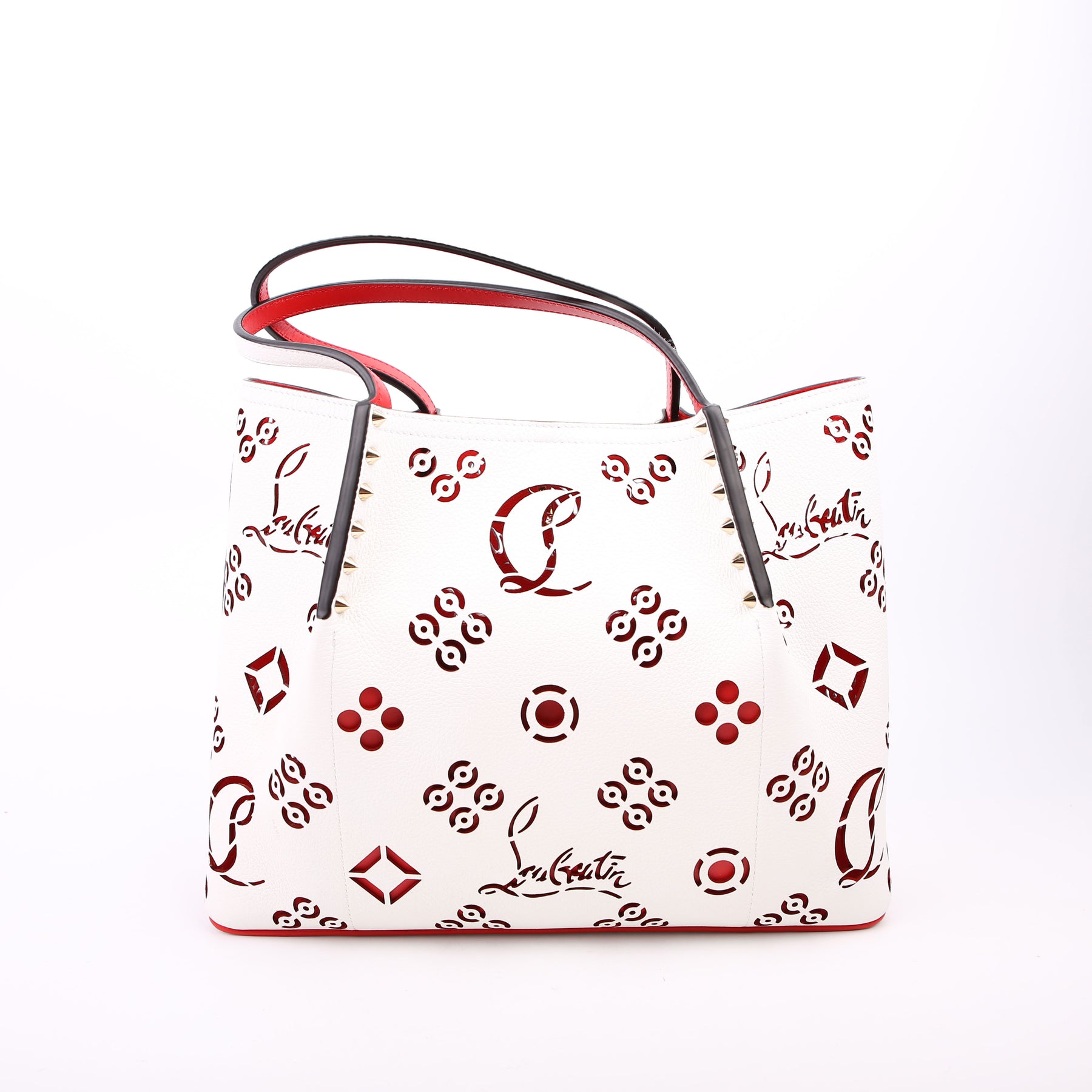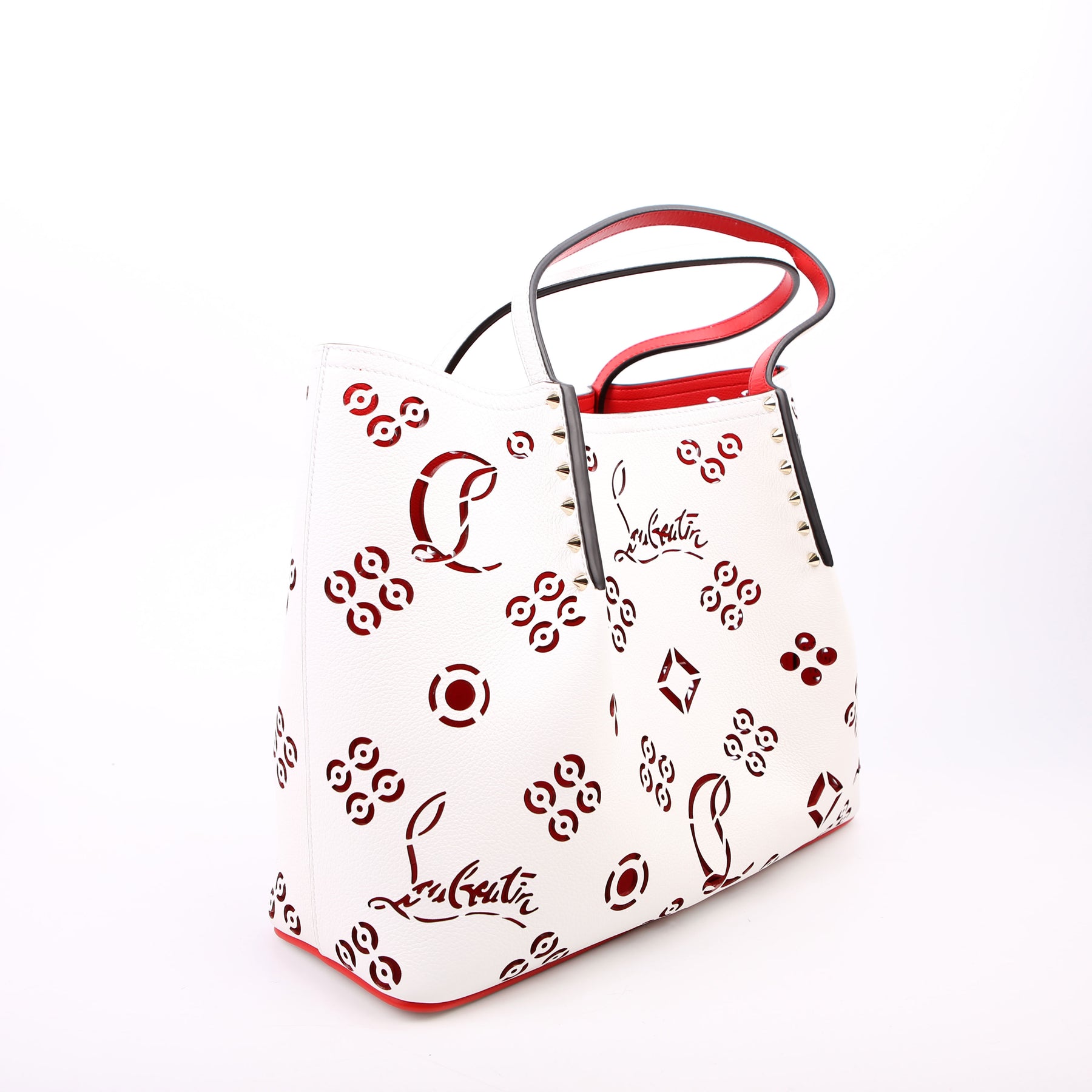 Cabarock Loubinthesky Perforated Leather Large Tote White