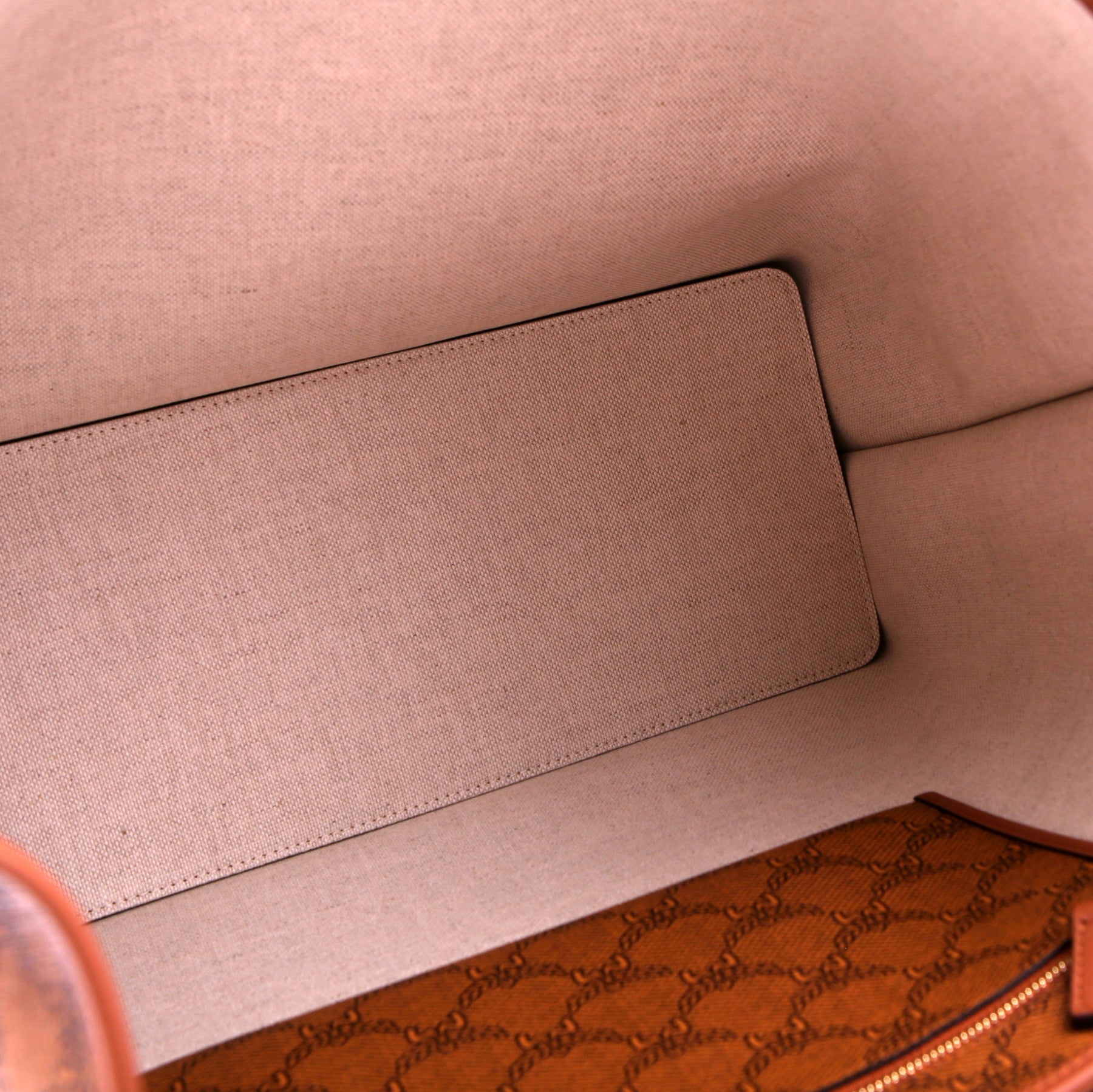 Interior: The interior is clean and features one zipper pocket.