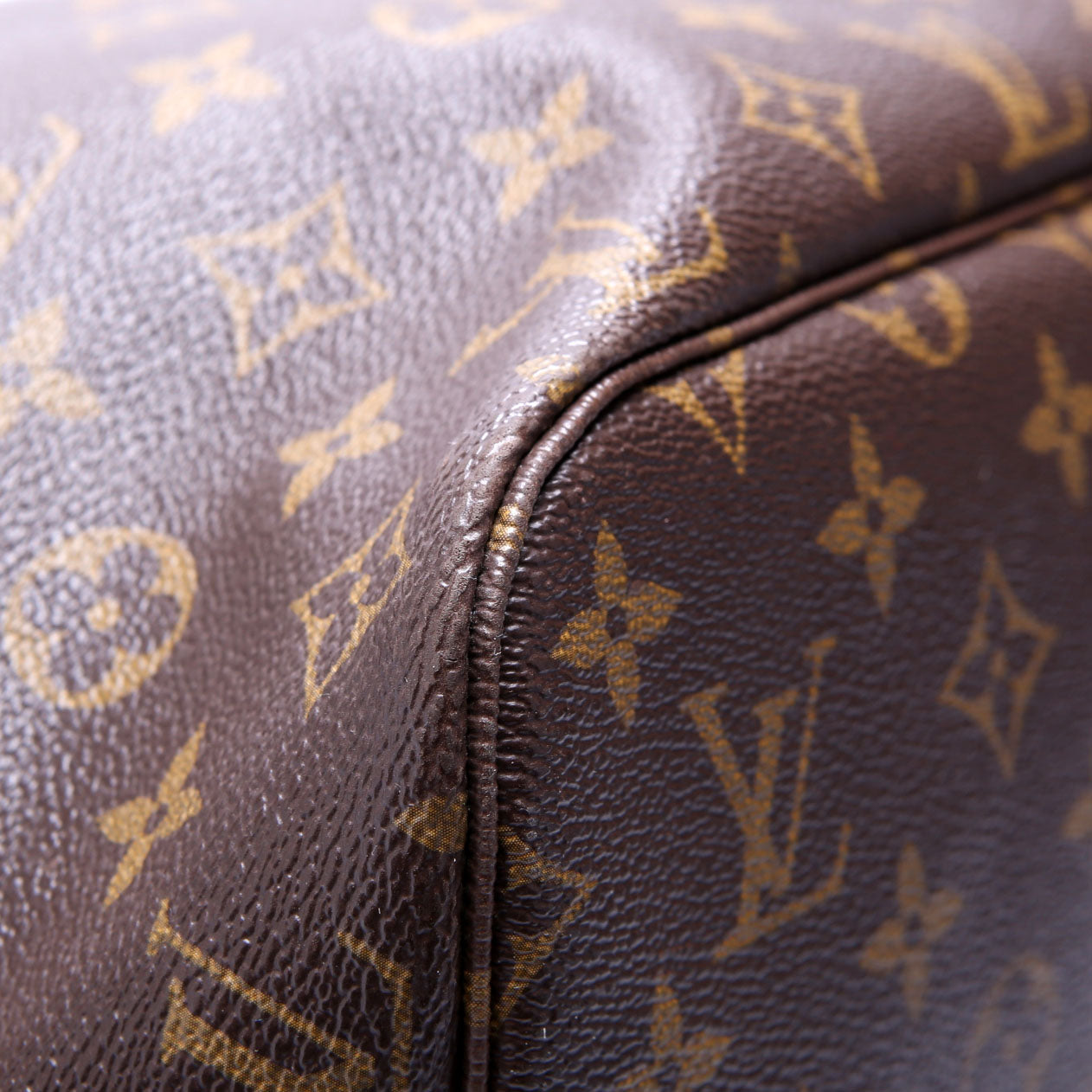 This pre-owned Louis Vuitton Neverfull MM is guaranteed 100% authentic. The exterior is in the classic Louis Vuitton Monogram coated canvas.