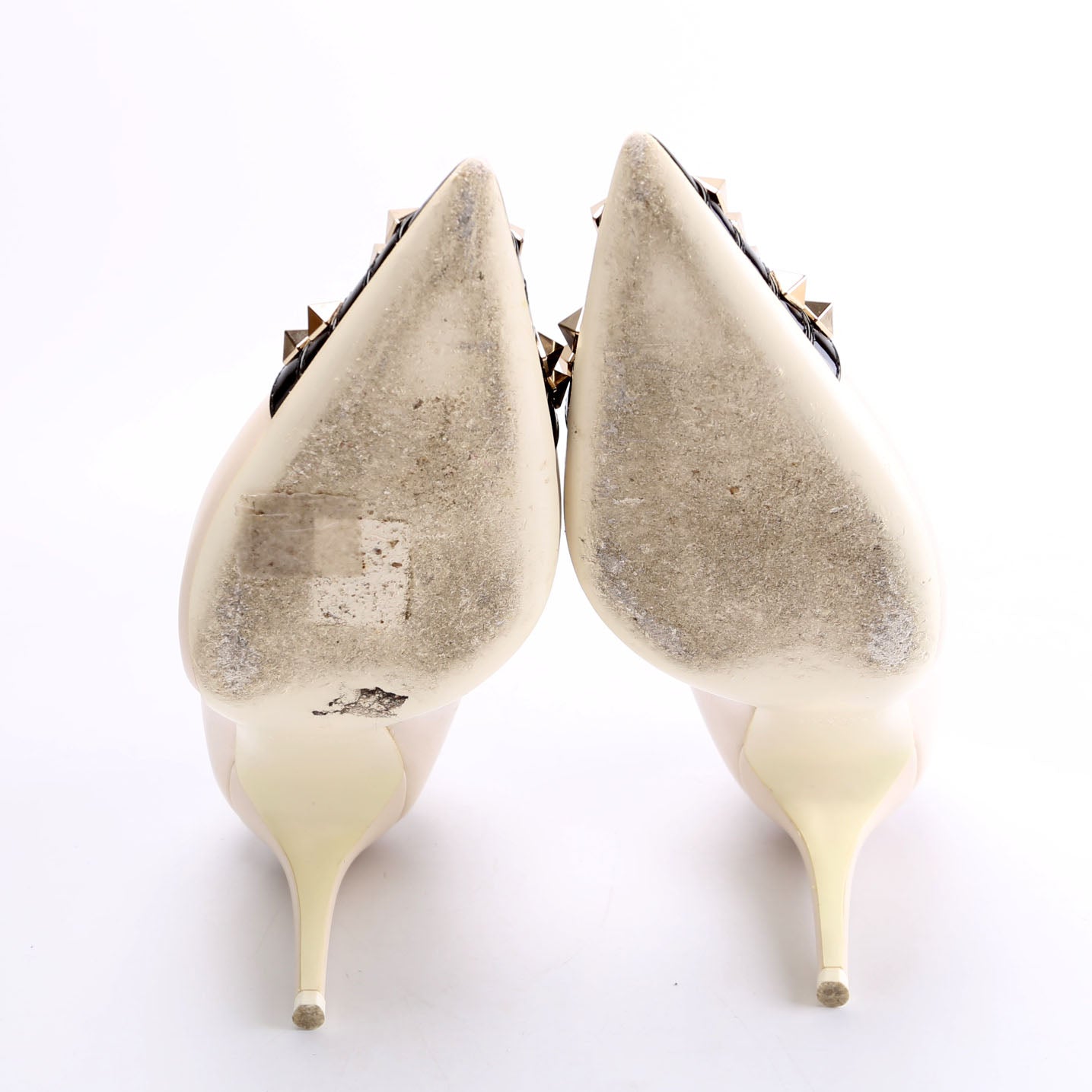 Rockstud Alcove Patent/Leather 90 Pumps Size 37 Ivory/Black