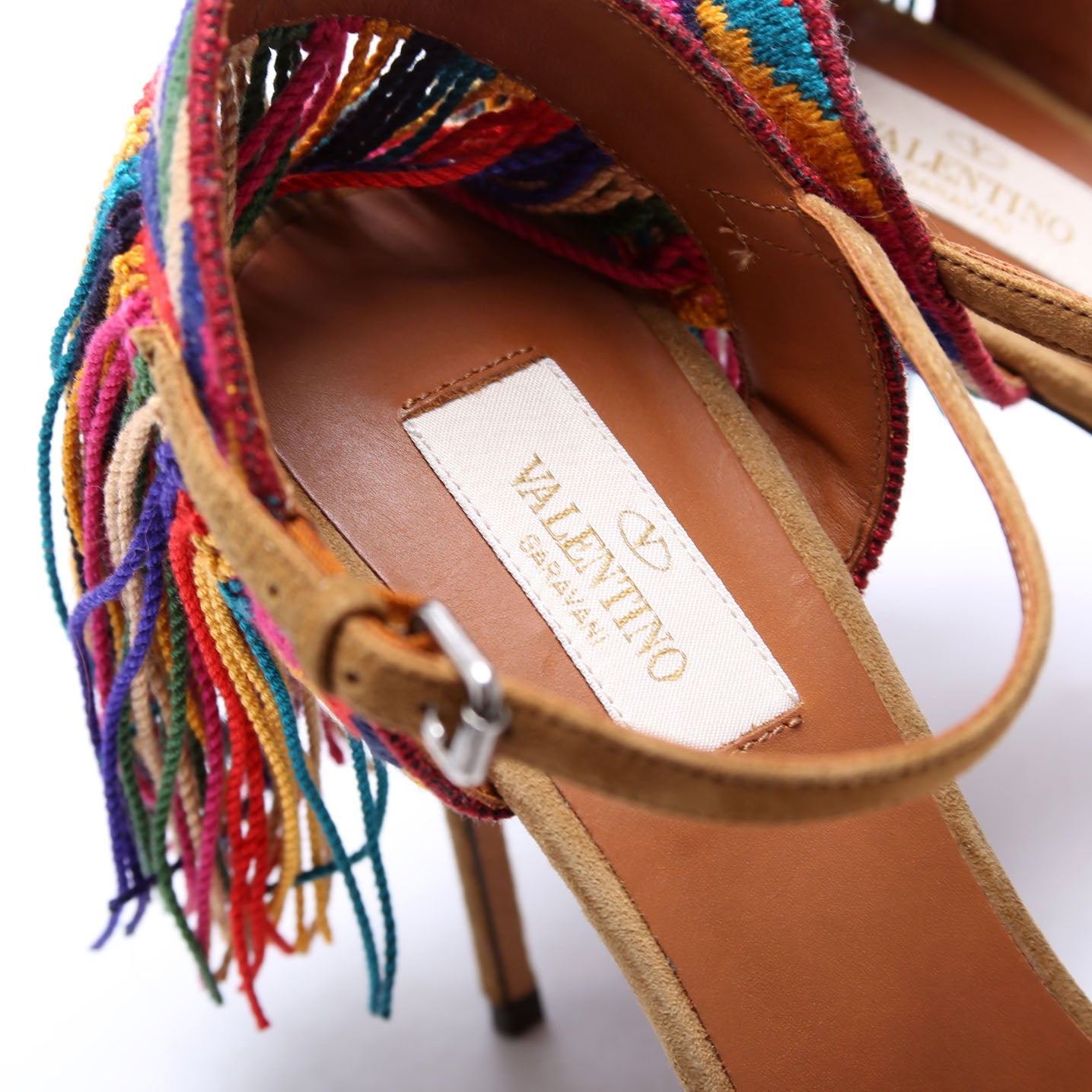 These pre-owned Valentino Rockstud Rolling Fringe Sandals are guaranteed 100% authentic.