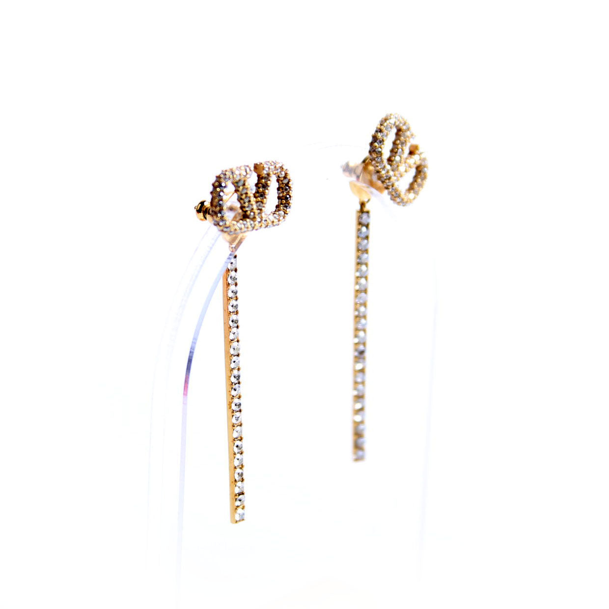 This pre-owned Valentino V Logo Crystal Drop Earrings are guaranteed 100% authentic.