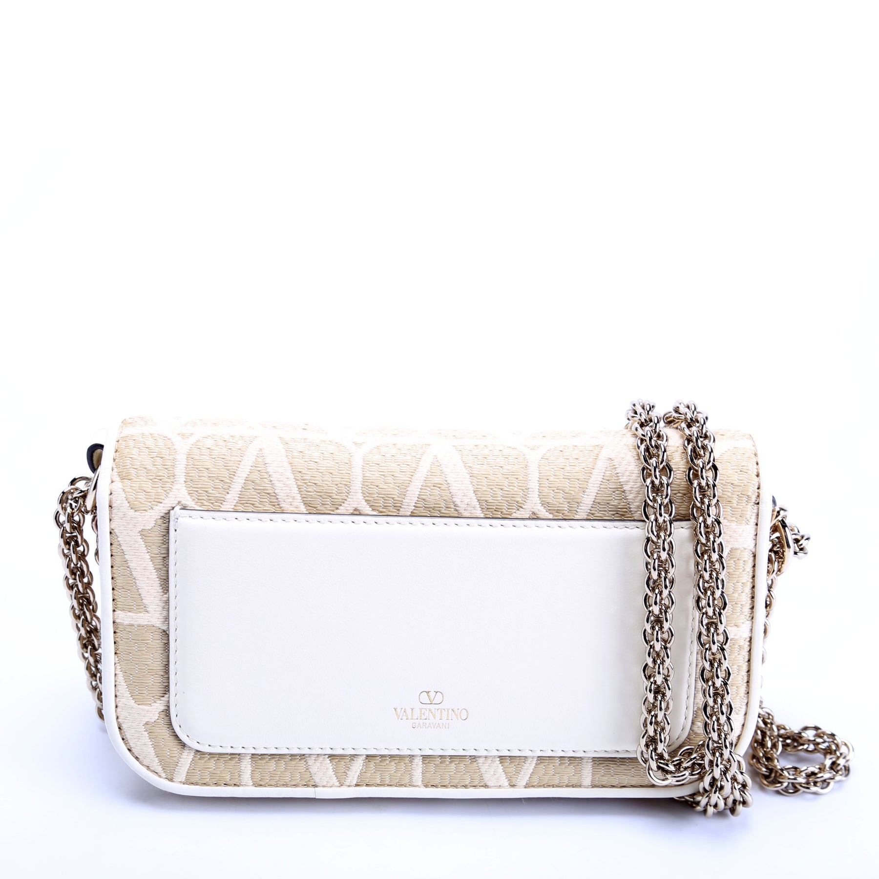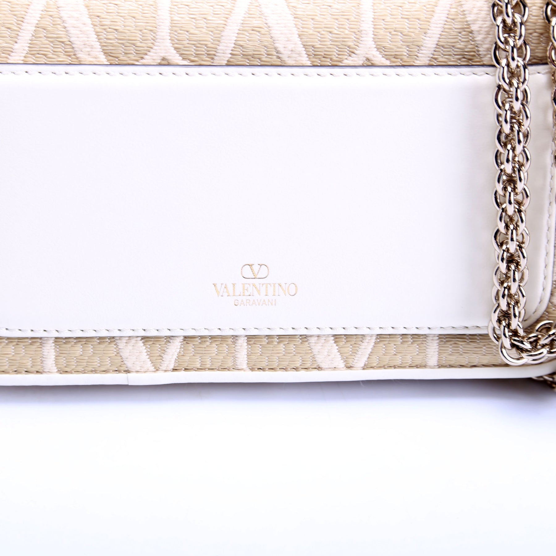V Logo Small Loco Raffia Shoulder Bag Beige/White
