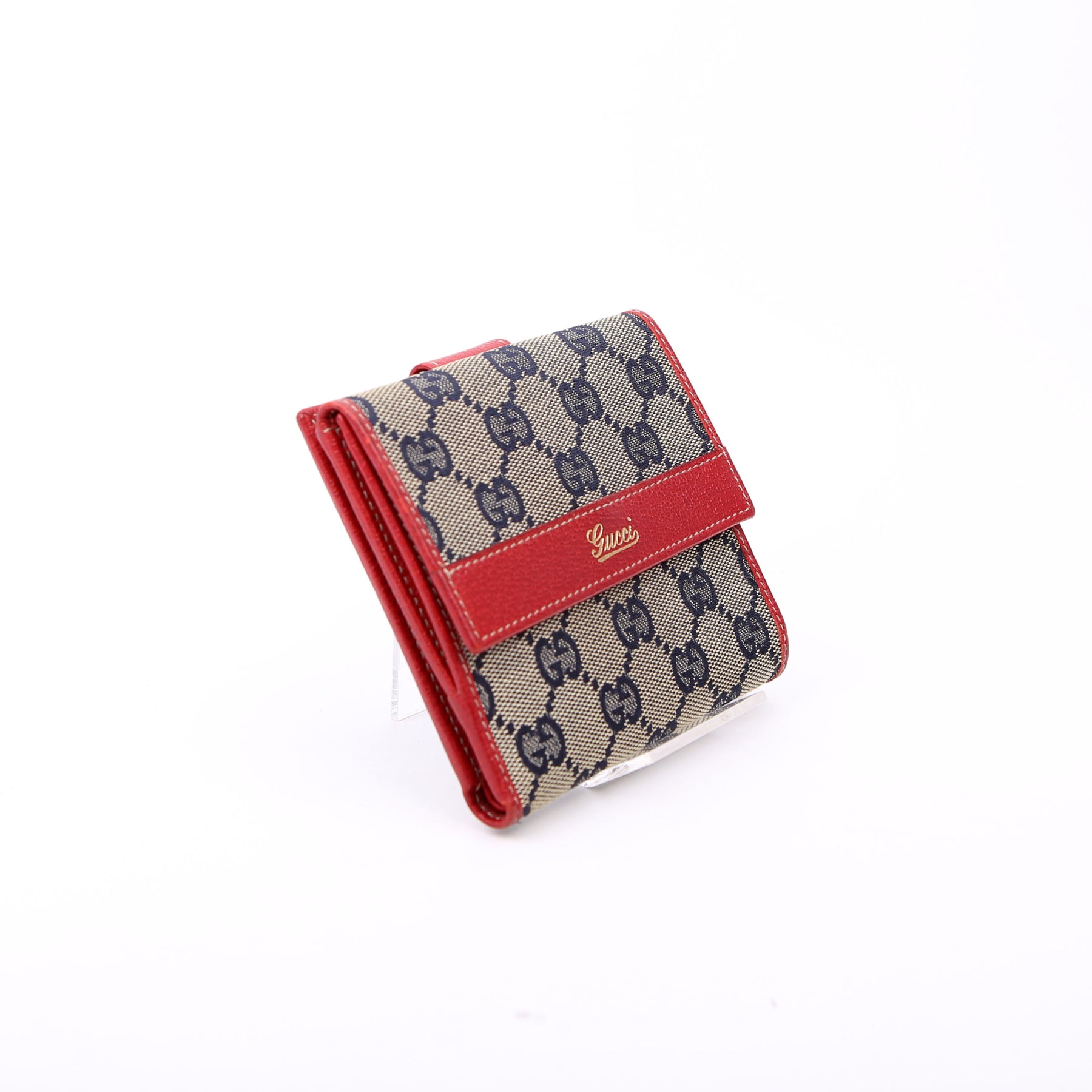 131854 GG Canvas Tri-Fold Wallet Navy/Red