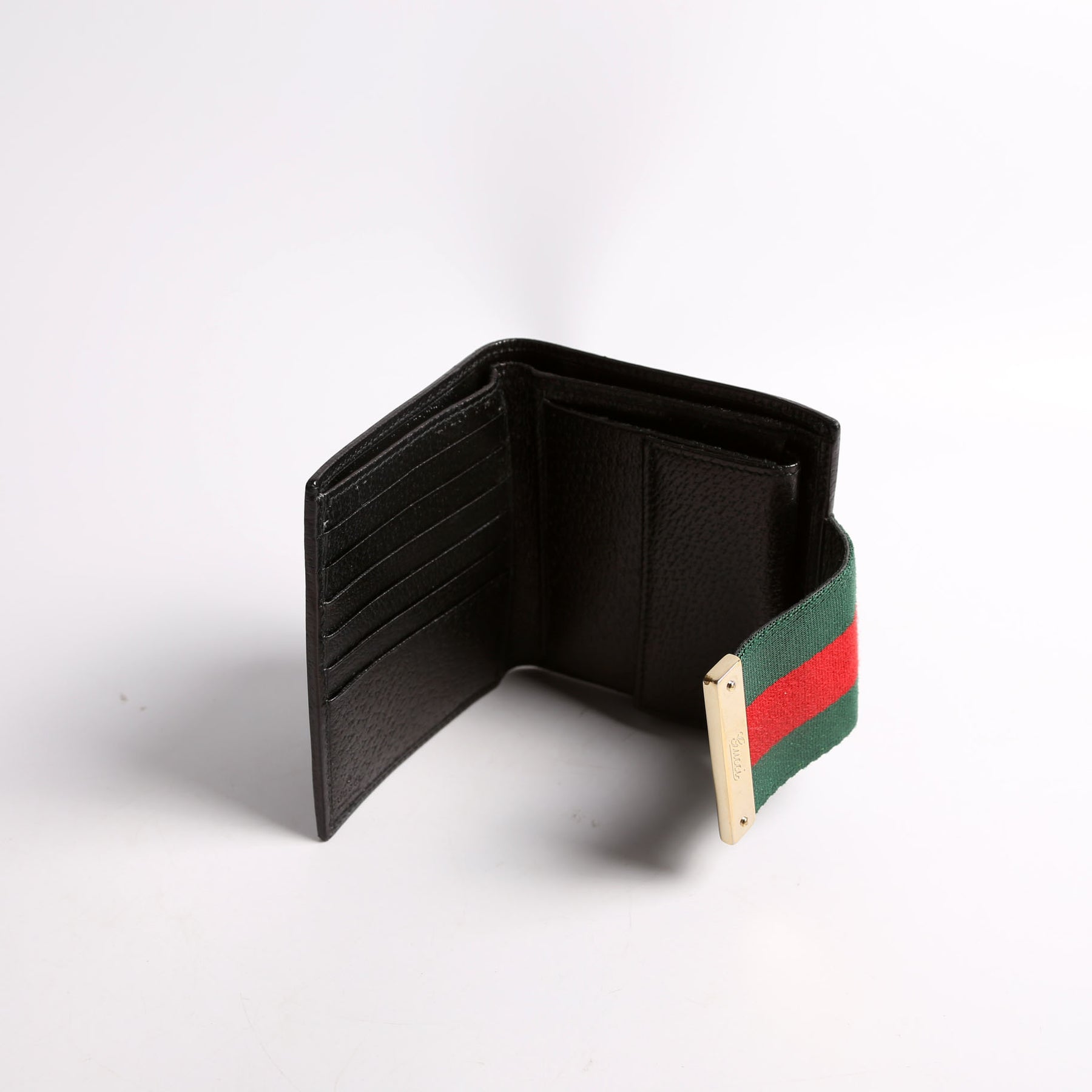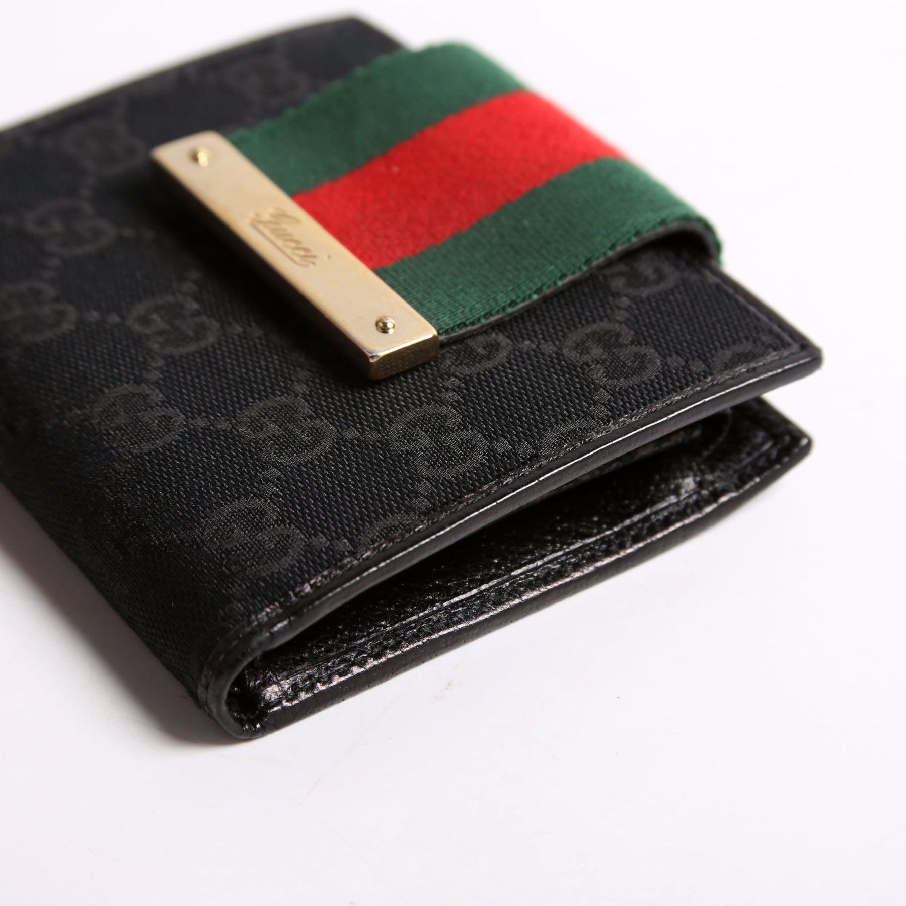 This pre-owned Gucci GG Canvas Web Compact Wallet is guaranteed 100% authentic.
