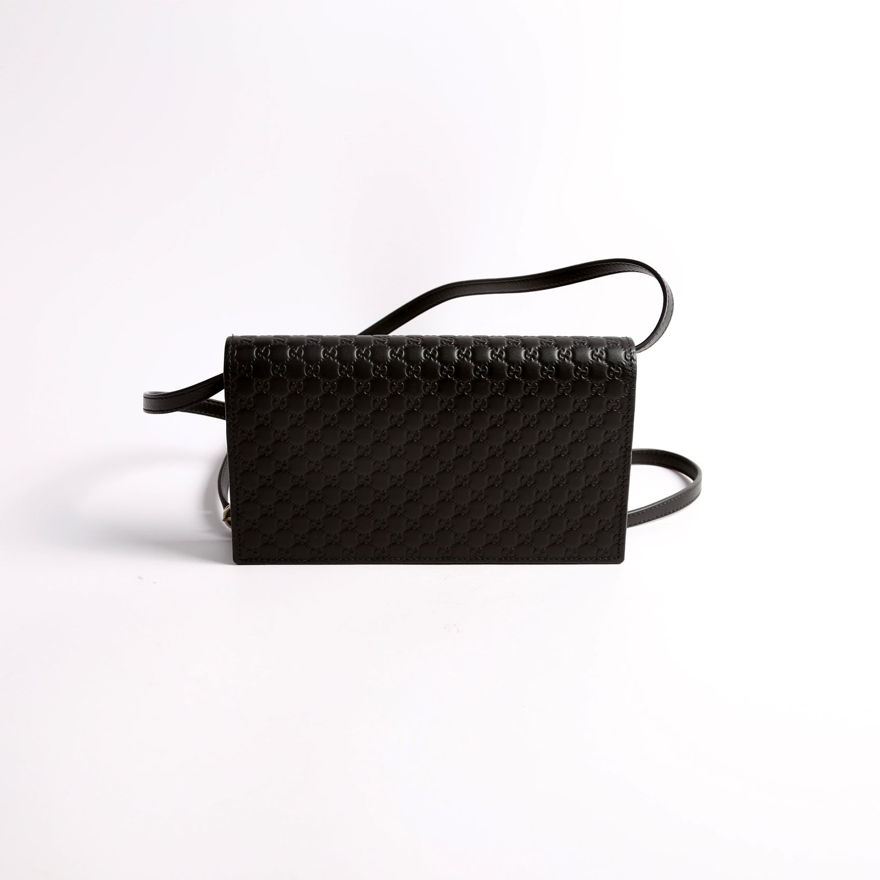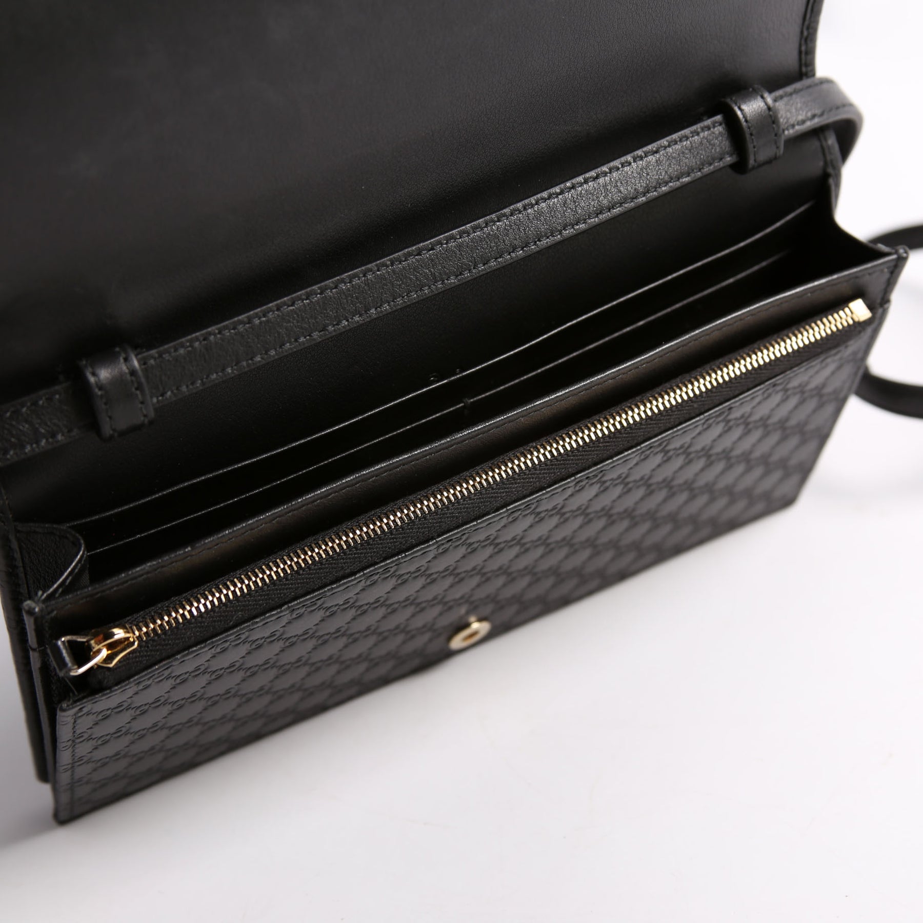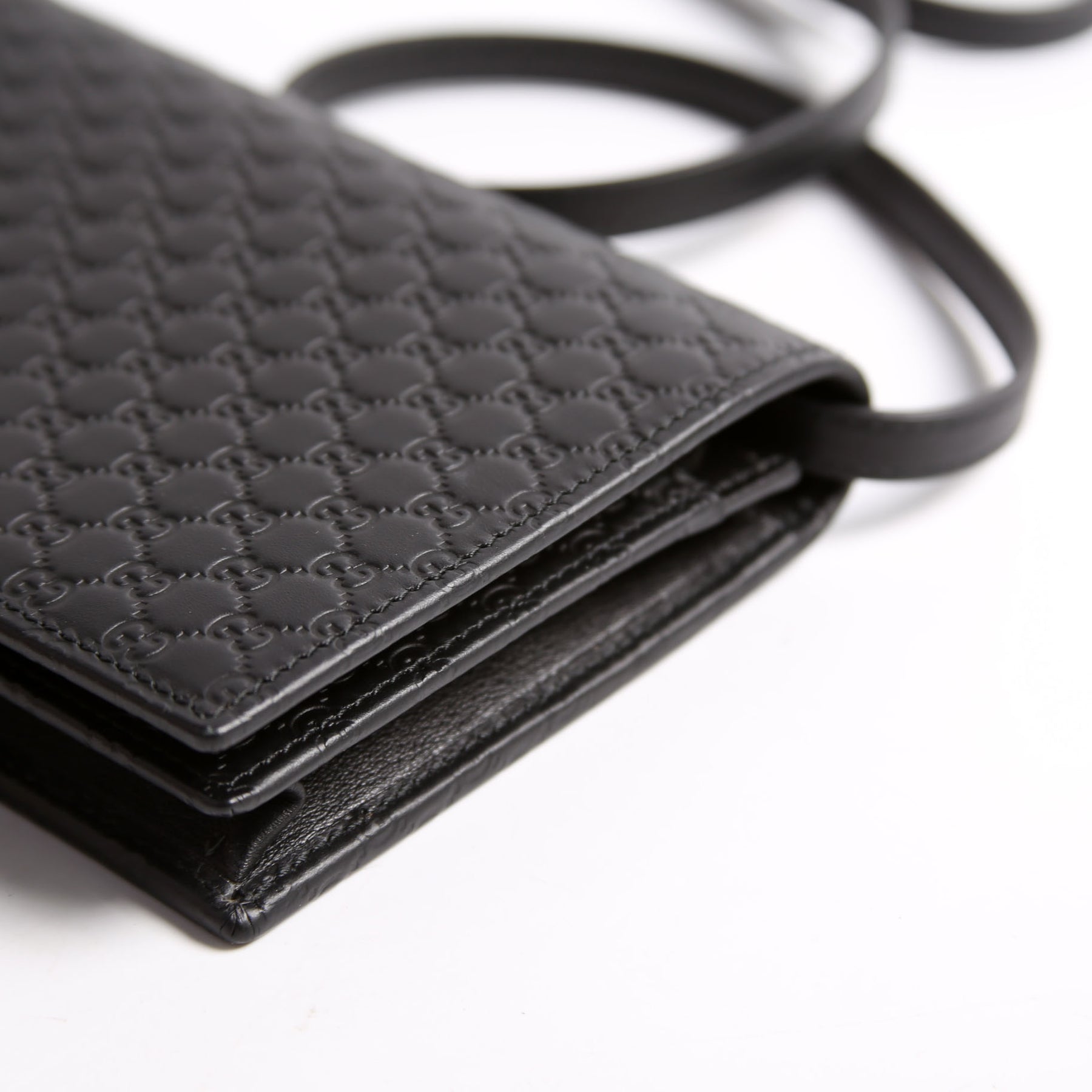 This pre-owned Gucci Micro GG Wallet On Chain is guaranteed 100% authentic. The exterior is in the classic Gucci Guccissima leather.