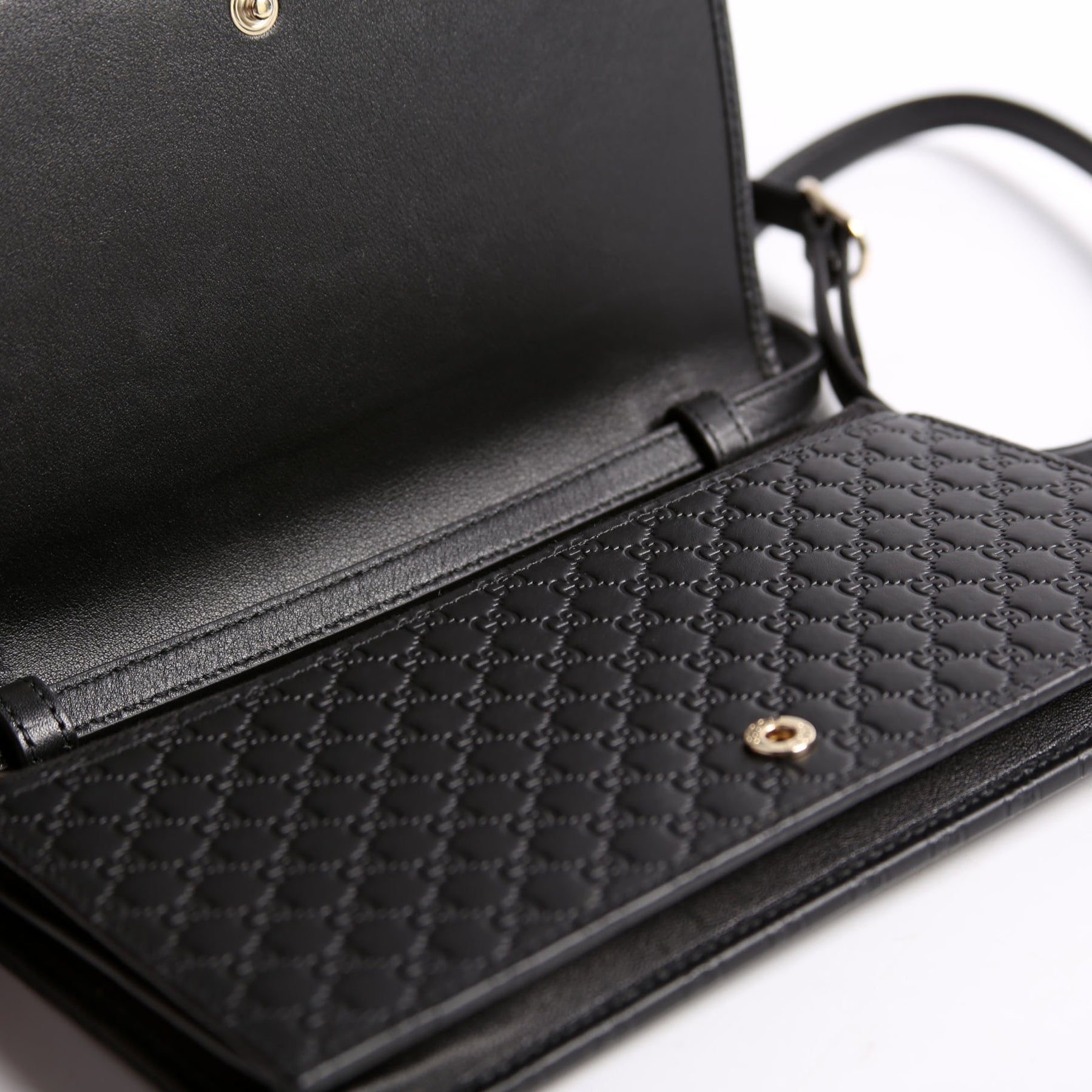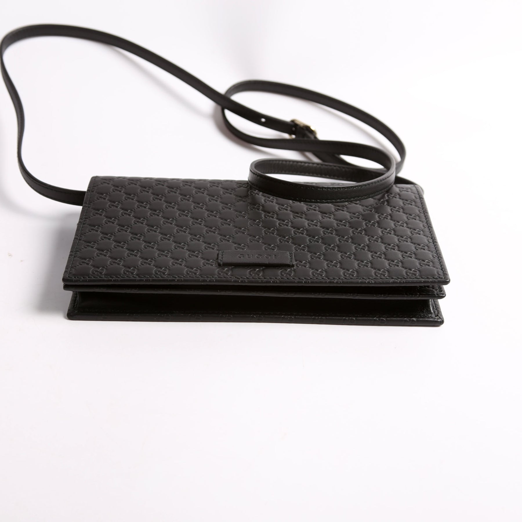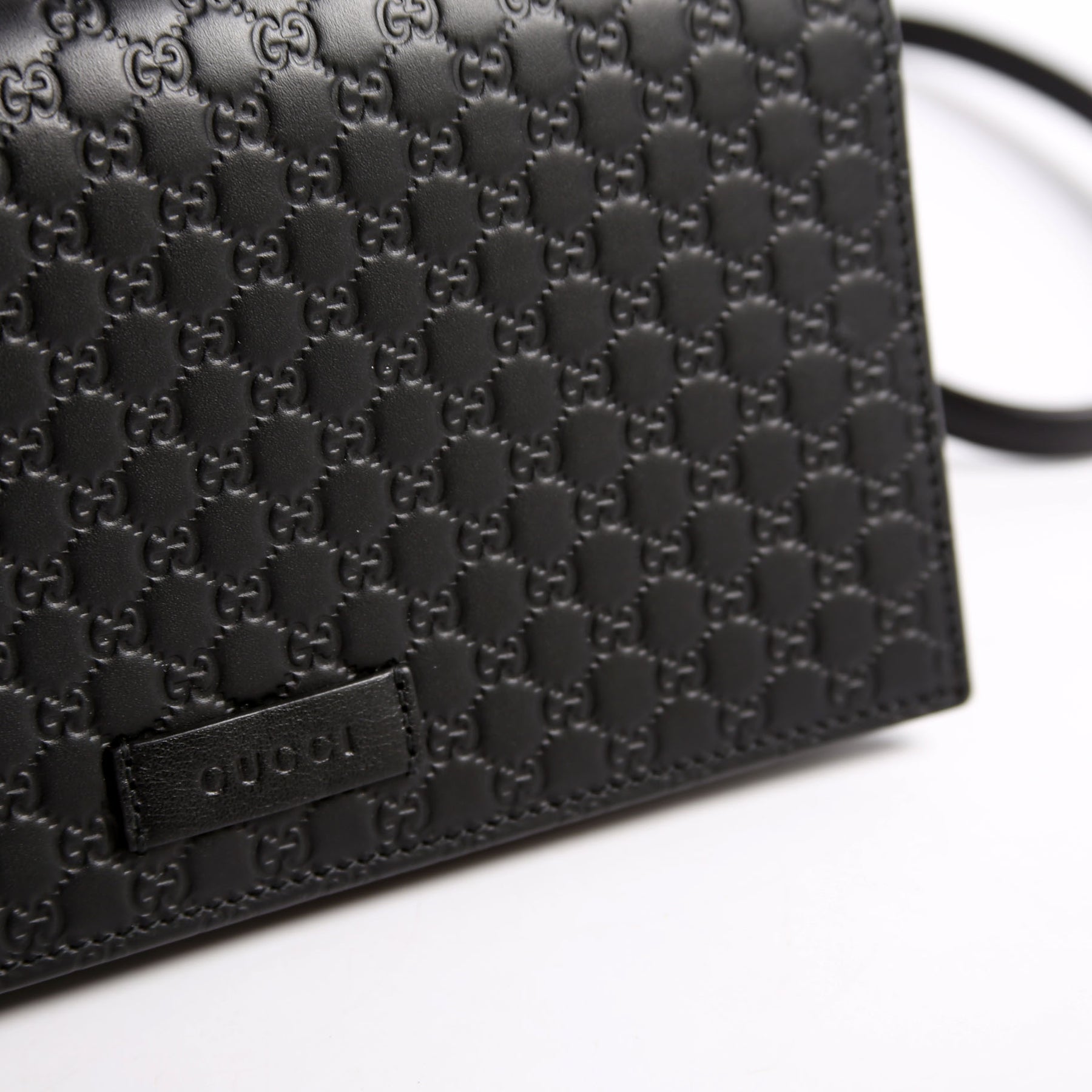 This pre-owned Gucci Micro GG Wallet On Chain is guaranteed 100% authentic. The exterior is in the classic Gucci Guccissima leather.