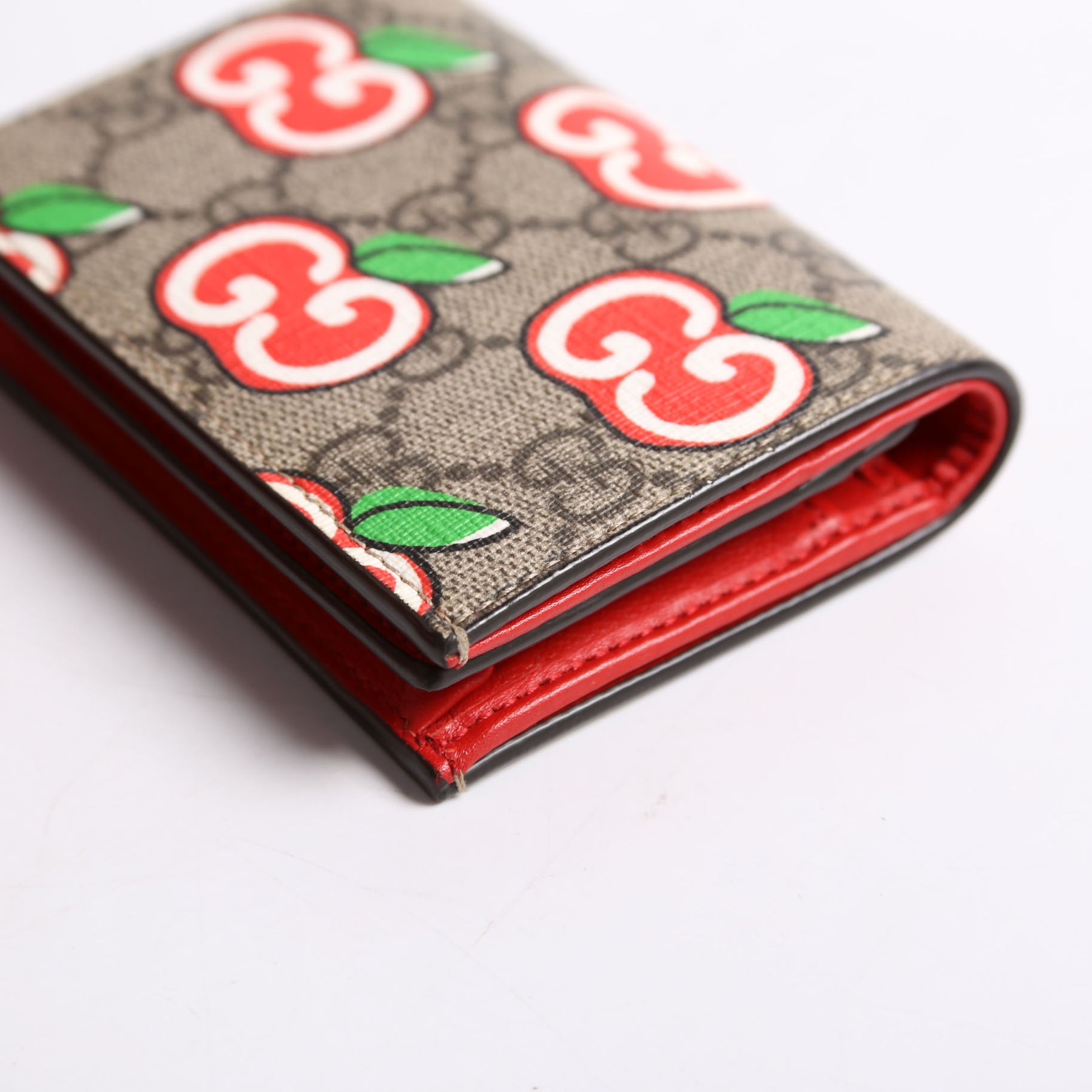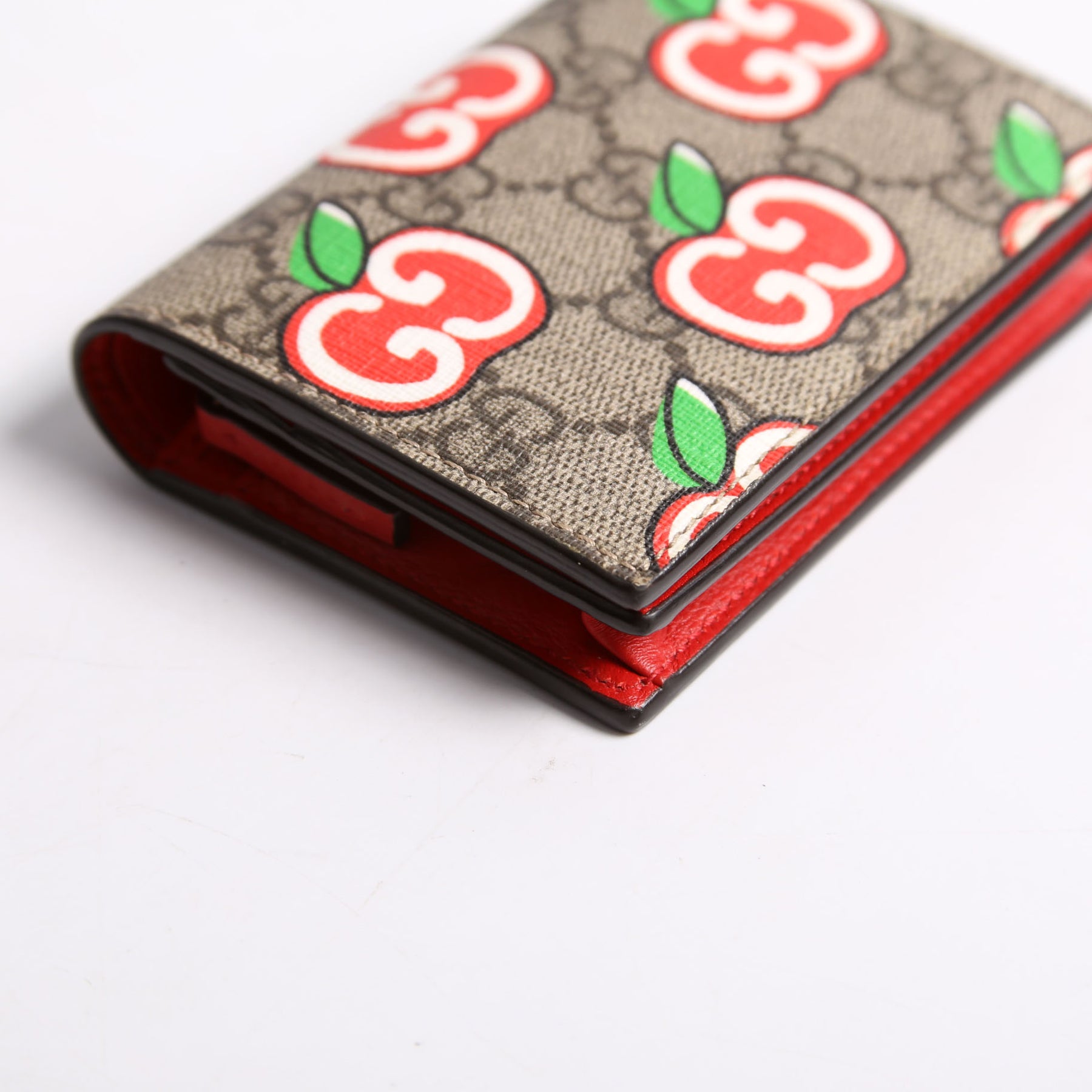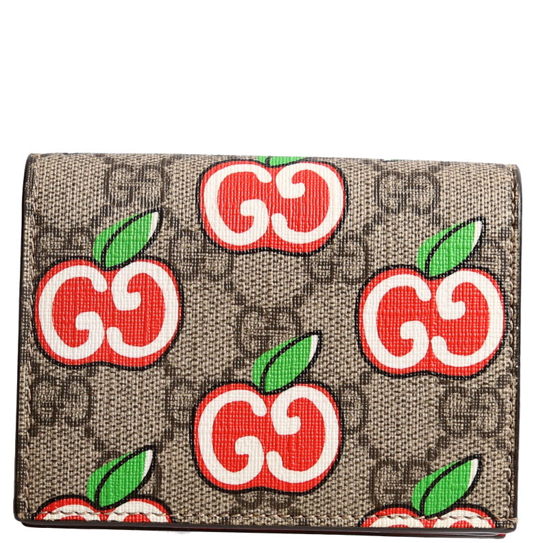 This pre-owned Gucci GG Apple Card Case is guaranteed 100% authentic. The exterior is in the classic Gucci GG Supreme coated canvas.