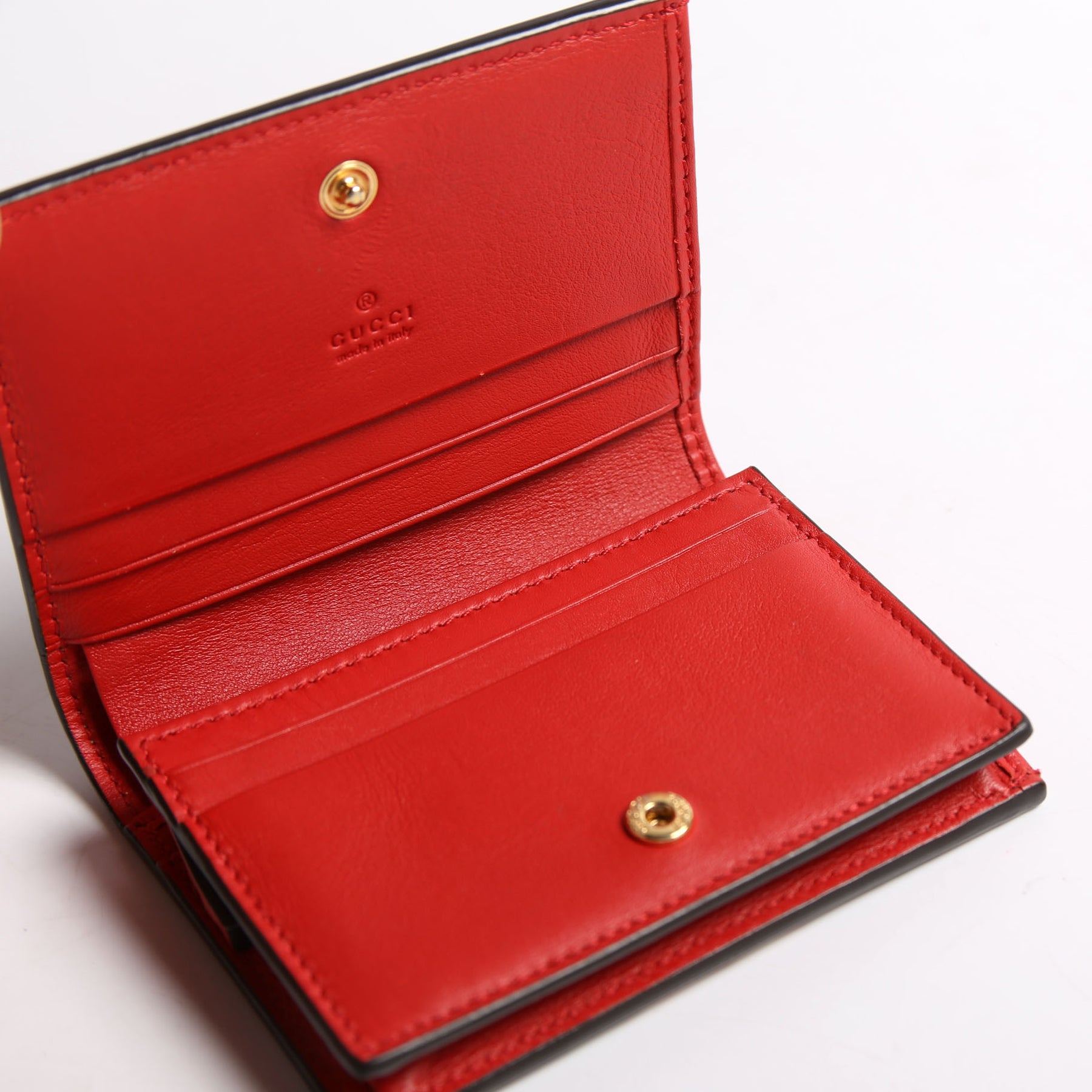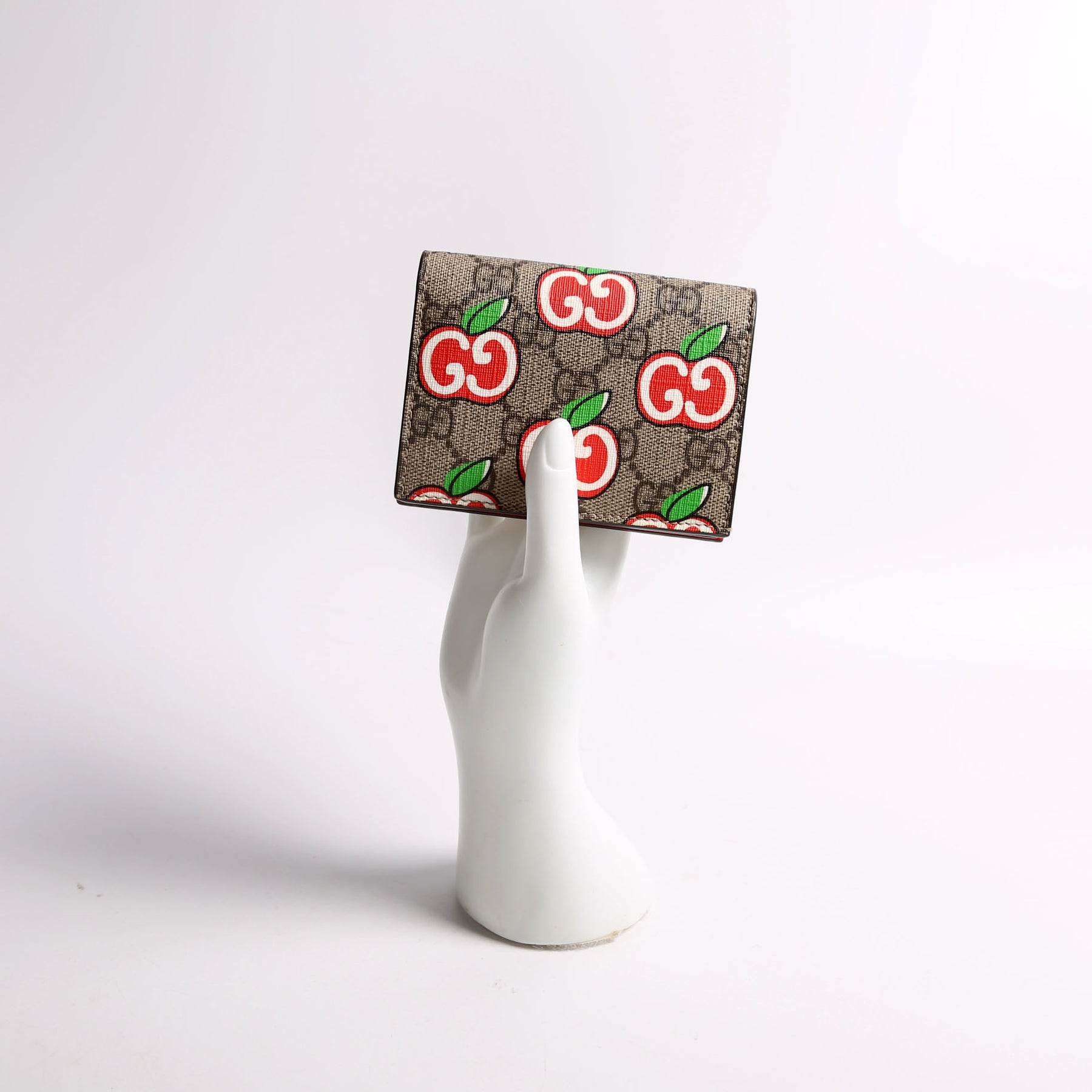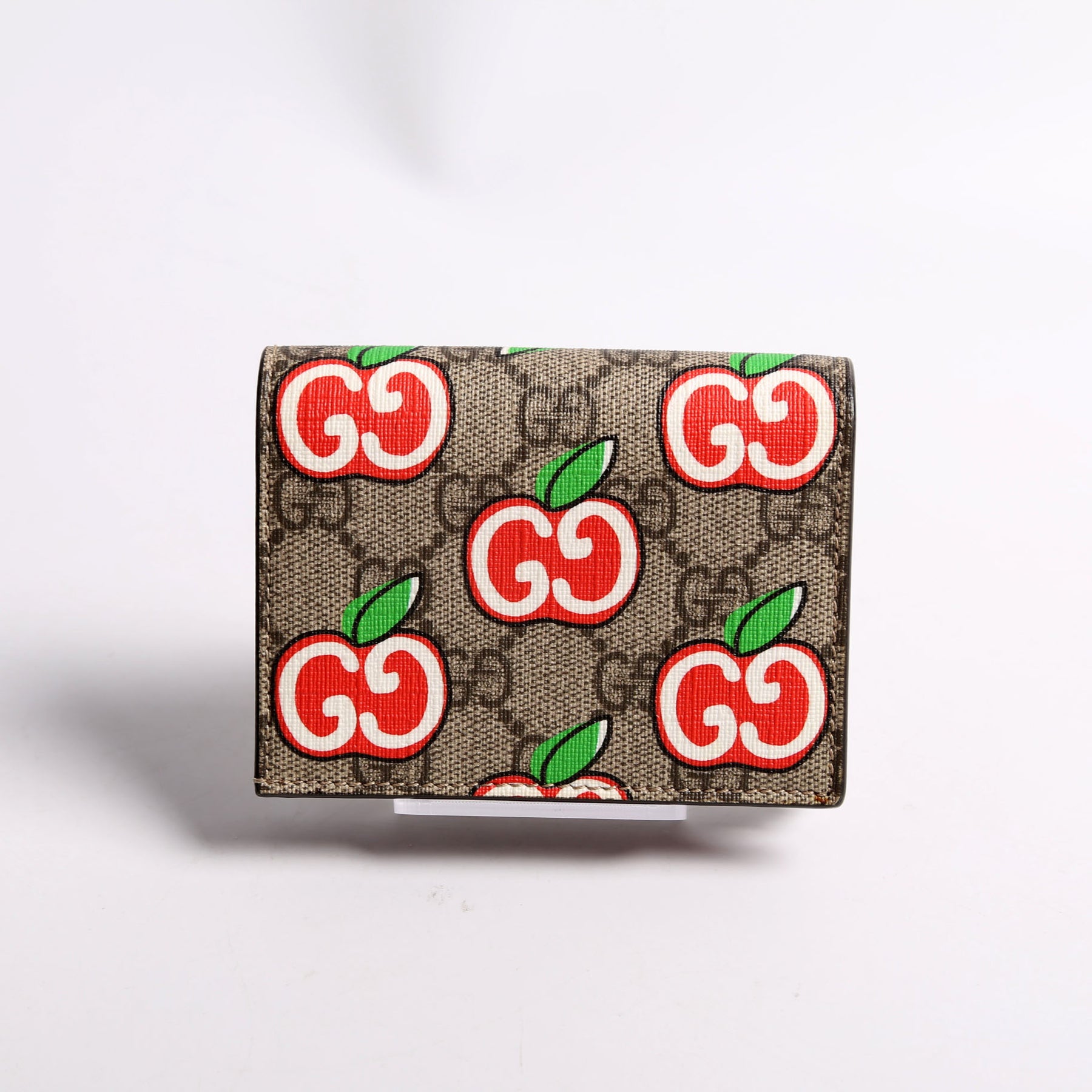 This pre-owned Gucci GG Apple Card Case is guaranteed 100% authentic. The exterior is in the classic Gucci GG Supreme coated canvas.